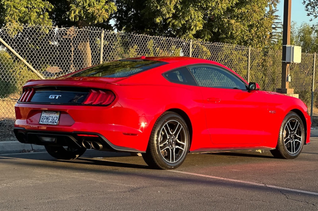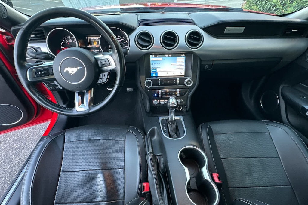 Lithia Ford and Lincoln of Fresno is pleased to offer this Race Red 2019 Ford Mustang GT Premium for purchase, this vehicle is well equipped with many features including: Equipment Group 400A, Ford Certified, 4-Wheel Disc Brakes, 9 Speakers, ABS brakes, Air Conditioning, Alloy wheels, AM/FM radio: SiriusXM, AM/FM Stereo, AppLink/Apple CarPlay and Android Auto, Auto-dimming Rear-View mirror, Automatic temperature control, Brake assist, Bumpers: body-color, Climate Controlled Heated/Cooled Front Seats, Compass, Delay-off headlights, Driver door bin, Driver vanity mirror, Dual front impact airbags, Dual front side impact airbags, Electronic Stability Control, Emergency communication system: 911 Assist, Exterior Parking Camera Rear, Four wheel independent suspension, Front anti-roll bar, Front Bucket Seats, Front Center Armrest, Front dual zone A/C, Front fog lights, Front reading lights, Fully automatic headlights, Garage door transmitter, Heated door mirrors, Heated front seats, Illuminated entry, Knee airbag, Leather Bucket Seats, Leather Shift Knob, Low tire pressure warning, Occupant sensing airbag, Outside temperature display, Overhead airbag, Overhead console, Panic alarm, Passenger door bin, Passenger vanity mirror, Power door mirrors, Power driver seat, Power passenger seat, Power steering, Power windows, Radio data system, Rear anti-roll bar, Rear window defroster, Remote keyless entry, Security system, SiriusXM Radio, Speed control, Speed-sensing steering, Speed-Sensitive Wipers, Split folding rear seat, Spoiler, Steering wheel mounted audio controls, SYNC 3 Communications & Entertainment System, Tachometer, Telescoping steering wheel, Tilt steering wheel, Traction control, Trip computer, Turn signal indicator mirrors, Variably intermittent wipers, Ventilated front seats, Voltmeter, and Wheels: 18 x 8 Machined-Face Aluminum. RWD 5.0L V8 Ti-VCT 10-Speed Automatic GT Premium