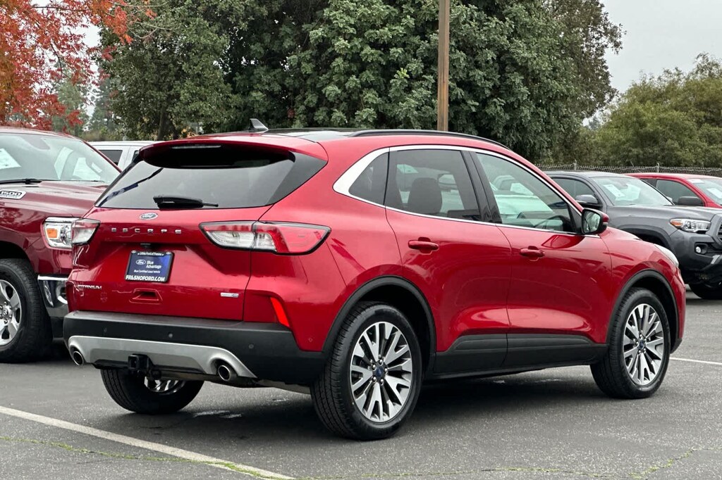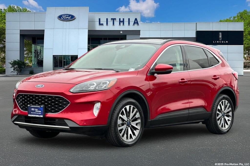 Lithia Ford and Lincoln of Fresno is pleased to offer this Red 2020 Ford Escape Titanium for purchase, this vehicle is well equipped with many features including: Equipment Group 401A (Wireless Charging Pad), Titanium Premium Package (Discontinued) (Black Roof-Rack Side Rails, Head-Up Display, and Panoramic Vista Roof), Ford Certified, AWD, 10 Speakers, 3.47 Axle Ratio, 4-Wheel Disc Brakes, ABS brakes, Air Conditioning, Alloy wheels, AM/FM radio: SiriusXM, Auto High-beam Headlights, Auto-dimming Rear-View mirror, Automatic temperature control, Brake assist, Bumpers: body-color, Compass, Delay-off headlights, Driver door bin, Driver vanity mirror, Dual front impact airbags, Dual front side impact airbags, Electronic Stability Control, Emergency communication system: SYNC 3 911 Assist, Exterior Parking Camera Rear, FordPass Connect, Four wheel independent suspension, Front anti-roll bar, Front Bucket Seats, Front Center Armrest, Front dual zone A/C, Front fog lights, Front reading lights, Fully automatic headlights, Garage door transmitter, Heated door mirrors, Heated front seats, Heated Leather-Trimmed Front Sport Contour Seats, Heated steering wheel, Illuminated entry, Knee airbag, Leather steering wheel, Low tire pressure warning, Memory seat, Navigation System, Occupant sensing airbag, Outside temperature display, Overhead airbag, Overhead console, Panic alarm, Passenger door bin, Passenger vanity mirror, Power door mirrors, Power driver seat, Power Liftgate, Power passenger seat, Power steering, Power windows, Radio data system, Radio: B&O Sound System by Bang & Olufsen, Rain sensing wipers, Rear anti-roll bar, Rear reading lights, Rear seat center armrest, Rear window defroster, Rear window wiper, Remote keyless entry, Security system, Speed control, Speed-sensing steering, Speed-Sensitive Wipers, Split folding rear seat, Spoiler, Steering wheel mounted audio controls, SYNC 3 Communications & Entertainment System, Tachometer, Telescoping steering wheel, Tilt steering wheel, Traction control, Trip computer, Turn signal indicator mirrors, Variably intermittent wipers, Voice-Activated Touchscreen Navigation System, and Wheels: 19 Machined-Face Aluminum. AWD EcoBoost 2.0L I4 GTDi DOHC Turbocharged VCT 8-Speed Automatic Titanium