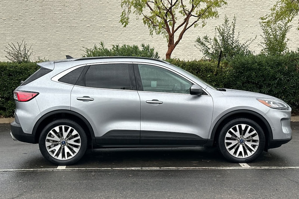 Lithia Ford and Lincoln of Fresno is pleased to offer this Silver 2021 Ford Escape Titanium for purchase, this vehicle is well equipped with many features including: Class II Trailer Tow Package, Equipment Group 401A, Ford Certified, AWD, 10 Speakers, 3.47 Axle Ratio, 4-Wheel Disc Brakes, ABS brakes, Air Conditioning, Alloy wheels, AM/FM radio: SiriusXM, Auto High-beam Headlights, Auto-dimming Rear-View mirror, Automatic temperature control, Brake assist, Bumpers: body-color, Compass, Delay-off headlights, Driver door bin, Driver vanity mirror, Dual front impact airbags, Dual front side impact airbags, Electronic Stability Control, Emergency communication system: SYNC 3 911 Assist, Exterior Parking Camera Rear, FordPass Connect, Four wheel independent suspension, Front anti-roll bar, Front Bucket Seats, Front Center Armrest, Front dual zone A/C, Front fog lights, Front reading lights, Fully automatic headlights, Garage door transmitter, Heated ActiveX Front Sport Contour Bucket Seats, Heated door mirrors, Heated front seats, Heated steering wheel, Illuminated entry, Knee airbag, Low tire pressure warning, Memory seat, Navigation System, Occupant sensing airbag, Outside temperature display, Overhead airbag, Overhead console, Panic alarm, Passenger door bin, Passenger vanity mirror, Power door mirrors, Power driver seat, Power Liftgate, Power passenger seat, Power steering, Power windows, Radio data system, Radio: B&O Sound System by Bang & Olufsen, Rain sensing wipers, Rear anti-roll bar, Rear reading lights, Rear seat center armrest, Rear window defroster, Rear window wiper, Remote keyless entry, Roof rack: rails only, Security system, Speed control, Speed-sensing steering, Speed-Sensitive Wipers, Split folding rear seat, Spoiler, Steering wheel mounted audio controls, SYNC 3 Communications & Entertainment System, Tachometer, Telescoping steering wheel, Tilt steering wheel, Traction control, Trip computer, Variably intermittent wipers, Voice-Activated Touchscreen Navigation System, and Wheels: 19 Machined-Face Aluminum. AWD EcoBoost 2.0L I4 GTDi DOHC Turbocharged VCT 8-Speed Automatic Titanium