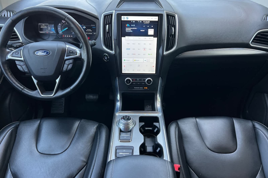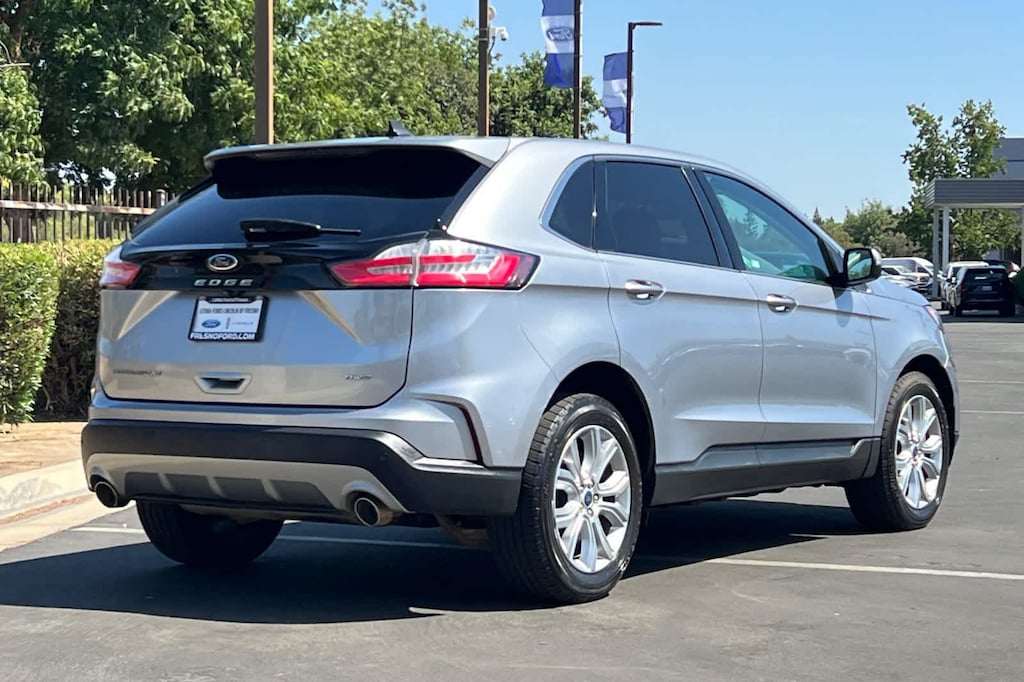 Lithia Ford and Lincoln of Fresno is pleased to offer this Iconic Silver Metallic 2022 Ford Edge Titanium for purchase, this vehicle is well equipped with many features including: Equipment Group 300A, Ford Gold Certified Certified, AWD, 12 Speakers, 3.80 Axle Ratio, 4-Wheel Disc Brakes, ABS brakes, Air Conditioning, Alloy wheels, AM/FM radio: SiriusXM with 360L, Auto High-beam Headlights, Auto-dimming Rear-View mirror, Automatic temperature control, Brake assist, Bumpers: body-color, Compass, Delay-off headlights, Driver door bin, Driver vanity mirror, Dual front impact airbags, Dual front side impact airbags, Electronic Stability Control, Emergency communication system: SYNC 4 911 Assist, Engine Block Heater, FordPass Connect, Four wheel independent suspension, Front anti-roll bar, Front Bucket Seats, Front Center Armrest w/Storage, Front dual zone A/C, Front fog lights, Front License Plate Bracket, Front reading lights, Fully automatic headlights, Garage door transmitter, Heated door mirrors, Heated front seats, Heated steering wheel, Illuminated entry, Knee airbag, Leather-Trimmed Heated Sport Bucket Seats, Low tire pressure warning, Memory seat, Occupant sensing airbag, Outside temperature display, Overhead airbag, Overhead console, Panic alarm, Passenger door bin, Passenger vanity mirror, Power door mirrors, Power driver seat, Power Liftgate, Power passenger seat, Power steering, Power windows, Radio: B&O Sound System by Bang & Olufsen, Rain sensing wipers, Rear anti-roll bar, Rear reading lights, Rear seat center armrest, Rear window defroster, Rear window wiper, Remote keyless entry, Security system, SiriusXM w/360L, Speed control, Speed-Sensitive Wipers, Split folding rear seat, Spoiler, Steering wheel mounted audio controls, SYNC 4A w/Enhanced Voice Recognition, Tachometer, Telescoping steering wheel, Tilt steering wheel, Traction control, Trip computer, Turn signal indicator mirrors, Variably intermittent wipers, and Wheels: 19 Luster Nickel-Painted Aluminum. AWD EcoBoost 2.0L I4 GTDi DOHC Turbocharged VCT 8-Speed Automatic Titanium
