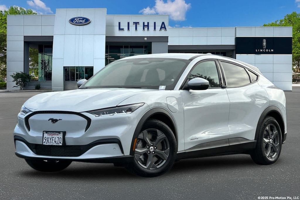 Lithia Ford and Lincoln of Fresno is pleased to offer this Space White Metallic 2022 Ford Mustang Mach-E Select for purchase, this vehicle is well equipped with many features including: Equipment Group 100A, Ford Certified, 4-Wheel Disc Brakes, 6 Speakers, ABS brakes, ActiveX Bucket Seats, Air Conditioning, Alloy wheels, AM/FM radio: SiriusXM with 360L, AM/FM Stereo, Apple CarPlay/Android Auto, Auto High-beam Headlights, Auto-dimming Rear-View mirror, Automatic temperature control, Axle Ratio: 9.05, Brake assist, Bumpers: body-color, Compass, Delay-off headlights, Driver door bin, Driver vanity mirror, Dual front impact airbags, Dual front side impact airbags, Electronic Stability Control, Emergency communication system: 911 Assist, Exterior Parking Camera Rear, Four wheel independent suspension, Front anti-roll bar, Front Bucket Seats, Front Center Armrest, Front dual zone A/C, Front reading lights, Fully automatic headlights, Garage door transmitter, Heated door mirrors, Illuminated entry, Knee airbag, Low tire pressure warning, Navigation system: Connected Navigation, Occupant sensing airbag, Outside temperature display, Overhead airbag, Overhead console, Panic alarm, Passenger door bin, Passenger vanity mirror, Power door mirrors, Power driver seat, Power steering, Power windows, Radio data system, Rain sensing wipers, Rear anti-roll bar, Rear seat center armrest, Rear side impact airbag, Rear window defroster, Rear window wiper, Remote keyless entry, Security system, SiriusXM Radio w/360L, Speed control, Speed-sensing steering, Speed-Sensitive Wipers, Split folding rear seat, Spoiler, Steering wheel mounted audio controls, SYNC 4A w/Enhanced Voice Recognition, Telescoping steering wheel, Tilt steering wheel, Traction control, Trip computer, Turn signal indicator mirrors, Variably intermittent wipers, and Wheels: 18 Carbonized Gray-Painted Aluminum. RWD Electric Motor Single-Speed Automatic Select