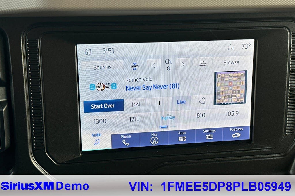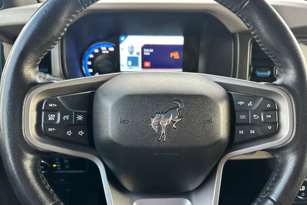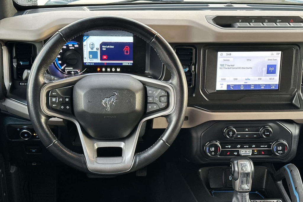 Lithia Ford and Lincoln of Fresno is pleased to offer this Area 51 2023 Ford Bronco Wildtrak for purchase, this vehicle is well equipped with many features including: Equipment Group 352A Mid Package, Ford Certified, 4-Wheel Disc Brakes, 4.7 Axle Ratio, 7 Speakers, ABS brakes, Air Conditioning, Alloy wheels, AM/FM radio: SiriusXM with 360L, AM/FM Stereo, Auto High-beam Headlights, Auto-dimming Rear-View mirror, Automatic temperature control, Brake assist, Carbonized Gray Molded-In-Color Hard Top, Compass, Connected Navigation, Delay-off headlights, Driver door bin, Driver vanity mirror, Dual front impact airbags, Dual front side impact airbags, Electronic Stability Control, Emergency communication system: 911 Assist, Exterior Parking Camera Rear, Front anti-roll bar, Front Bucket Seats, Front Center Armrest, Front dual zone A/C, Front fog lights, Front reading lights, Front Row Top Panels Storage Bag, Front wheel independent suspension, Fully automatic headlights, Hard Top Sound Deadening Headliner, Heated door mirrors, Heated front seats, Heated Leather-Trimmed/Vinyl Bucket Seats, Illuminated entry, Integrated roll-over protection, Leather Shift Knob, Low tire pressure warning, Navigation system: Connected Navigation, Occupant sensing airbag, Outside temperature display, Overhead airbag, Overhead console, Panic alarm, Passenger door bin, Passenger vanity mirror, Power door mirrors, Power steering, Power windows, Radio data system, Radio: 6 Speakers w/Subwoofer Delete, Rear-Window Defroster & Washer, Remote keyless entry, Security system, SiriusXM Radio w/360L, Speed control, Split folding rear seat, Steering wheel mounted audio controls, SYNC 4, Tachometer, Telescoping steering wheel, Tilt steering wheel, Towing Capability, Traction control, Trip computer, Variably intermittent wipers, Voltmeter, and Wheels: 17 Black High Gloss-Painted Aluminum. 4WD 2.7L EcoBoost V6 10-Speed Automatic Wildtrak