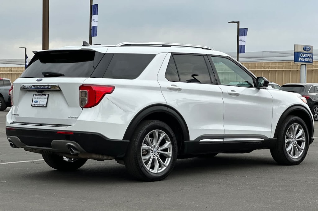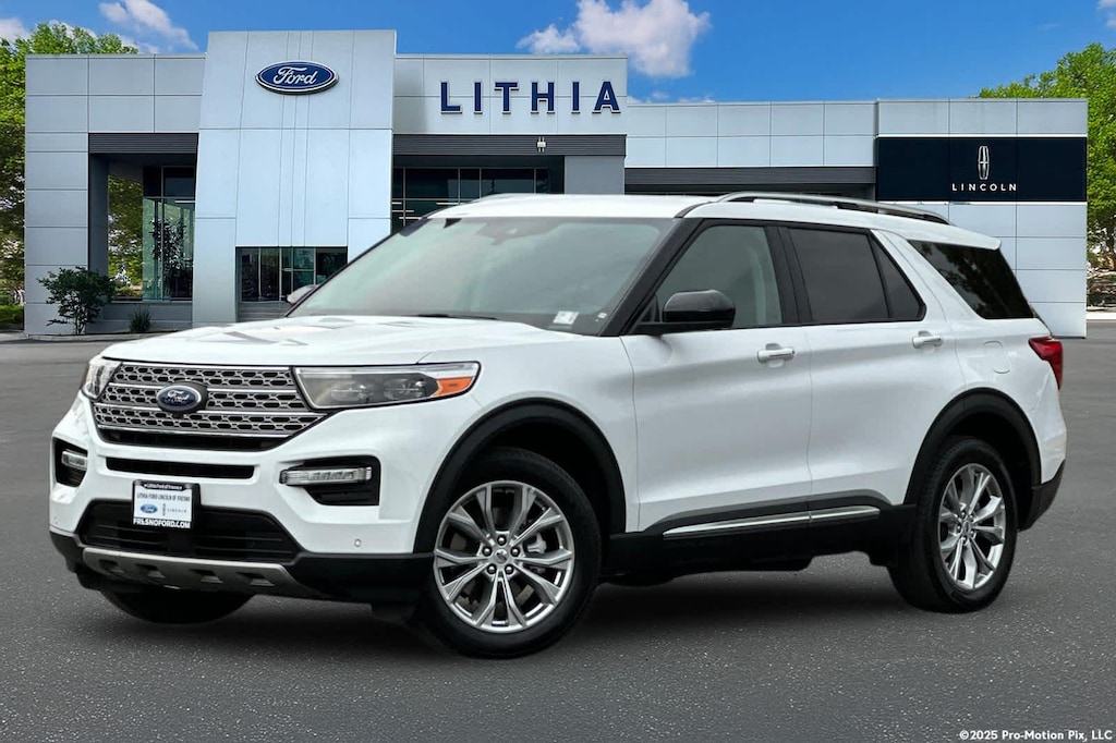 Lithia Ford and Lincoln of Fresno is pleased to offer this Oxford White 2023 Ford Explorer Limited for purchase, this vehicle is well equipped with many features including: Equipment Group 300A, Ford Gold Certified Certified, 4WD, 12 Speakers, 20 Premium Painted Aluminum Wheels, 2nd Row 35/30/35 Bench w/E-Z Entry & Armrest, 3.58 Non-Limited-Slip Rear Axle Ratio, 3rd row seats: bench, 4-Wheel Disc Brakes, 4G LTE Wi-Fi Hotspot Credit, ABS brakes, Air Conditioning, Alloy wheels, AM/FM radio: SiriusXM, Auto High-beam Headlights, Auto Start-Stop Removal (DISC), Auto-dimming Rear-View mirror, Automatic temperature control, Brake assist, Bumpers: body-color, Compass, Delay-off headlights, Driver door bin, Driver vanity mirror, Dual front impact airbags, Dual front side impact airbags, Electronic Stability Control, Emergency communication system: SYNC 3 911 Assist, Exterior Parking Camera Rear, FordPass Connect, Four wheel independent suspension, Front anti-roll bar, Front Bucket Seats, Front Center Armrest, Front dual zone A/C, Front fog lights, Front License Plate Bracket, Front reading lights, Fully automatic headlights, Garage door transmitter, Heated door mirrors, Heated front seats, Heated rear seats, Heated steering wheel, Illuminated entry, Knee airbag, Leather Heated/Ventilated Captains Chairs, Leather steering wheel, Low tire pressure warning, Navigation System, Occupant sensing airbag, Outside temperature display, Overhead airbag, Overhead console, Panic alarm, Passenger door bin, Passenger vanity mirror, Power door mirrors, Power driver seat, Power Liftgate, Power passenger seat, Power steering, Power windows, Radio data system, Radio: B&O Sound System by Bang & Olufsen, Rain sensing wipers, Rear air conditioning, Rear anti-roll bar, Rear reading lights, Rear window defroster, Rear window wiper, Remote keyless entry, Roof rack: rails only, Security system, Speed control, Speed-sensing steering, Speed-Sensitive Wipers, Split folding rear seat, Spoiler, Steering wheel mounted audio controls, SYNC 3 Communications & Entertainment System, SYNC 3/Apple CarPlay/Android Auto, Tachometer, Telescoping steering wheel, Tilt steering wheel, Traction control, Trip computer, Variably intermittent wipers, Ventilated front seats, and Voice-Activated Touchscreen Navigation System. 4WD 2.3L EcoBoost I-4 10-Speed Automatic Limited