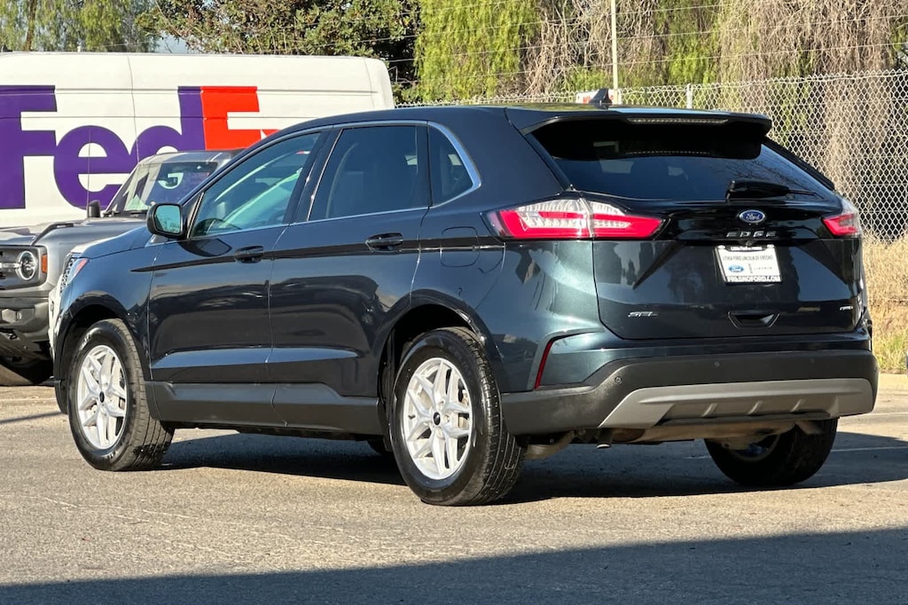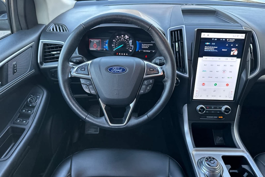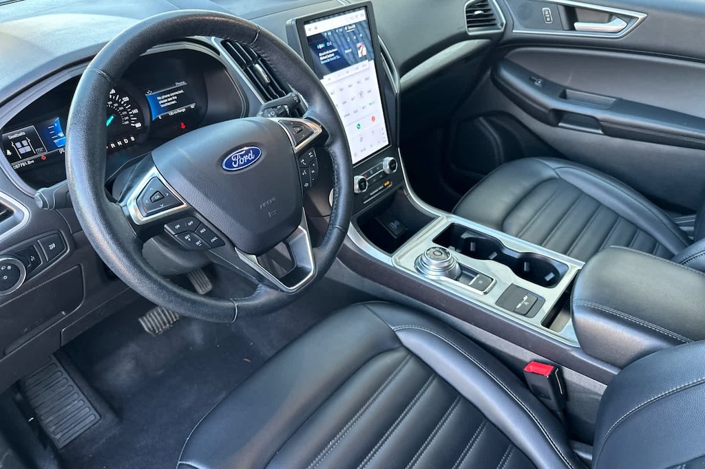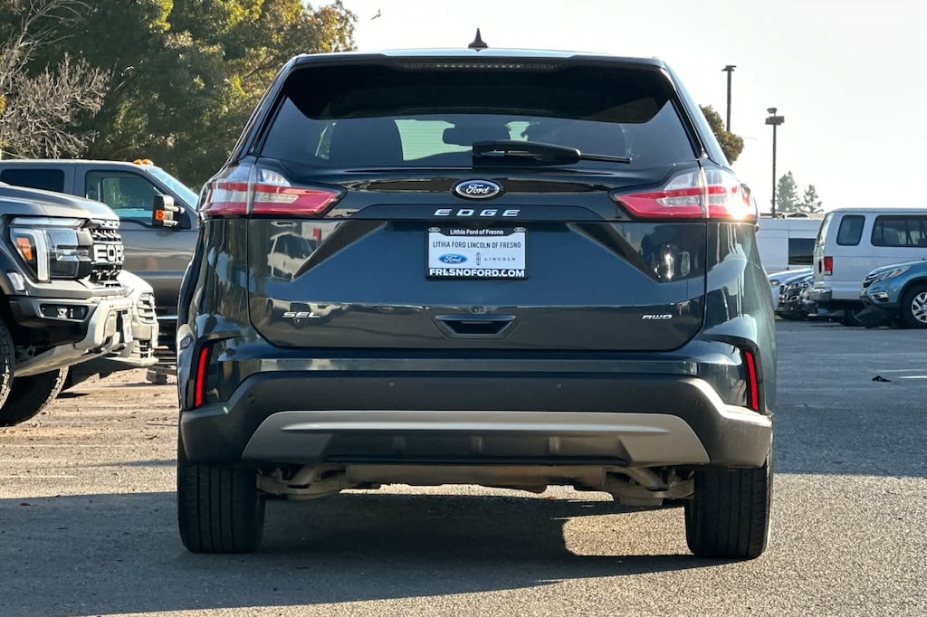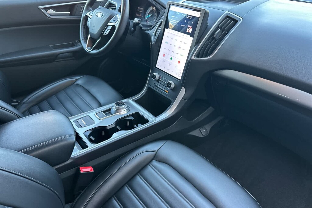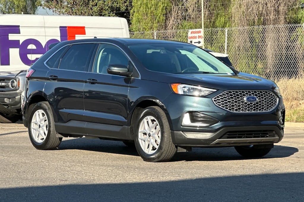 Lithia Ford and Lincoln of Fresno is pleased to offer this Blue Metallic 2024 Ford Edge SEL for purchase, this vehicle is well equipped with many features including: Equipment Group 201A, Ford Gold Certified Certified, AWD, 3.80 Axle Ratio, 4-Wheel Disc Brakes, 6 Speakers, ABS brakes, ActiveX Trimmed Heated Bucket Seats, Air Conditioning, Alloy wheels, AM/FM radio: SiriusXM with 360L, AM/FM Stereo, Auto High-beam Headlights, Auto-dimming Rear-View mirror, Automatic temperature control, Brake assist, Bumpers: body-color, Compass, Delay-off headlights, Driver door bin, Driver vanity mirror, Dual front impact airbags, Dual front side impact airbags, Electronic Stability Control, Emergency communication system: SYNC 4 911 Assist, FordPass Connect, Four wheel independent suspension, Front anti-roll bar, Front Bucket Seats, Front Center Armrest w/Storage, Front dual zone A/C, Front reading lights, Fully automatic headlights, Heated door mirrors, Heated front seats, Illuminated entry, Knee airbag, Leather steering wheel, Leather-Wrapped Steering Wheel, Low tire pressure warning, Occupant sensing airbag, Outside temperature display, Overhead airbag, Overhead console, Panic alarm, Passenger door bin, Passenger vanity mirror, Power door mirrors, Power driver seat, Power passenger seat, Power steering, Power windows, Rear anti-roll bar, Rear Parking Sensors, Rear reading lights, Rear seat center armrest, Rear window defroster, Rear window wiper, Remote keyless entry, SiriusXM w/360L, Speed control, Speed-Sensitive Wipers, Split folding rear seat, Spoiler, Steering wheel mounted audio controls, SYNC 4A w/Enhanced Voice Recognition, Tachometer, Telescoping steering wheel, Tilt steering wheel, Traction control, Trip computer, Variably intermittent wipers, and Wheels: 18 Sparkle Silver-Painted Aluminum. AWD EcoBoost 2.0L I4 GTDi DOHC Turbocharged VCT 8-Speed Automatic SEL