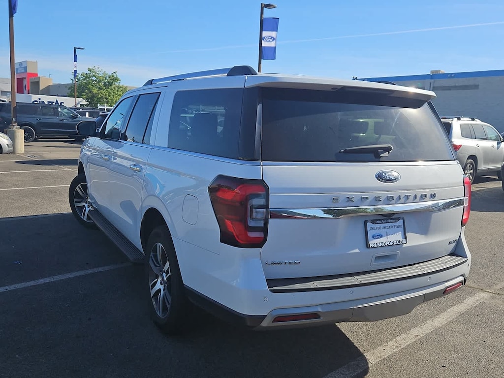 Lithia Ford and Lincoln of Fresno is pleased to offer this Oxford White 2024 Ford Expedition Max Limited for purchase, this vehicle is well equipped with many features including: Equipment Group 301A Mid Package, Ford Certified, 12 Speakers, 2nd Row Power-Folding 40/20/40 Leather Bench Seat, 3.31 Axle Ratio, 3rd row seats: split-bench, 4-Wheel Disc Brakes, ABS brakes, Adjustable pedals, Air Conditioning, Alloy wheels, AM/FM radio: SiriusXM with 360L, Auto High-beam Headlights, Auto-dimming door mirrors, Auto-dimming Rear-View mirror, Automatic temperature control, Brake assist, Bumpers: body-color, Compass, Delay-off headlights, Driver door bin, Driver vanity mirror, Dual front impact airbags, Dual front side impact airbags, Electronic Stability Control, Emergency communication system: SYNC 4 911 Assist, Exterior Parking Camera Rear, Four wheel independent suspension, Front anti-roll bar, Front Bucket Seats, Front Center Armrest, Front dual zone A/C, Front fog lights, Front License Plate Bracket, Front reading lights, Fully automatic headlights, Garage door transmitter, Heated & Ventilated Leather Front Captains Chairs, Heated door mirrors, Heated front seats, Heated rear seats, Heated steering wheel, Illuminated entry, Leather steering wheel, Low tire pressure warning, Memory seat, Navigation system: Connected Navigation, Occupant sensing airbag, Outside temperature display, Overhead airbag, Overhead console, Panic alarm, Passenger door bin, Passenger vanity mirror, Pedal memory, Power door mirrors, Power driver seat, Power Liftgate, Power moonroof, Power passenger seat, Power steering, Power windows, Radio data system, Radio: B&O Sound System by Bang & Olufsen, Rain sensing wipers, Rear air conditioning, Rear anti-roll bar, Rear reading lights, Rear window defroster, Rear window wiper, Reclining 3rd row seat, Remote keyless entry, Security system, SiriusXM w/360L, Speed control, Speed-sensing steering, Speed-Sensitive Wipers, Split folding rear seat, Spoiler, Steering wheel memory, Steering wheel mounted audio controls, SYNC 4 w/Enhanced Voice Recognition, Tachometer, Telescoping steering wheel, Tilt steering wheel, Traction control, Trip computer, Turn signal indicator mirrors, Variably intermittent wipers, Ventilated front seats, Voltmeter, and Wheels: 20 Bright Machined Aluminum. 4WD EcoBoost 3.5L V6 GTDi DOHC 24V Twin Turbocharged 10-Speed Automatic Limited