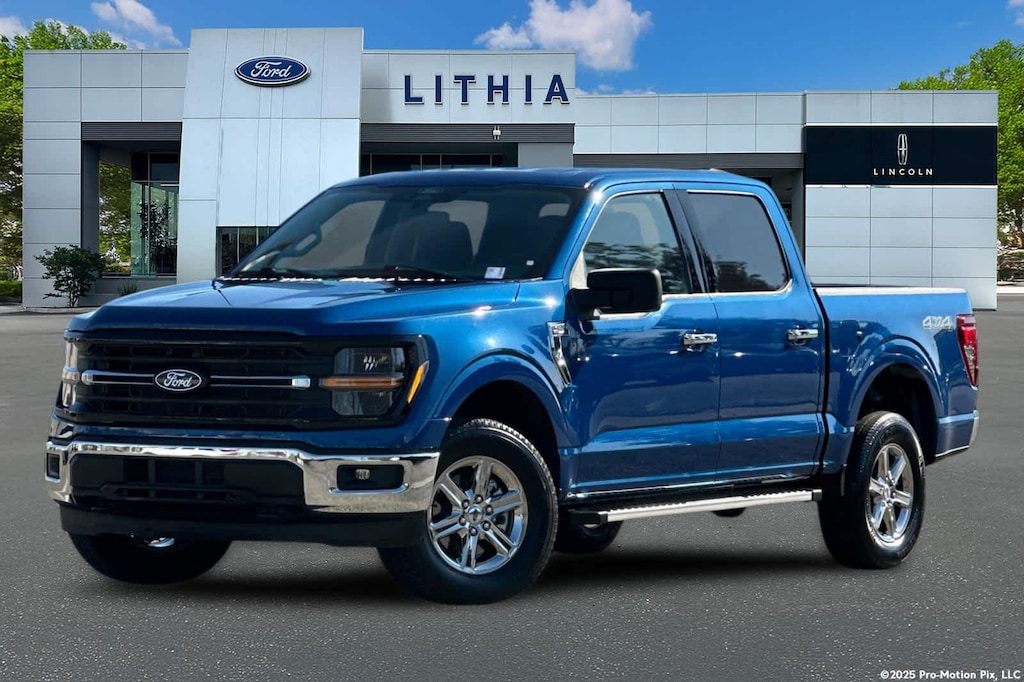 Lithia Ford and Lincoln of Fresno is pleased to offer this Atlas Blue Metallic 2025 Ford F-150 XLT for purchase, this vehicle is well equipped with many features including: Equipment Group 301A Standard (6 Angular Bright Anodized Step Bar, Black Painted Grille w/Chrome Center Bar, Chrome Door & Tailgate Handles, Chrome Single-Tip Exhaust, Cloth 40/20/40 Front Seat w/Console, Dual-Zone Electronic Automatic Temperature Control, and Wrapped Steering Wheel), GVWR: 7,100 lbs Payload Package, Ford Certified, 4WD, 3.31 Axle Ratio, Wheels: 18 Chrome-Like PVD, 4-Wheel Disc Brakes, 6 Speakers, ABS brakes, Air Conditioning, Alloy wheels, AM/FM radio: SiriusXM with 360L, Auto High-beam Headlights, Brake assist, Bumpers: chrome, Chrome wheels, Cloth 40/20/40 Front Seat, Compass, Delay-off headlights, Driver door bin, Driver vanity mirror, Dual front impact airbags, Dual front side impact airbags, Electronic Stability Control, Emergency communication system: SYNC 4 911 Assist, Front anti-roll bar, Front Center Armrest, Front fog lights, Front reading lights, Front wheel independent suspension, Fully automatic headlights, Heated door mirrors, Illuminated entry, Internet access capable: FordPass Connect 5G, Low tire pressure warning, Occupant sensing airbag, Outside temperature display, Overhead airbag, Overhead console, Panic alarm, Passenger door bin, Passenger vanity mirror, Power door mirrors, Power steering, Power windows, Radio data system, Radio: AM/FM Stereo w/SiriusXM 360L, Rear Parking Sensors, Rear reading lights, Rear step bumper, Rear window defroster, Remote keyless entry, Security system, Speed control, Split folding rear seat, Steering wheel mounted audio controls, SYNC 4 w/Enhanced Voice Recognition, Tachometer, Telescoping steering wheel, Tilt steering wheel, Traction control, Trip computer, Variably intermittent wipers, and Voltmeter. 4WD 3.5L V6 EcoBoost 10-Speed Automatic XLT