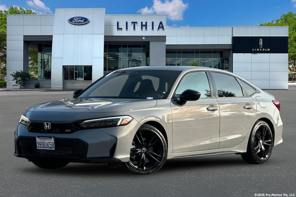 Lithia Ford and Lincoln of Fresno is pleased to offer this Urban Gray Pearl 2025 Honda Civic Si for purchase, this vehicle is well equipped with many features including: Honda Certified, Navigation system: Google Maps, Power moonroof, Power windows, 12 Speakers, 18 Matte Black Alloy Wheels, 4-Wheel Disc Brakes, ABS brakes, Air Conditioning, Alloy wheels, AM/FM radio, Apple CarPlay/Android Auto, Auto High-beam Headlights, Automatic temperature control, Blind Spot Information (BSI) System warning, BOSE Premium Sound System, Brake assist, Bumpers: body-color, Cloth Seating Surfaces, Delay-off headlights, Driver door bin, Driver vanity mirror, Dual front impact airbags, Dual front side impact airbags, Electronic Stability Control, Exterior Parking Camera Rear, Four wheel independent suspension, Front anti-roll bar, Front Bucket Seats, Front Center Armrest, Front dual zone A/C, Front reading lights, Fully automatic headlights, Heated door mirrors, Heated Front Bucket Seats, Heated front seats, Illuminated entry, Knee airbag, Leather Shift Knob, Leather steering wheel, Low tire pressure warning, Occupant sensing airbag, Outside temperature display, Overhead airbag, Overhead console, Panic alarm, Passenger door bin, Passenger vanity mirror, Power door mirrors, Power steering, Radio data system, Rear anti-roll bar, Rear seat center armrest, Rear side impact airbag, Rear window defroster, Remote keyless entry, Security system, Speed control, Speed-sensing steering, Split folding rear seat, Spoiler, Steering wheel mounted audio controls, Tachometer, Telescoping steering wheel, Tilt steering wheel, Traction control, Trip computer, and Variably intermittent wipers. FWD 1.5L I4 DOHC 16V 6-Speed Manual