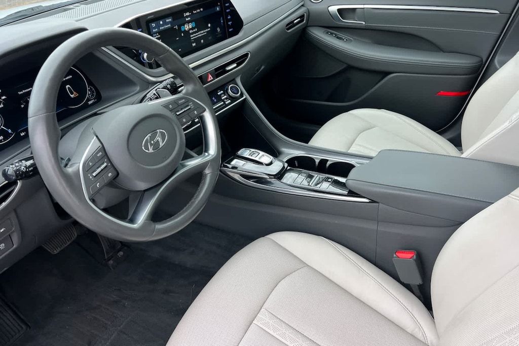 Lithia Ford and Lincoln of Fresno is pleased to offer this Quartz White 2020 Hyundai Sonata Limited for purchase, this vehicle is well equipped with many features including: Blue Link Connected Care & Remote Package, Option Group 01, Hyundai Certified, Dark Gray Leather, 12 Speakers, 4-Wheel Disc Brakes, ABS brakes, Air Conditioning, Alloy wheels, AM/FM radio: SiriusXM, Apple CarPlay & Android Auto, Auto High-beam Headlights, Auto-dimming Rear-View mirror, Automatic temperature control, Bose Premium Audio, Brake assist, Bumpers: body-color, Cargo Net, Carpeted Floor Mats, Delay-off headlights, Driver door bin, Driver vanity mirror, Dual front impact airbags, Dual front side impact airbags, Electronic Stability Control, Emergency communication system: Blue Link Connected Care (3-year subscription), Four wheel independent suspension, Front anti-roll bar, Front Bucket Seats, Front Center Armrest, Front dual zone A/C, Front reading lights, Fully automatic headlights, Garage door transmitter: HomeLink, Heads-Up Display, Heated door mirrors, Heated front seats, Heated steering wheel, Heated/Ventilated Front Bucket Seats, Illuminated entry, Knee airbag, Leather Seating Surfaces, Low tire pressure warning, Memory seat, Navigation System, Occupant sensing airbag, Outside temperature display, Overhead airbag, Overhead console, Panic alarm, Passenger door bin, Passenger vanity mirror, Power door mirrors, Power driver seat, Power moonroof, Power passenger seat, Power steering, Power windows, Radio data system, Radio: AM/FM/MP3/HD/SiriusXM Display Audio w/Nav, Rain sensing wipers, Rear anti-roll bar, Rear seat center armrest, Rear side impact airbag, Rear window defroster, Remote keyless entry, Reversible Cargo Tray, Security system, Speed control, Speed-sensing steering, Speed-Sensitive Wipers, Split folding rear seat, Steering wheel mounted audio controls, Tachometer, Telescoping steering wheel, Tilt steering wheel, Traction control, Trip computer, Turn signal indicator mirrors, Variably intermittent wipers, Ventilated front seats, Wheel Locks, Wheels: 18 x 7.5J Machine/Argent Finish Alum Alloy, and Wireless Phone Charging. FWD 1.6L I4 8-Speed Automatic with Overdrive Limited