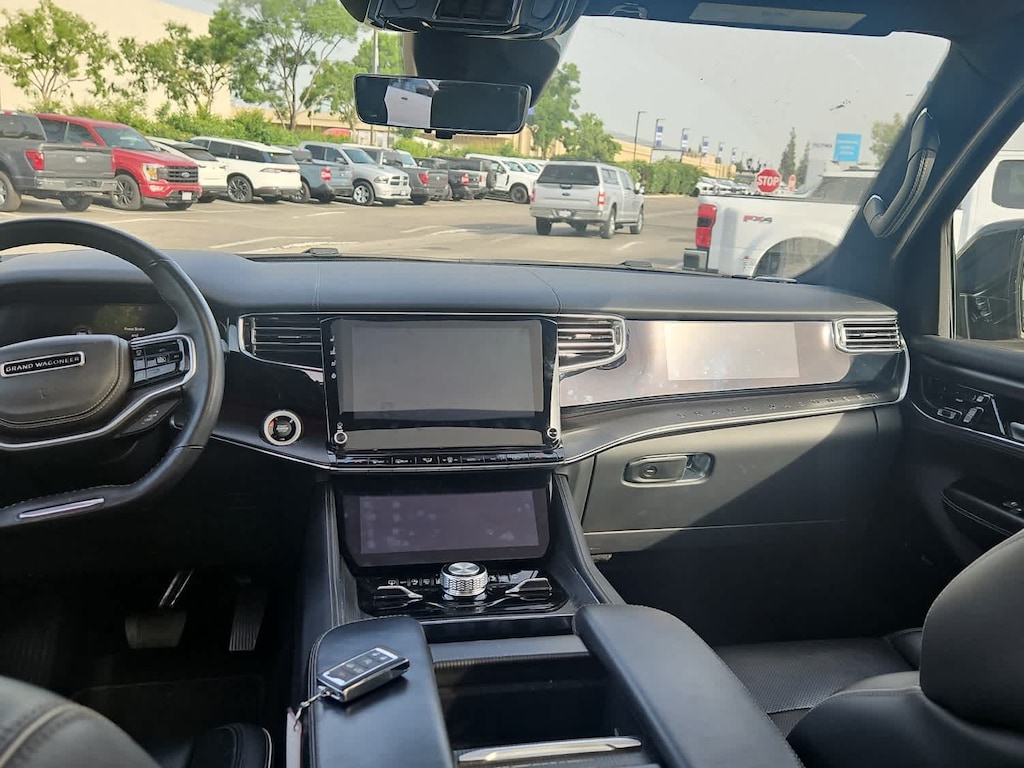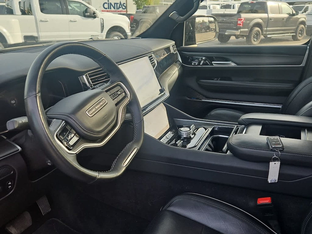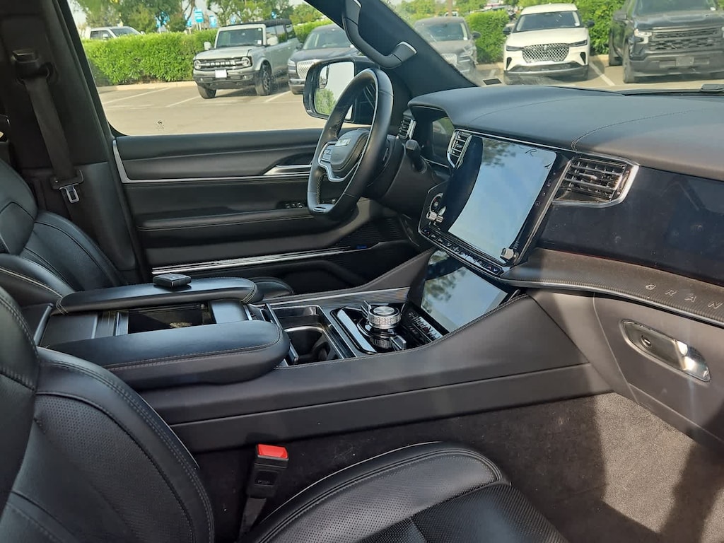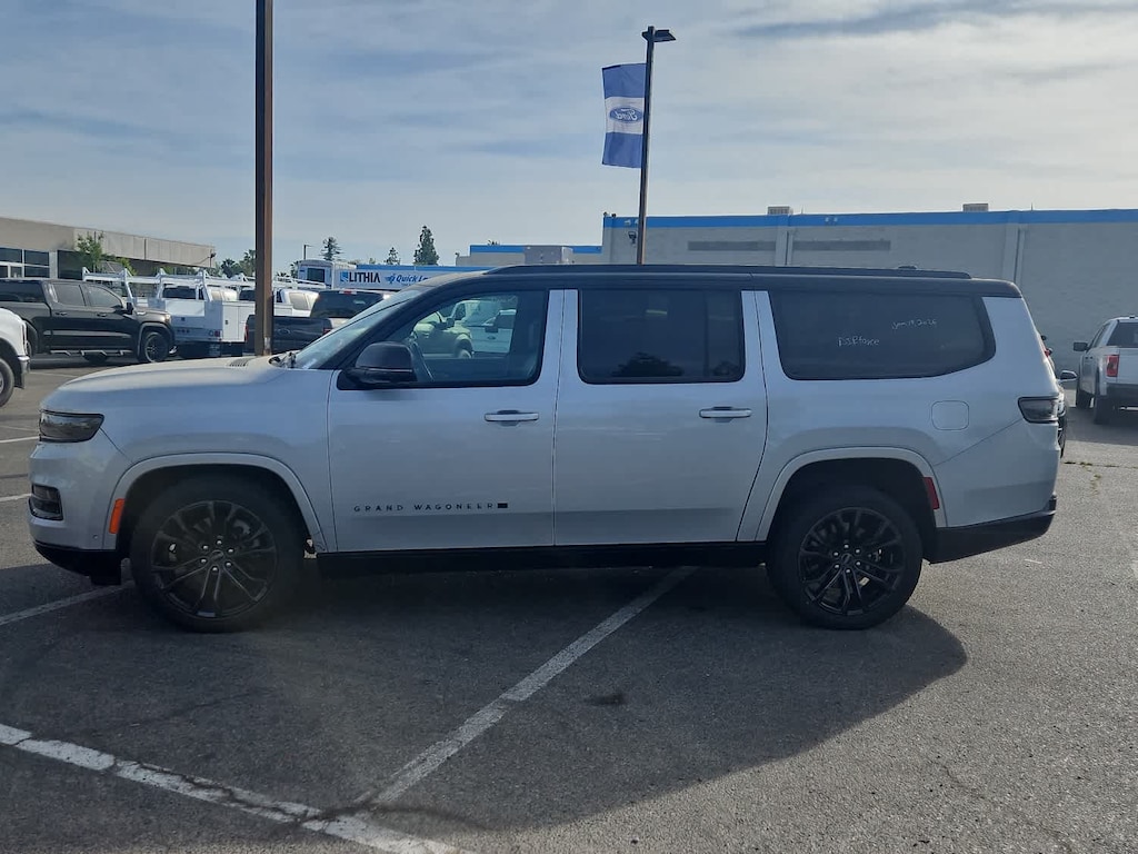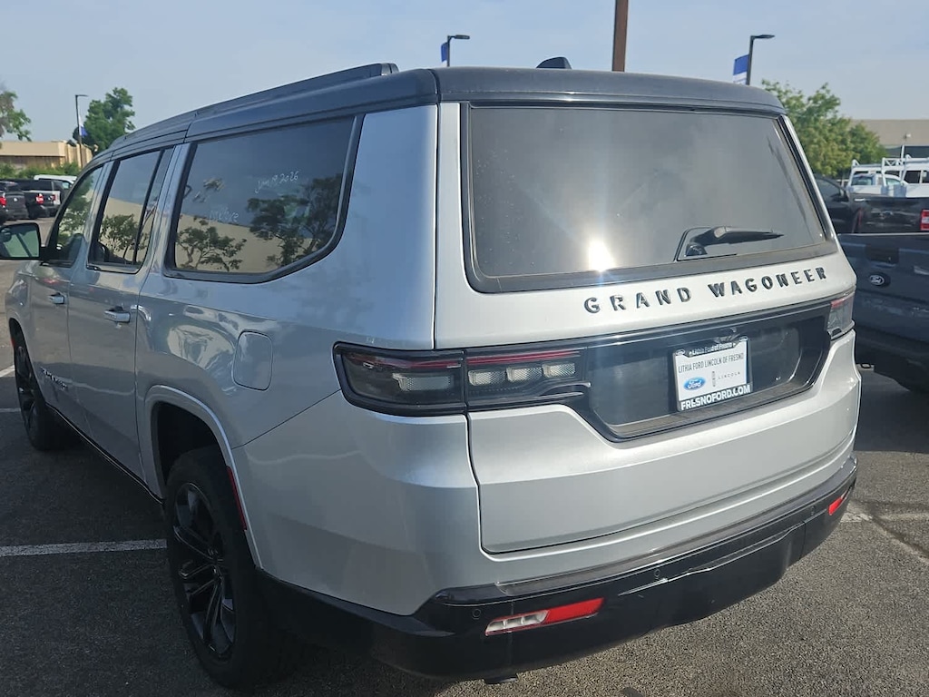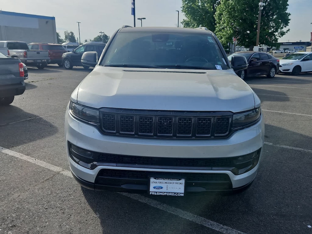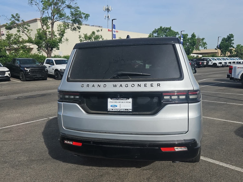 Lithia Ford and Lincoln of Fresno is pleased to offer this Silver Zynith 2024 Jeep Grand Wagoneer L Series II for purchase, this vehicle is well equipped with many features including: Flexible Seating Group (2nd Row Dual Charge-Only USB Ports, 40/20/40 2nd Row Bench Power Tip/Slide, and 8-Passenger Seating), Obsidian Appearance Package, Quick Order Package 28T Obsidian (23 Speaker McIntosh Reference Audio System, Adjustable Roof Rail Crossbars, Black Interior Accents, Black Roof, Front Console Cooler, Front Passenger Interactive Display, Gloss Black Upper & Lower DLO Molding, Piano Black Exterior Accents, Rearview Autodim Digital Display Mirror, Ventilated Rear Seats, and Wheels: 22 x 9.0 Tinted Polished w/Black Insert), Two Tone Paint Group, Jeep Certified, 19 Speakers, 3.92 Rear Axle Ratio, 3rd row seats: bench, 4-Wheel Disc Brakes, ABS brakes, Adjustable pedals, Air Conditioning, Alloy wheels, AM/FM radio: SiriusXM with 360L, Anti-whiplash front head restraints, Apple CarPlay/Android Auto, Audio memory, Auto High-beam Headlights, Auto-dimming door mirrors, Auto-dimming Rear-View mirror, Auto-leveling suspension, Automatic temperature control, Brake assist, Bumpers: body-color, Compass, Delay-off headlights, Driver door bin, Driver vanity mirror, Drivers Seat Mounted Armrest, Dual front impact airbags, Dual front side impact airbags, Electronic Stability Control, Emergency communication system, Four wheel independent suspension, Front anti-roll bar, Front Bucket Seats, Front Center Armrest w/Storage, Front dual zone A/C, Front fog lights, Front reading lights, Fully automatic headlights, Garage door transmitter, Genuine wood console insert, Genuine wood dashboard insert, Genuine wood door panel insert, Heads-Up Display, Heated door mirrors, Heated front seats, Heated rear seats, Heated steering wheel, Illuminated entry, Knee airbag, Leather steering wheel, Leather Trimmed Bucket Seats, Low tire pressure warning, Memory seat, Navigation System, Normal Duty Suspension, Occupant sensing airbag, Outside temperature display, Overhead airbag, Overhead console, Panic alarm, Passenger door bin, Passenger seat mounted armrest, Passenger vanity mirror, Pedal memory, Power adjustable front head restraints, Power door mirrors, Power driver seat, Power Liftgate, Power moonroof, Power passenger seat, Power steering, Power windows, Radio data system, Radio: Uconnect 5 Nav w/12.0 Display, Rain sensing wipers, Rear air conditioning, Rear anti-roll bar, Rear dual zone A/C, Rear reading lights, Rear seat center armrest, Rear window defroster, Rear window wiper, Reclining 3rd row seat, Remote keyless entry, Security system, Speed control, Speed-sensing steering, Speed-Sensitive Wipers, Split folding rear seat, Steering wheel memory, Steering wheel mounted audio controls, Tachometer, Telescoping steering wheel, Tilt steering wheel, Traction control, Trip computer, Turn signal indicator mirrors, Variably intermittent wipers, Ventilated front seats, and Voltmeter. 4WD 3.0L I6 8-Speed Automatic Series II