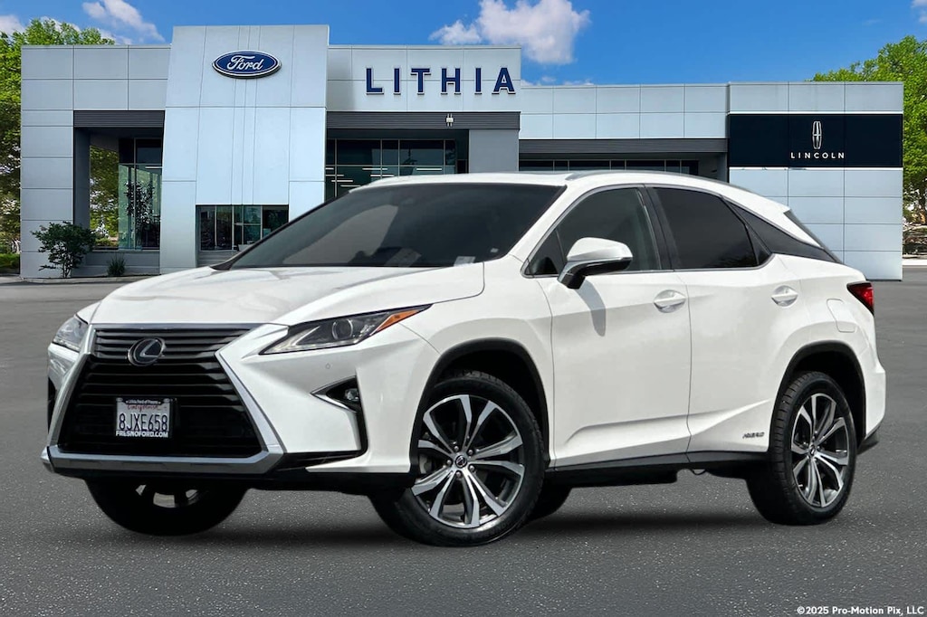 Lithia Ford and Lincoln of Fresno is pleased to offer this Ultra White 2019 Lexus RX 450h for purchase, this vehicle is well equipped with many features including: Premium Package (Driver Seat Memory, Leather Seat Trim, Power Folding Electrochromic Mirror w/Memory, Rear Armrest Storage Compartment, Steering Wheel Memory, and Wood Door Trim), Lexus Certified, 3.5L V6 DOHC VVT-i 24V, AWD, Black w/Leather Seat Trim, 3.54 Axle Ratio, 4-Wheel Disc Brakes, 9 Speakers, ABS brakes, Air Conditioning, Alloy wheels, AM/FM radio: SiriusXM, AM/FM/CD Radio, Anti-whiplash front head restraints, Auto High-beam Headlights, Auto tilt-away steering wheel, Auto-dimming door mirrors, Auto-dimming Rear-View mirror, Automatic temperature control, Brake assist, Bumpers: body-color, CD player, Delay-off headlights, Driver door bin, Driver vanity mirror, Dual front impact airbags, Dual front side impact airbags, Electronic Stability Control, Emergency communication system: Lexus Enform w/Safety Connect, Exterior Parking Camera Rear, Four wheel independent suspension, Front anti-roll bar, Front Bucket Seats, Front Center Armrest, Front dual zone A/C, Front fog lights, Front reading lights, Fully automatic headlights, Garage door transmitter: HomeLink, Genuine wood console insert, Genuine wood door panel insert, Heated door mirrors, Heated steering wheel, Illuminated entry, Knee airbag, Leather Shift Knob, Leather steering wheel, Lexus Enform Wi-Fi, Low tire pressure warning, NuLuxe Seat Trim, Occupant sensing airbag, Outside temperature display, Overhead airbag, Overhead console, Panic alarm, Passenger door bin, Passenger vanity mirror, Power door mirrors, Power driver seat, Power Liftgate, Power passenger seat, Power steering, Power windows, Radio data system, Rain sensing wipers, Rear anti-roll bar, Rear reading lights, Rear seat center armrest, Rear side impact airbag, Rear window defroster, Rear window wiper, Remote keyless entry, Security system, Speed control, Speed-sensing steering, Split folding rear seat, Spoiler, Steering wheel mounted audio controls, Telescoping steering wheel, Tilt steering wheel, Traction control, Trip computer, Turn signal indicator mirrors, Variably intermittent wipers, and Wheels: 18 x 7.5 7-Spoke Aluminum. AWD 3.5L V6 DOHC VVT-i 24V eCVT 450h