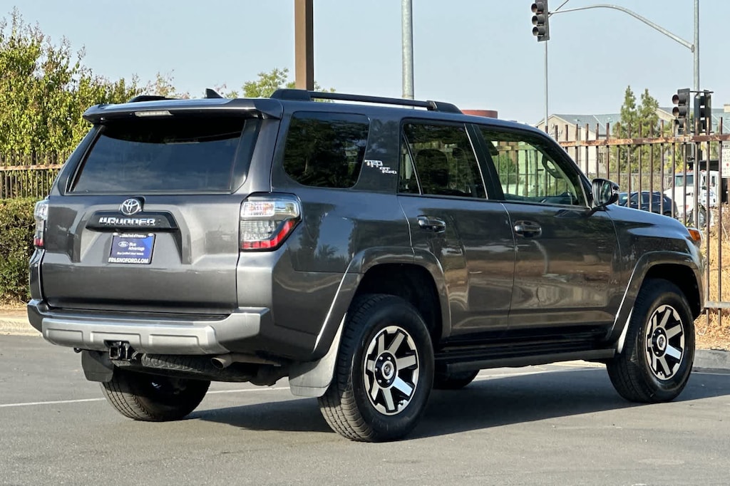 Lithia Ford and Lincoln of Fresno is pleased to offer this Gray 2022 Toyota 4Runner TRD Off-Road Premium for purchase, this vehicle is well equipped with many features including: Toyota Certified, 4WD, 3.727 Axle Ratio, 4-Wheel Disc Brakes, 8 Speakers, ABS brakes, Air Conditioning, Alloy wheels, AM/FM radio: SiriusXM, Anti-whiplash front head restraints, Apple CarPlay/Android Auto, Auto High-beam Headlights, Auto-dimming Rear-View mirror, Black Roof Rails, Blind Spot Monitor (BSM), Brake assist, Bumpers: body-color, Compass, Driver door bin, Driver vanity mirror, Dual front impact airbags, Dual front side impact airbags, Electronic Stability Control, Emergency communication system: Safety Connect with 1-year trial, Exterior Parking Camera Rear, Front anti-roll bar, Front Bucket Seats, Front Center Armrest, Front fog lights, Front reading lights, Front wheel independent suspension, Garage Door Opener, Garage door transmitter: HomeLink, Heated door mirrors, Heated Front Bucket Seats, Heated front seats, Illuminated entry, Knee airbag, Leather Shift Knob, Low tire pressure warning, Occupant sensing airbag, Outside Rear View Mirror, Outside temperature display, Overhead airbag, Overhead console, Panic alarm, Passenger door bin, Passenger vanity mirror, Power door mirrors, Power driver seat, Power passenger seat, Power steering, Power windows, Radio: Premium Audio w/Dynamic Navigation, Rear anti-roll bar, Rear seat center armrest, Rear window defroster, Rear window wiper, Remote keyless entry, Roof rack: rails only, Security system, SofTex Seat Trim, Speed control, Speed-sensing steering, Split folding rear seat, Spoiler, Steering wheel mounted audio controls, Tachometer, Telescoping steering wheel, Tilt steering wheel, Traction control, Trip computer, Turn signal indicator mirrors, Variably intermittent wipers, and Wheels: 17 Unique 7-Spoke Off-Road Alloy. 4WD 4.0L V6 DOHC 24V 5-Speed with ECT TRD Off-Road Premium