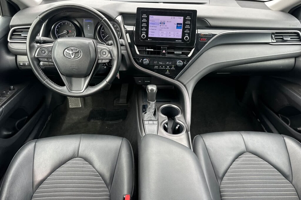 Lithia Ford and Lincoln of Fresno is pleased to offer this Silver 2023 Toyota Camry for purchase, this vehicle is well equipped with many features including: Toyota Certified, 4-Wheel Disc Brakes, 6 Speakers, 8.0J x 18 Alloy Wheels, ABS brakes, Air Conditioning, Alloy wheels, AM/FM radio: SiriusXM, Apple CarPlay/Android Auto, Auto High-beam Headlights, Automatic temperature control, Brake assist, Bumpers: body-color, Delay-off headlights, Driver door bin, Driver vanity mirror, Dual front impact airbags, Dual front side impact airbags, Electronic Stability Control, Emergency communication system: Safety Connect (1-year trial), Exterior Parking Camera Rear, Four wheel independent suspension, Front anti-roll bar, Front Bucket Seats, Front Center Armrest, Front dual zone A/C, Front reading lights, Fully automatic headlights, Heated door mirrors, Illuminated entry, Knee airbag, Leather steering wheel, Low tire pressure warning, Occupant sensing airbag, Outside temperature display, Overhead airbag, Overhead console, Panic alarm, Passenger door bin, Passenger vanity mirror, Power door mirrors, Power driver seat, Power steering, Power windows, Radio data system, Radio: Audio, Rear anti-roll bar, Rear seat center armrest, Rear side impact airbag, Rear window defroster, Remote keyless entry, Security system, Speed control, Speed-sensing steering, Split folding rear seat, Spoiler, Sport SofTex Seat Trim w/Fabric Inserts, Steering wheel mounted audio controls, Tachometer, Telescoping steering wheel, Tilt steering wheel, Traction control, Trip computer, Turn signal indicator mirrors, and Variably intermittent wipers. FWD 2.5L I4 DOHC 16V 8-Speed Automatic