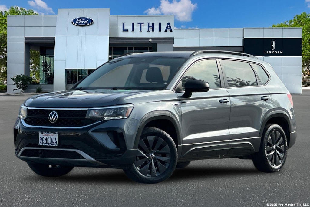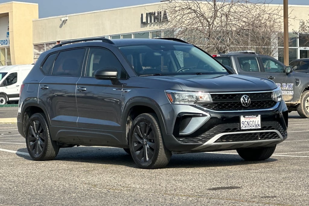 Lithia Ford and Lincoln of Fresno is pleased to offer this Platinum Gray Metallic 2023 Volkswagen Taos 1.5T S for purchase, this vehicle is well equipped with many features including: Convenience Features (Automatic Rain-Sensing Front Wipers, Heated Leatherette-Wrapped Steering Wheel, and Light Assist (High Beam Control For Headlights)), Driver Assistance Package (Adaptive Cruise Control (ACC) w/Stop & Go, Emergency Assist, Lane Assist (Lane Keeping System), and Travel Assist (Semi-Automated Driving Assistance)), Volkswagen Certified, 3.23 Axle Ratio, 4-Wheel Disc Brakes, 6 Speakers, ABS brakes, Air Conditioning, Alloy wheels, AM/FM radio, Brake assist, Bumpers: body-color, Cloth Seating Surfaces, Compass, Delay-off headlights, Driver door bin, Driver vanity mirror, Dual front impact airbags, Dual front side impact airbags, Electronic Stability Control, Emergency communication system: VW Car-Net Safe & Secure 5-year, Exterior Parking Camera Rear, First Aid Kit, Front anti-roll bar, Front Bucket Seats, Front Center Armrest, Front reading lights, Front Strut Rear Torsion Beam Suspension, Front wheel independent suspension, Fully automatic headlights, Illuminated entry, Low tire pressure warning, Occupant sensing airbag, Outside temperature display, Overhead airbag, Overhead console, Panic alarm, Passenger door bin, Passenger vanity mirror, Power door mirrors, Power steering, Power windows, Radio data system, Radio: Composition Color AM/FM, Rear anti-roll bar, Rear seat center armrest, Rear Sensors Credit, Rear window defroster, Rear window wiper, Remote keyless entry, Roof rack: rails only, Rubber Mats Kit (SNM), Speed control, Speed-sensing steering, Split folding rear seat, Spoiler, Steering wheel mounted audio controls, Tachometer, Telescoping steering wheel, Tilt steering wheel, Traction control, Trip computer, Variably intermittent wipers, and Wheels: 17 Silver Painted Alloy. FWD 1.5L I4 Turbocharged DOHC 16V LEV3-SULEV30 158hp 8-Speed Automatic with Tiptronic 1.5T S