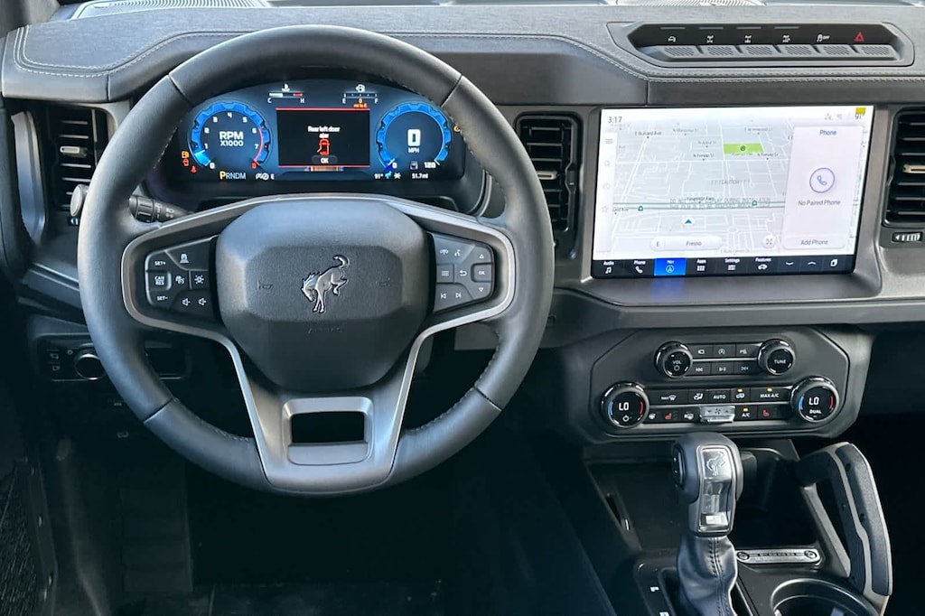 Lithia Ford and Lincoln of Fresno is pleased to offer this Marsh Gray 2025 Ford Bronco Badlands for purchase, this vehicle is well equipped with many features including: 4-Wheel Disc Brakes, 4.7 Axle Ratio, 7 Speakers, ABS brakes, Air Conditioning, Alloy wheels, AM/FM radio: SiriusXM with 360L, AM/FM Stereo, Auto High-beam Headlights, Auto-dimming Rear-View mirror, Brake assist, Compass, Connected Navigation, Delay-off headlights, Driver door bin, Driver vanity mirror, Dual front impact airbags, Dual front side impact airbags, Electronic Stability Control, Emergency communication system: 911 Assist, Exterior Parking Camera Rear, Front anti-roll bar, Front Bucket Seats, Front Center Armrest, Front fog lights, Front reading lights, Front wheel independent suspension, Fully automatic headlights, Heated door mirrors, Heated front seats, Heated steering wheel, Illuminated entry, Integrated roll-over protection, Leather Shift Knob, Low tire pressure warning, Marine Grade Vinyl Heated Bucket Seats, Occupant sensing airbag, Outside temperature display, Overhead airbag, Overhead console, Panic alarm, Passenger door bin, Passenger vanity mirror, Power door mirrors, Power steering, Power windows, Radio data system, Remote keyless entry, Security system, SiriusXM w/360L, Speed control, Split folding rear seat, Steering wheel mounted audio controls, SYNC 4, Tachometer, Telescoping steering wheel, Tilt steering wheel, Traction control, Trip computer, Variably intermittent wipers, and Voltmeter. 4WD 10-Speed Automatic 2.7L EcoBoost V6 Badlands