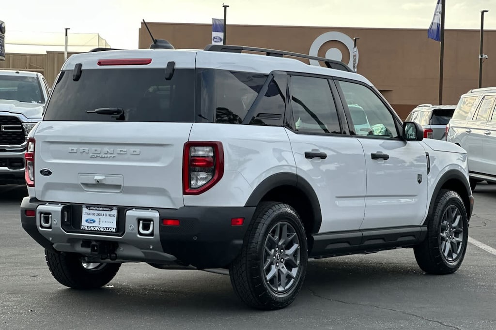 Lithia Ford and Lincoln of Fresno is pleased to offer this Oxford White 2025 Ford Bronco Sport Big Bend for purchase, this vehicle is well equipped with many features including: 4-Wheel Disc Brakes, 6 Speakers, ABS brakes, Air Conditioning, Alloy wheels, AM/FM radio: SiriusXM, AM/FM Stereo, Auto High-beam Headlights, Automatic temperature control, Brake assist, Cloth w/Easy-to-Clean Front Bucket Seats, Compass, Delay-off headlights, Driver door bin, Driver vanity mirror, Dual front impact airbags, Dual front side impact airbags, Electronic Stability Control, Emergency communication system: SYNC 4 911 Assist, Four wheel independent suspension, Front anti-roll bar, Front Bucket Seats, Front Center Armrest, Front reading lights, Fully automatic headlights, Heated door mirrors, Illuminated entry, Knee airbag, Low tire pressure warning, Occupant sensing airbag, Outside temperature display, Overhead airbag, Overhead console, Panic alarm, Passenger door bin, Passenger vanity mirror, Power door mirrors, Power steering, Power windows, Radio data system, Rear anti-roll bar, Rear Parking Sensors, Rear reading lights, Rear seat center armrest, Rear window defroster, Rear window wiper, Remote keyless entry, Security system, SiriusXM, Speed control, Speed-sensing steering, Speed-Sensitive Wipers, Split folding rear seat, Steering wheel mounted audio controls, SYNC 4 w/Enhanced Voice Recognition, Tachometer, Telescoping steering wheel, Tilt steering wheel, Traction control, Trip computer, Variably intermittent wipers, and Wheels: 17 Carbonized Gray-Painted Aluminum. 4WD 8-Speed Automatic 1.5L EcoBoost Big Bend