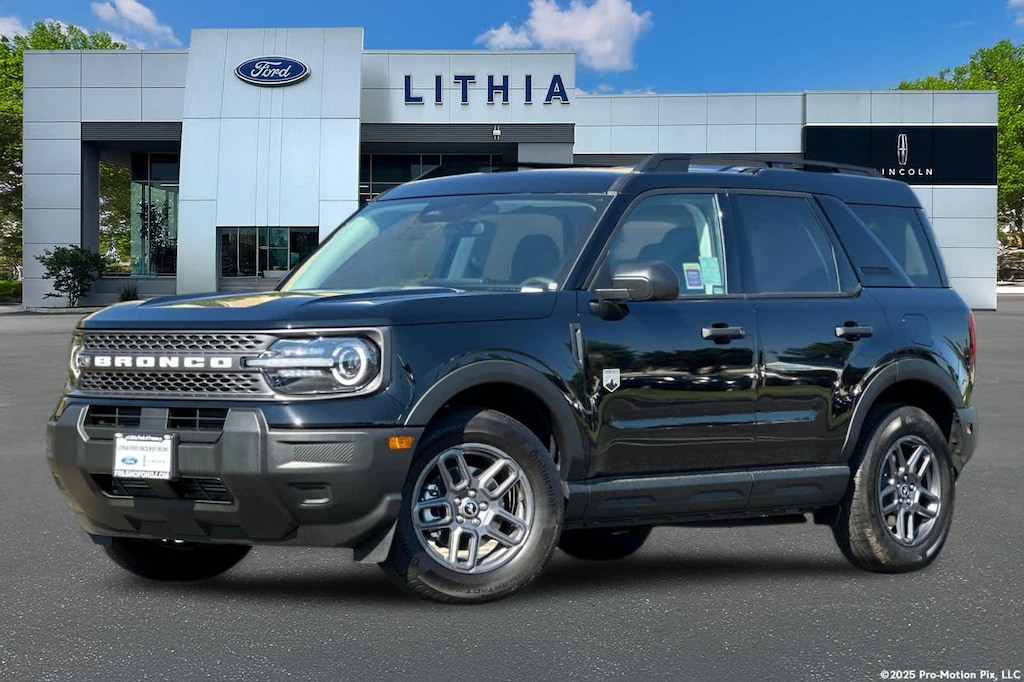 Lithia Ford and Lincoln of Fresno is pleased to offer this Shadow Black 2025 Ford Bronco Sport Big Bend for purchase, this vehicle is well equipped with many features including: 4-Wheel Disc Brakes, 6 Speakers, ABS brakes, Air Conditioning, Alloy wheels, AM/FM radio: SiriusXM, AM/FM Stereo, Auto High-beam Headlights, Automatic temperature control, Brake assist, Cloth w/Easy-to-Clean Front Bucket Seats, Compass, Delay-off headlights, Driver door bin, Driver vanity mirror, Dual front impact airbags, Dual front side impact airbags, Electronic Stability Control, Emergency communication system: SYNC 4 911 Assist, Four wheel independent suspension, Front anti-roll bar, Front Bucket Seats, Front Center Armrest, Front reading lights, Fully automatic headlights, Heated door mirrors, Illuminated entry, Knee airbag, Low tire pressure warning, Occupant sensing airbag, Outside temperature display, Overhead airbag, Overhead console, Panic alarm, Passenger door bin, Passenger vanity mirror, Power door mirrors, Power steering, Power windows, Radio data system, Rear anti-roll bar, Rear Parking Sensors, Rear reading lights, Rear seat center armrest, Rear window defroster, Rear window wiper, Remote keyless entry, Security system, SiriusXM, Speed control, Speed-sensing steering, Speed-Sensitive Wipers, Split folding rear seat, Steering wheel mounted audio controls, SYNC 4 w/Enhanced Voice Recognition, Tachometer, Telescoping steering wheel, Tilt steering wheel, Traction control, Trip computer, Variably intermittent wipers, and Wheels: 17 Carbonized Gray-Painted Aluminum. 4WD 8-Speed Automatic 1.5L EcoBoost Big Bend