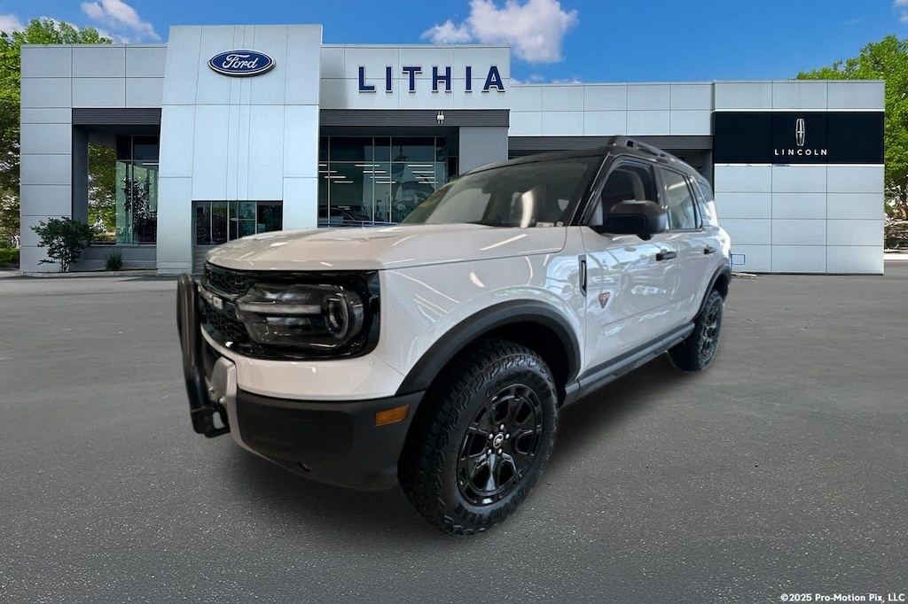 Lithia Ford and Lincoln of Fresno is pleased to offer this Oxford White 2025 Ford Bronco Sport Badlands for purchase, this vehicle is well equipped with many features including: 4-Wheel Disc Brakes, 6 Speakers, ABS brakes, Air Conditioning, Alloy wheels, AM/FM radio: SiriusXM, AM/FM Stereo, Auto High-beam Headlights, Auto-dimming Rear-View mirror, Automatic temperature control, Brake assist, Compass, Delay-off headlights, Driver door bin, Driver vanity mirror, Dual front impact airbags, Dual front side impact airbags, Electronic Stability Control, Emergency communication system: SYNC 4 911 Assist, Four wheel independent suspension, Front anti-roll bar, Front Bucket Seats, Front Center Armrest, Front fog lights, Front reading lights, Fully automatic headlights, Garage door transmitter, Heated door mirrors, Heated front seats, Heated steering wheel, Illuminated entry, Knee airbag, Leather Trimmed Front Bucket Seats, Low tire pressure warning, Memory seat, Occupant sensing airbag, Outside temperature display, Overhead airbag, Overhead console, Panic alarm, Passenger door bin, Passenger vanity mirror, Power door mirrors, Power driver seat, Power passenger seat, Power steering, Power windows, Radio data system, Rear anti-roll bar, Rear reading lights, Rear seat center armrest, Rear window defroster, Rear window wiper, Remote keyless entry, Security system, SiriusXM, Speed control, Speed-sensing steering, Speed-Sensitive Wipers, Split folding rear seat, Steering wheel mounted audio controls, SYNC 4 w/Enhanced Voice Recognition, Tachometer, Telescoping steering wheel, Tilt steering wheel, Traction control, Trip computer, Variably intermittent wipers, and Wheels: 17 Matte Black-Painted Aluminum. 4WD 8-Speed Automatic EcoBoost 2.0L I4 GTDi DOHC Turbocharged VCT Badlands
