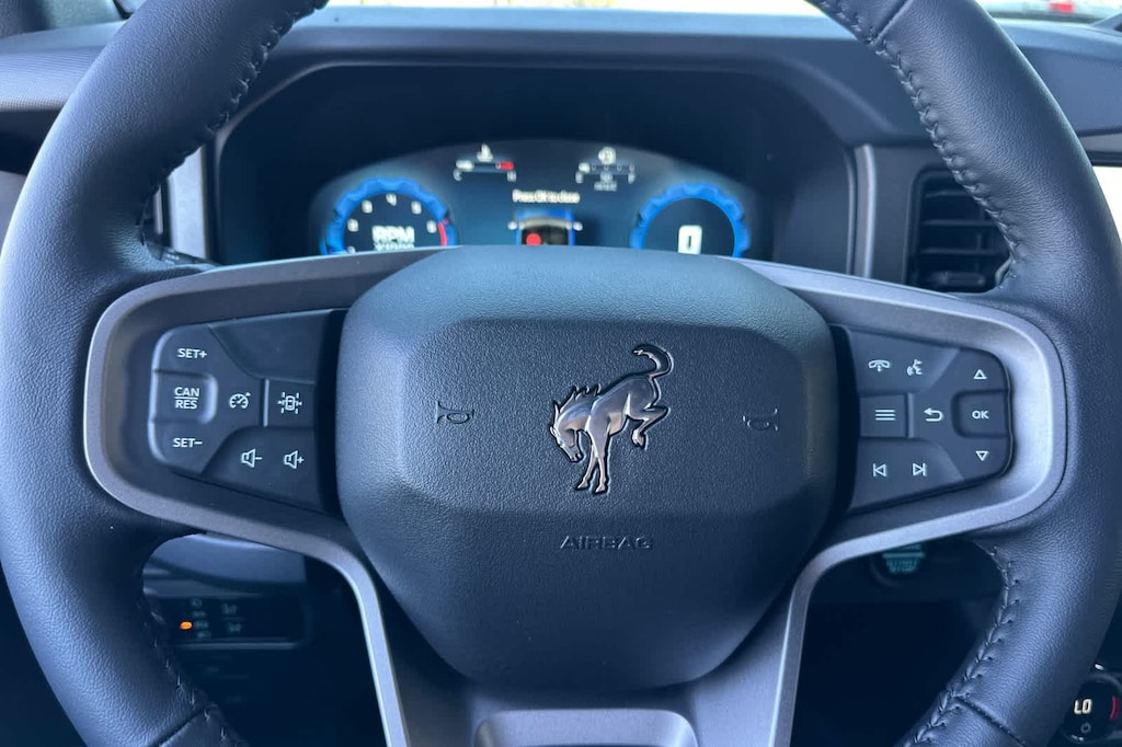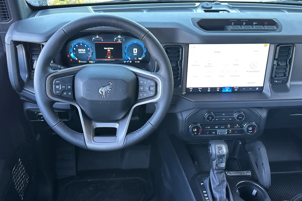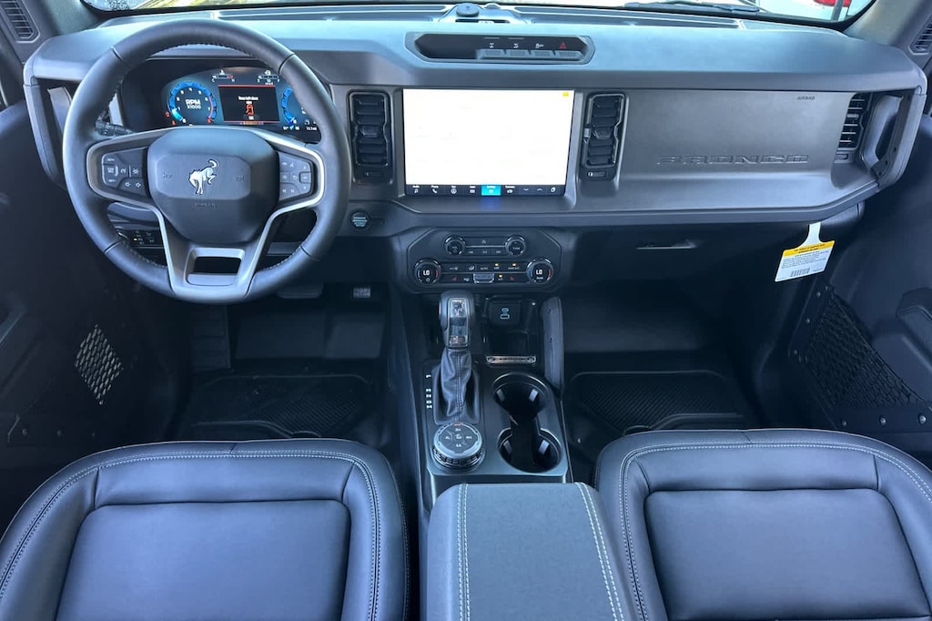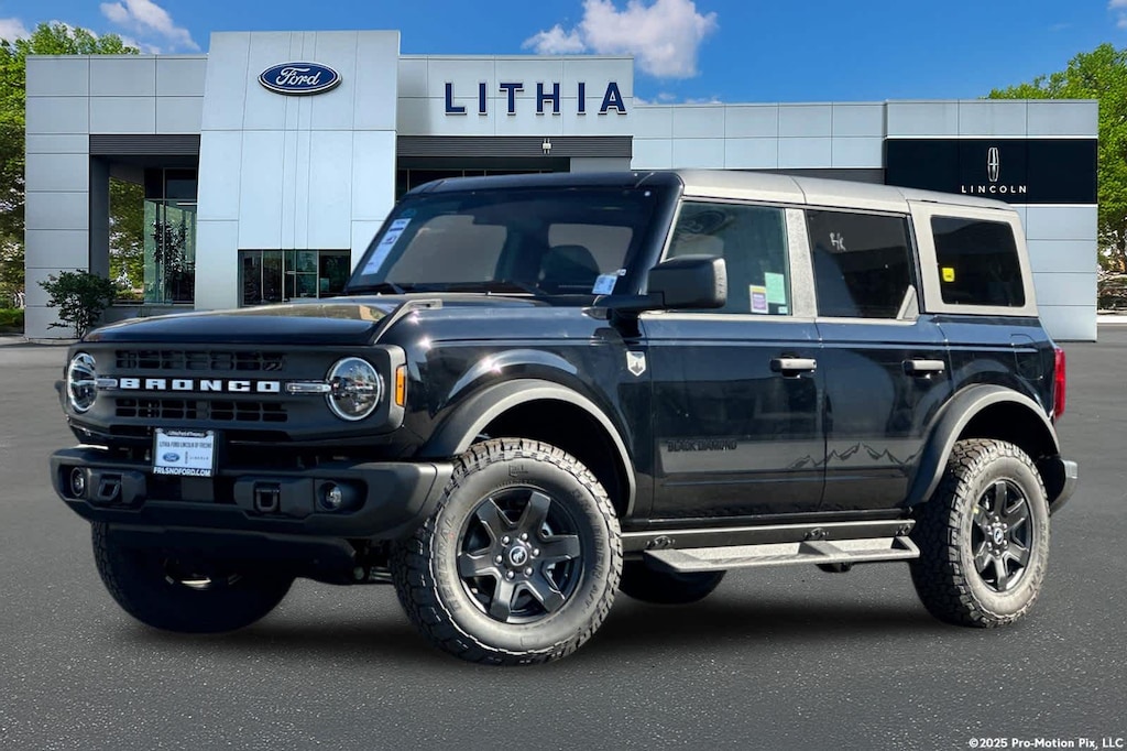 Lithia Ford and Lincoln of Fresno is pleased to offer this Shadow Black 2025 Ford Bronco Big Bend for purchase, this vehicle is well equipped with many features including: 4-Wheel Disc Brakes, 4.46 Axle Ratio, 7 Speakers, ABS brakes, Air Conditioning, Alloy wheels, AM/FM radio: SiriusXM with 360L, AM/FM Stereo, Auto High-beam Headlights, Brake assist, Cloth Bucket Seats, Compass, Delay-off headlights, Driver door bin, Driver vanity mirror, Dual front impact airbags, Dual front side impact airbags, Electronic Stability Control, Emergency communication system: 911 Assist, Exterior Parking Camera Rear, Front anti-roll bar, Front Bucket Seats, Front Center Armrest, Front reading lights, Front wheel independent suspension, Fully automatic headlights, Heated door mirrors, Illuminated entry, Integrated roll-over protection, Leather Shift Knob, Low tire pressure warning, Occupant sensing airbag, Outside temperature display, Overhead airbag, Overhead console, Panic alarm, Passenger door bin, Passenger vanity mirror, Power door mirrors, Power steering, Power windows, Radio data system, Remote keyless entry, Security system, SiriusXM w/360L, Speed control, Split folding rear seat, Steering wheel mounted audio controls, SYNC 4, Tachometer, Telescoping steering wheel, Tilt steering wheel, Traction control, Trip computer, Variably intermittent wipers, and Wheels: 17 Carbonized Gray-Painted Aluminum. 4WD 10-Speed Automatic 2.3L EcoBoost I-4 Big Bend