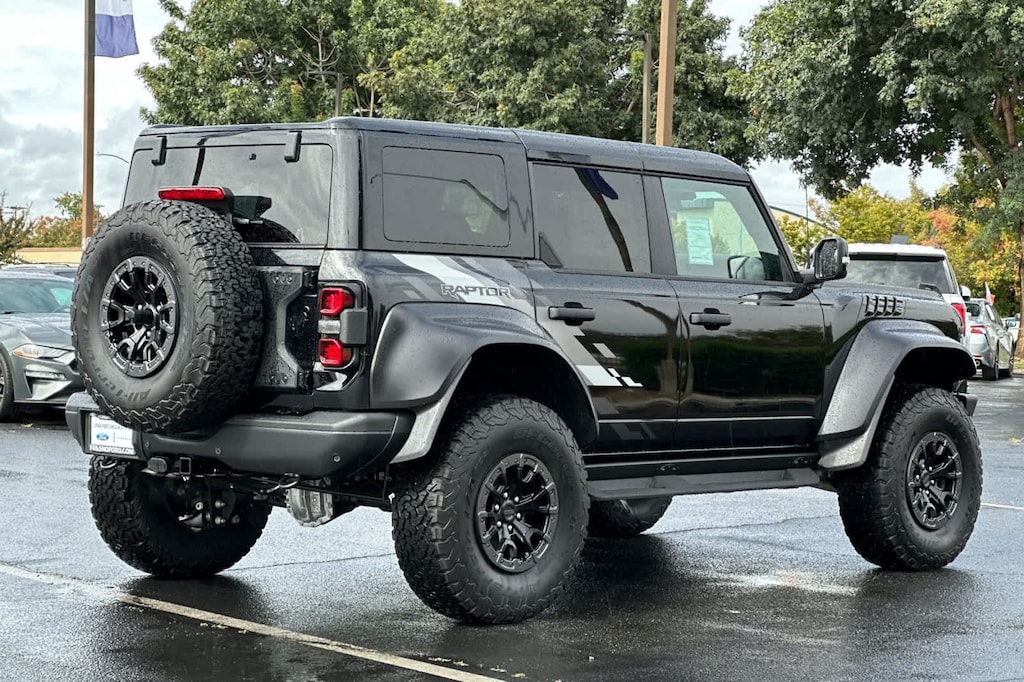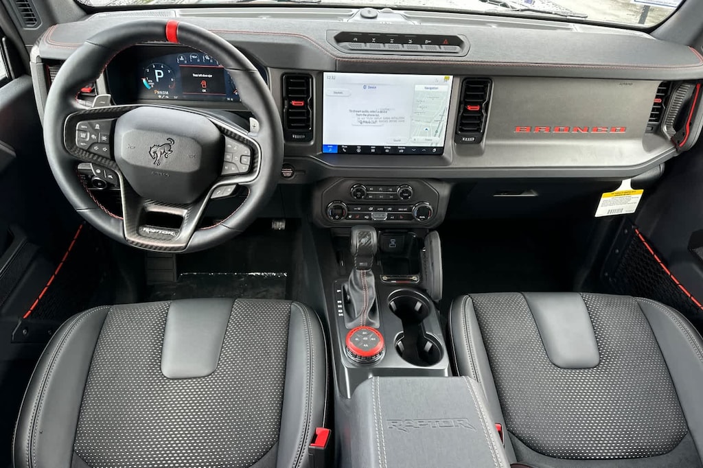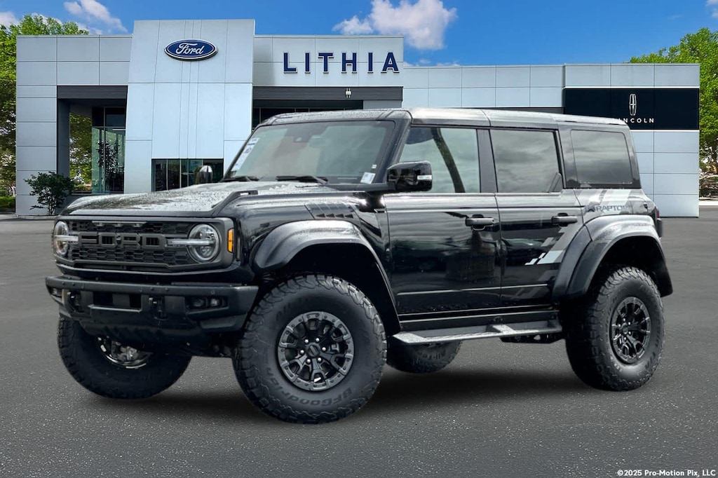 Lithia Ford and Lincoln of Fresno is pleased to offer this Shadow Black 2025 Ford Bronco Raptor for purchase, this vehicle is well equipped with many features including: 12 Speakers, 4-Wheel Disc Brakes, ABS brakes, Air Conditioning, Alloy wheels, AM/FM radio: SiriusXM with 360L, Auto High-beam Headlights, Auto-dimming Rear-View mirror, Automatic temperature control, Brake assist, Compass, Connected Navigation, Convertible HardTop, Convertible roof lining, Delay-off headlights, Driver door bin, Driver vanity mirror, Dual front impact airbags, Dual front side impact airbags, Electronic Stability Control, Emergency communication system: 911 Assist, Exterior Parking Camera Rear, Front anti-roll bar, Front Bucket Seats, Front Center Armrest, Front dual zone A/C, Front fog lights, Front reading lights, Front wheel independent suspension, Fully automatic headlights, Garage door transmitter, Glass rear window, Heated door mirrors, Heated front seats, Heated steering wheel, Illuminated entry, Integrated roll-over protection, Leather Shift Knob, Low tire pressure warning, Marine Grade Vinyl Bucket Seats, Navigation system: Connected Navigation, Occupant sensing airbag, Outside temperature display, Overhead airbag, Overhead console, Panic alarm, Passenger door bin, Passenger vanity mirror, Power door mirrors, Power steering, Power windows, Radio data system, Radio: B&O Sound System by Bang & Olufsen, Rear anti-roll bar, Rear seat center armrest, Rear window defroster, Rear window wiper, Remote keyless entry, Security system, SiriusXM w/360L, Speed control, Split folding rear seat, Steering wheel mounted audio controls, SYNC 4, Tachometer, Telescoping steering wheel, Tilt steering wheel, Traction control, Trip computer, Turn signal indicator mirrors, Variably intermittent wipers, Voltmeter, and Wheels: 17 Black High Gloss-Painted Aluminum. 4WD 10-Speed Automatic 3.0L EcoBoost V6 Raptor