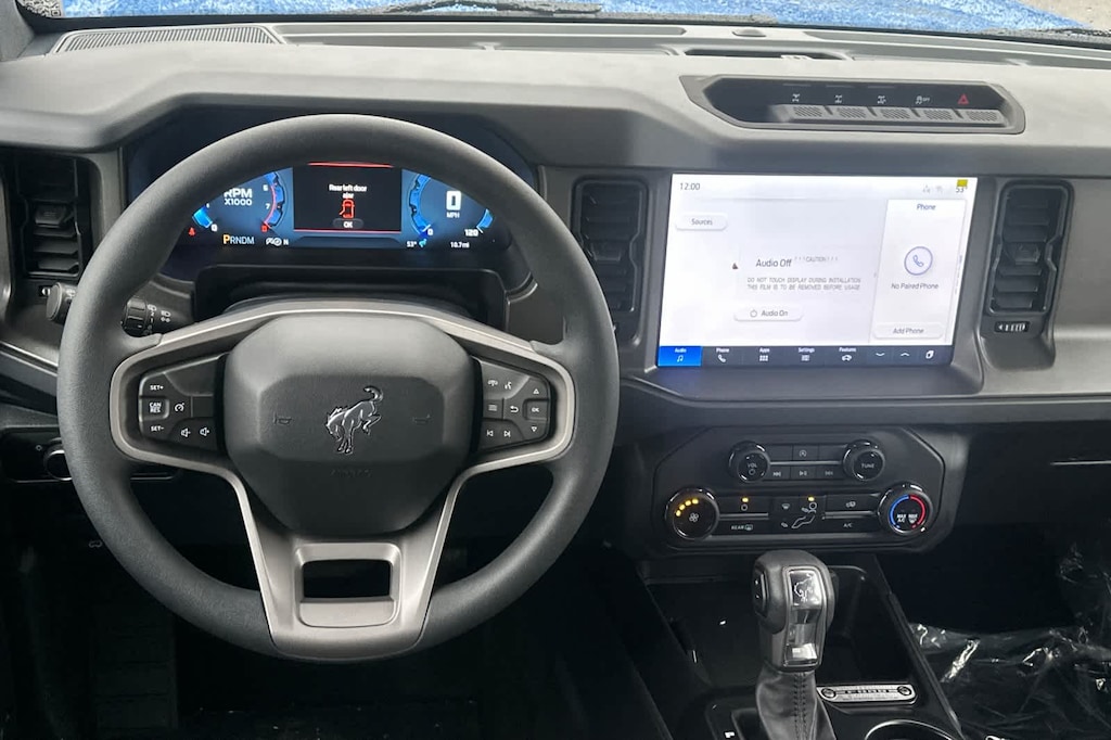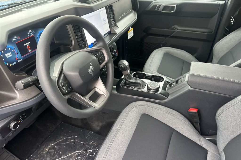 Lithia Ford and Lincoln of Fresno is pleased to offer this Velocity Blue Metallic 2025 Ford Bronco for purchase, this vehicle is well equipped with many features including: 4-Wheel Disc Brakes, 4.46 Axle Ratio, 7 Speakers, ABS brakes, Air Conditioning, AM/FM radio: SiriusXM with 360L, AM/FM Stereo, Auto High-beam Headlights, Brake assist, Cloth Bucket Seats, Compass, Delay-off headlights, Driver door bin, Driver vanity mirror, Dual front impact airbags, Dual front side impact airbags, Electronic Stability Control, Emergency communication system: 911 Assist, Exterior Parking Camera Rear, Front anti-roll bar, Front Bucket Seats, Front Center Armrest, Front reading lights, Front wheel independent suspension, Fully automatic headlights, Heated door mirrors, Illuminated entry, Integrated roll-over protection, Low tire pressure warning, Occupant sensing airbag, Outside temperature display, Overhead airbag, Overhead console, Panic alarm, Passenger door bin, Passenger vanity mirror, Power door mirrors, Power steering, Power windows, Radio data system, Remote keyless entry, Security system, SiriusXM w/360L, Speed control, Split folding rear seat, Steering wheel mounted audio controls, SYNC 4, Tachometer, Telescoping steering wheel, Tilt steering wheel, Traction control, Trip computer, Variably intermittent wipers, and Wheels: 16 Bright Polished Silver-Painted Steel. 4WD 10-Speed Automatic 2.3L EcoBoost I-4