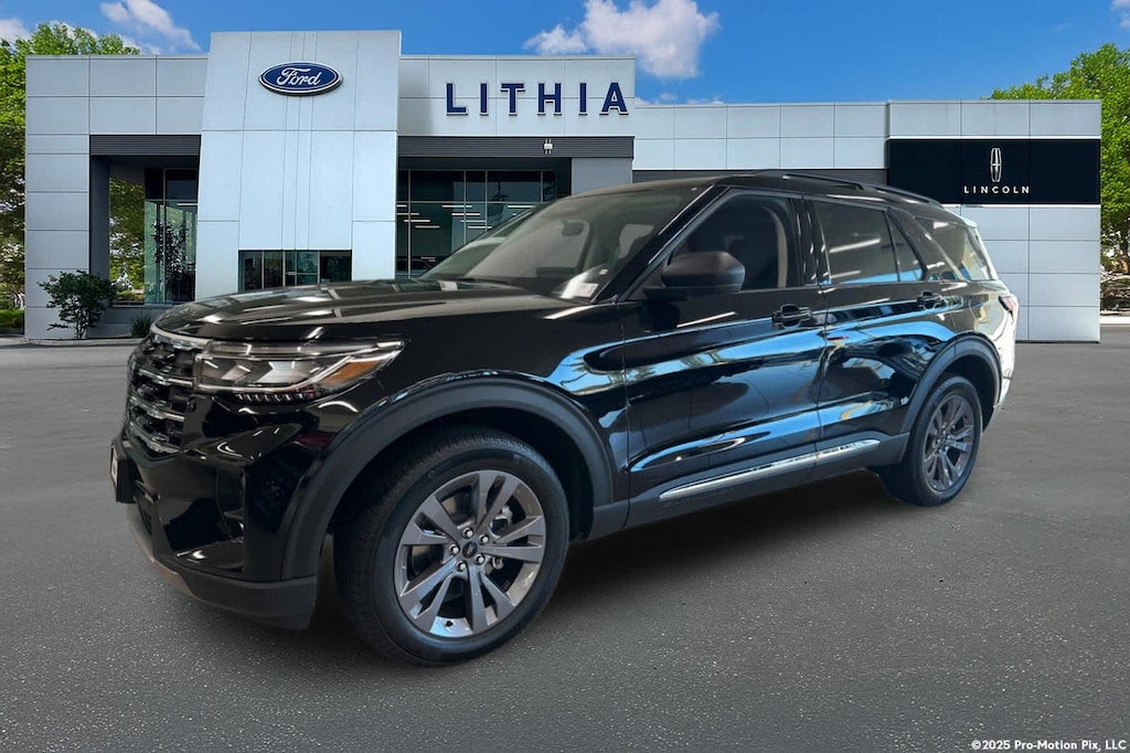Lithia Ford and Lincoln of Fresno is pleased to offer this Agate Black Metallic 2025 Ford Explorer Active for purchase, this vehicle is well equipped with many features including: 4WD, 3.58 Non-Limited Slip Rear Axle, 3rd row seats: bench, 4-Wheel Disc Brakes, 6 Speakers, ABS brakes, Air Conditioning, Alloy wheels, AM/FM radio: SiriusXM with 360L, AM/FM Stereo, Apple CarPlay/Android Auto, Auto High-beam Headlights, Automatic temperature control, Brake assist, Bumpers: body-color, Compass, Delay-off headlights, Driver door bin, Driver vanity mirror, Dual front impact airbags, Dual front side impact airbags, Electronic Stability Control, Emergency communication system: 911 Assist, Exterior Parking Camera Rear, Four wheel independent suspension, Front anti-roll bar, Front Bucket Seats, Front Center Armrest, Front dual zone A/C, Front reading lights, Fully automatic headlights, Heated door mirrors, Heated front seats, Illuminated entry, Knee airbag, Leather steering wheel, Low tire pressure warning, Navigation System, Occupant sensing airbag, Outside temperature display, Overhead airbag, Overhead console, Panic alarm, Passenger door bin, Passenger vanity mirror, Power door mirrors, Power driver seat, Power Liftgate, Power passenger seat, Power steering, Power windows, Rear air conditioning, Rear anti-roll bar, Rear reading lights, Rear window defroster, Rear window wiper, Remote keyless entry, Security system, Speed control, Speed-sensing steering, Speed-Sensitive Wipers, Split folding rear seat, Spoiler, Steering wheel mounted audio controls, Tachometer, Telescoping steering wheel, Tilt steering wheel, Traction control, Trip computer, Unique Heated Cloth Captains Chairs, Variably intermittent wipers, and Wheels: 18 Sparkle Silver-Painted Aluminum. 4WD 10-Speed Automatic 2.3L EcoBoost I-4 Active 4WD.
