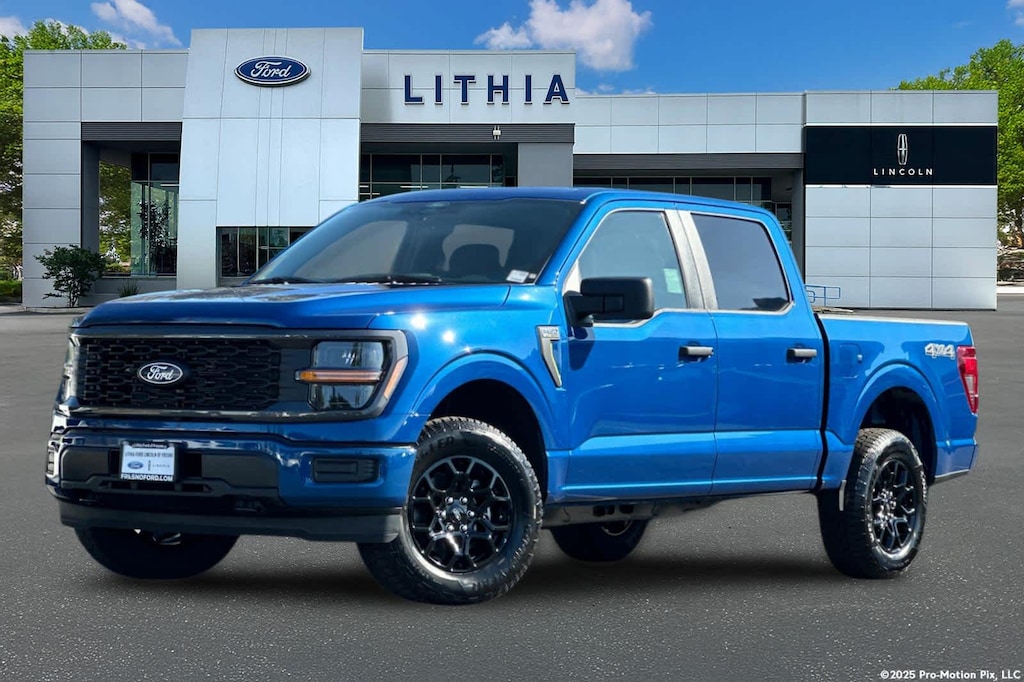 Lithia Ford and Lincoln of Fresno is pleased to offer this Atlas Blue Metallic 2025 Ford F-150 STX for purchase, this vehicle is well equipped with many features including: GVWR: 6,650 lbs Payload Package, 4WD, 3.55 Axle Ratio, 4-Wheel Disc Brakes, 6 Speakers, ABS brakes, Air Conditioning, Alloy wheels, AM/FM radio: SiriusXM with 360L, Auto High-beam Headlights, Brake assist, Bumpers: body-color, Compass, Delay-off headlights, Driver door bin, Dual front impact airbags, Dual front side impact airbags, Electronic Stability Control, Emergency communication system: SYNC 4 911 Assist, Front anti-roll bar, Front Bucket Seats, Front Center Armrest, Front reading lights, Front wheel independent suspension, Fully automatic headlights, Heated door mirrors, Illuminated entry, Low tire pressure warning, Occupant sensing airbag, Outside temperature display, Overhead airbag, Overhead console, Panic alarm, Passenger door bin, Passenger vanity mirror, Power door mirrors, Power steering, Power windows, Radio data system, Radio: AM/FM Stereo w/SiriusXM 360L, Rear Parking Sensors, Rear step bumper, Rear window defroster, Remote keyless entry, Security system, Speed control, Split folding rear seat, Steering wheel mounted audio controls, SYNC 4 w/Enhanced Voice Recognition, Tachometer, Telescoping steering wheel, Tilt steering wheel, Traction control, Trip computer, Variably intermittent wipers, Voltmeter, and Wheels: 18 Gloss Black. 4WD 10-Speed Automatic 2.7L V6 EcoBoost STX 4WD.