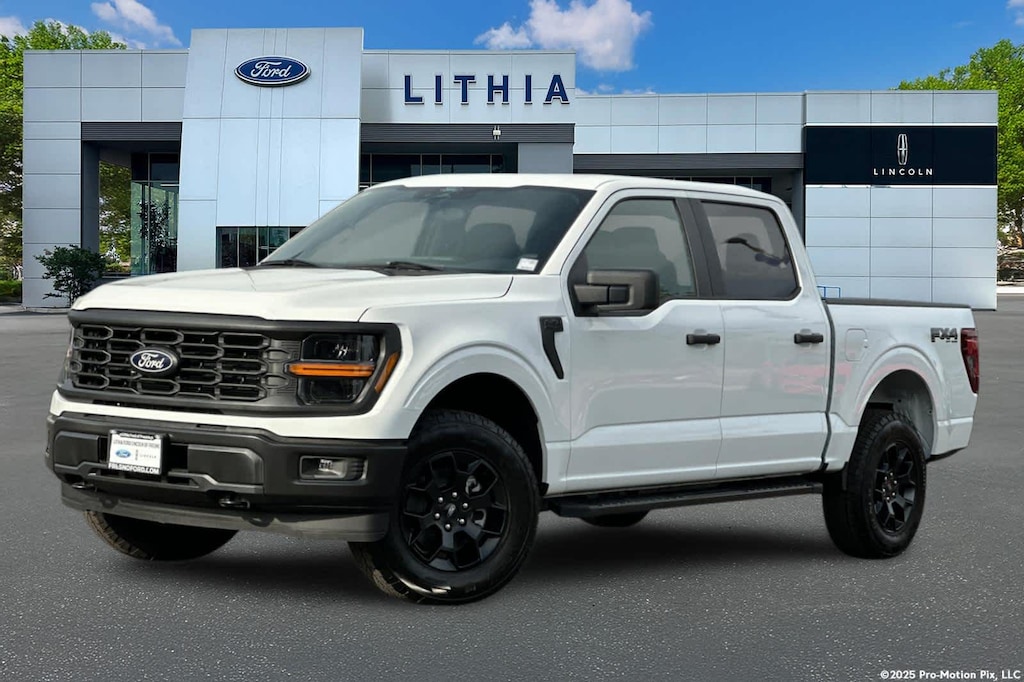 Lithia Ford and Lincoln of Fresno is pleased to offer this Oxford White 2025 Ford F-150 STX for purchase, this vehicle is well equipped with many features including: GVWR: 6,650 lbs Payload Package, 4WD, 3.55 Axle Ratio, 4-Wheel Disc Brakes, 6 Speakers, ABS brakes, Air Conditioning, Alloy wheels, AM/FM radio: SiriusXM with 360L, Auto High-beam Headlights, Brake assist, Bumpers: body-color, Compass, Delay-off headlights, Driver door bin, Dual front impact airbags, Dual front side impact airbags, Electronic Stability Control, Emergency communication system: SYNC 4 911 Assist, Front anti-roll bar, Front Bucket Seats, Front Center Armrest, Front reading lights, Front wheel independent suspension, Fully automatic headlights, Heated door mirrors, Illuminated entry, Low tire pressure warning, Occupant sensing airbag, Outside temperature display, Overhead airbag, Overhead console, Panic alarm, Passenger door bin, Passenger vanity mirror, Power door mirrors, Power steering, Power windows, Radio data system, Radio: AM/FM Stereo w/SiriusXM 360L, Rear Parking Sensors, Rear step bumper, Rear window defroster, Remote keyless entry, Security system, Speed control, Split folding rear seat, Steering wheel mounted audio controls, SYNC 4 w/Enhanced Voice Recognition, Tachometer, Telescoping steering wheel, Tilt steering wheel, Traction control, Trip computer, Variably intermittent wipers, Voltmeter, and Wheels: 18 Gloss Black. 4WD 10-Speed Automatic 2.7L V6 EcoBoost STX 4WD.