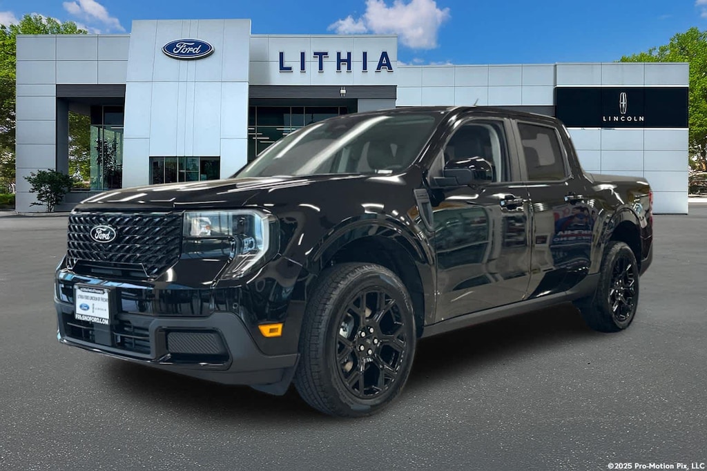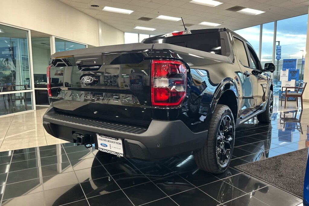 Lithia Ford and Lincoln of Fresno is pleased to offer this Shadow Black 2025 Ford Maverick Lariat for purchase, this vehicle is well equipped with many features including: 2.91 Axle Ratio, 4-Wheel Disc Brakes, 8 Speakers, ABS brakes, ActiveX Trimmed Heated Front Bucket Seats, Air Conditioning, Alloy wheels, AM/FM radio: SiriusXM with 360L, Apple CarPlay/Android Auto, Auto High-beam Headlights, Automatic temperature control, Brake assist, Bumpers: body-color, Compass, Delay-off headlights, Driver door bin, Driver vanity mirror, Dual front impact airbags, Dual front side impact airbags, Electronic Stability Control, Emergency communication system: SYNC 4 911 Assist, Exterior Parking Camera Rear, Four wheel independent suspension, Front anti-roll bar, Front Bucket Seats, Front Center Armrest, Front dual zone A/C, Front reading lights, Fully automatic headlights, Heated door mirrors, Heated front seats, Heated steering wheel, Illuminated entry, Knee airbag, Low tire pressure warning, Navigation system: Connected Navigation, Occupant sensing airbag, Outside temperature display, Overhead airbag, Overhead console, Panic alarm, Passenger door bin, Passenger vanity mirror, Power door mirrors, Power driver seat, Power steering, Power windows, Radio data system, Radio: B&O Sound System by Bang & Olufsen, Rear anti-roll bar, Rear seat center armrest, Rear step bumper, Remote keyless entry, Security system, SiriusXM w/360L, Speed control, Speed-sensing steering, Steering wheel mounted audio controls, SYNC 4 w/Enhanced Voice Recognition, Telescoping steering wheel, Tilt steering wheel, Traction control, Trip computer, and Wheels: 19 Machined Painted Aluminum. AWD 8-Speed Automatic EcoBoost 2.0L I4 GTDi DOHC Turbocharged VCT Lariat