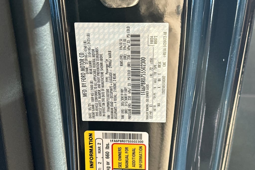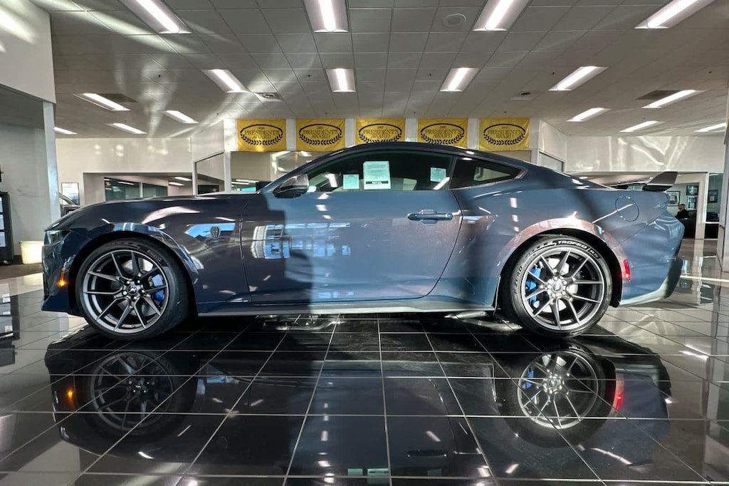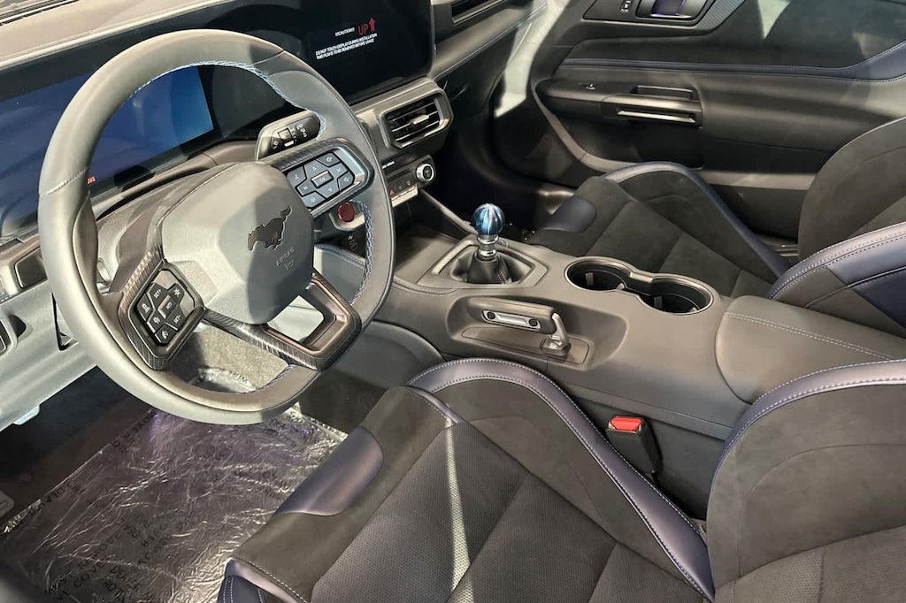 Lithia Ford and Lincoln of Fresno is pleased to offer this Blue Ember Metallic 2025 Ford Mustang Dark Horse for purchase, this vehicle is well equipped with many features including: Dark Horse Appearance Package (Notorious Blue Painted Brake Calipers, Painted Black Roof, and Unique Hood Graphic), Dark Horse Handling Package (Front Towing Hooks, Magnetic Damping System, Performance Front Aero Splitter, Performance Rear Spoiler w/Gurney Flap, and Wheels: 19 x 10.5 Fr/19 x 11 Rr Tarnished Alum), Equipment Group 700A Deluxe Package (Aluminum Foot Pedals, Approach Detection, Cloth/Vinyl Climate-Controlled Bucket Seats, Driver Seat & Mirrors Memory, and Universal Garage Door Opener (UGDO)), RECARO Sport Seats (RECARO Micro-Suede/Vinyl Bucket Seats), Security Package (Active Anti-Theft System, Locking Center Console, and Wheel Locking Kit), 12 Speakers, 4-Wheel Disc Brakes, ABS brakes, Adaptive suspension, Air Conditioning, Alloy wheels, AM/FM radio: SiriusXM with 360L, AM/FM Stereo, Auto High-beam Headlights, Auto-dimming Rear-View mirror, Automatic temperature control, B&O Sound System by Bang & Olufsen, Brake assist, Bumpers: body-color, Cloth/Vinyl Heated Bucket Seats, Compass, Custom Hood & Accent Painted Stripe, Delay-off headlights, Driver door bin, Driver vanity mirror, Dual front impact airbags, Dual front side impact airbags, Electronic Stability Control, Emergency communication system: 911 Assist, Exterior Parking Camera Rear, Four wheel independent suspension, Front anti-roll bar, Front Bucket Seats, Front Center Armrest, Front dual zone A/C, Front reading lights, Fully automatic headlights, HD Radio, Heated front seats, Heated steering wheel, Illuminated entry, Internet access capable: FordPass Connect, Knee airbag, Low tire pressure warning, Navigation system: Connected Navigation, Occupant sensing airbag, Outside temperature display, Overhead airbag, Overhead console, Panic alarm, Passenger door bin, Passenger vanity mirror, Power door mirrors, Power driver seat, Power passenger seat, Power steering, Power windows, Premium Floor Liners Front & Rear (w/Carpet Mats), Radio data system, Rain sensing wipers, Rear anti-roll bar, Rear Parking Sensors, Rear window defroster, Remote keyless entry, SiriusXM w/360L, Speed control, Speed-sensing steering, Speed-Sensitive Wipers, Split folding rear seat, Spoiler, Sport steering wheel, Steering wheel mounted audio controls, SYNC 4, Tachometer, Telescoping steering wheel, Tilt steering wheel, Traction control, Trip computer, Variably intermittent wipers, Voltmeter, and Wheels: 19 x 9.5 Fr & 19 x 10 Rr Aluminum. RWD Tremec 6-Speed Manual 5.0L V8 DOHC 32V Dark Horse