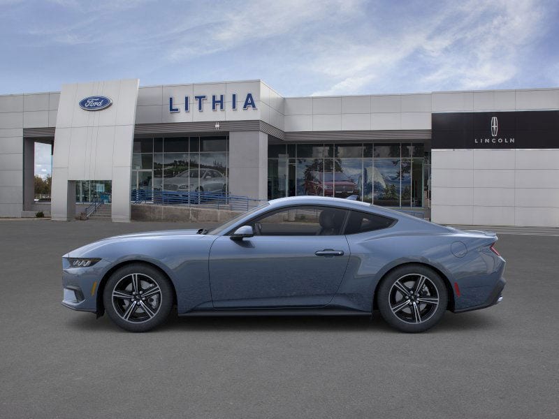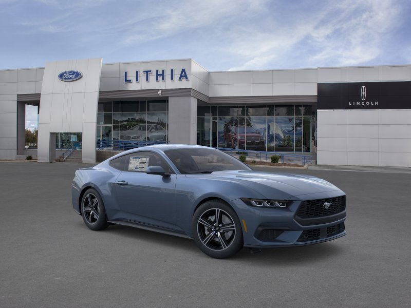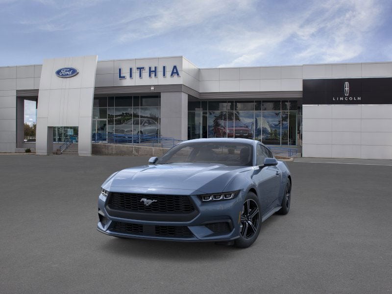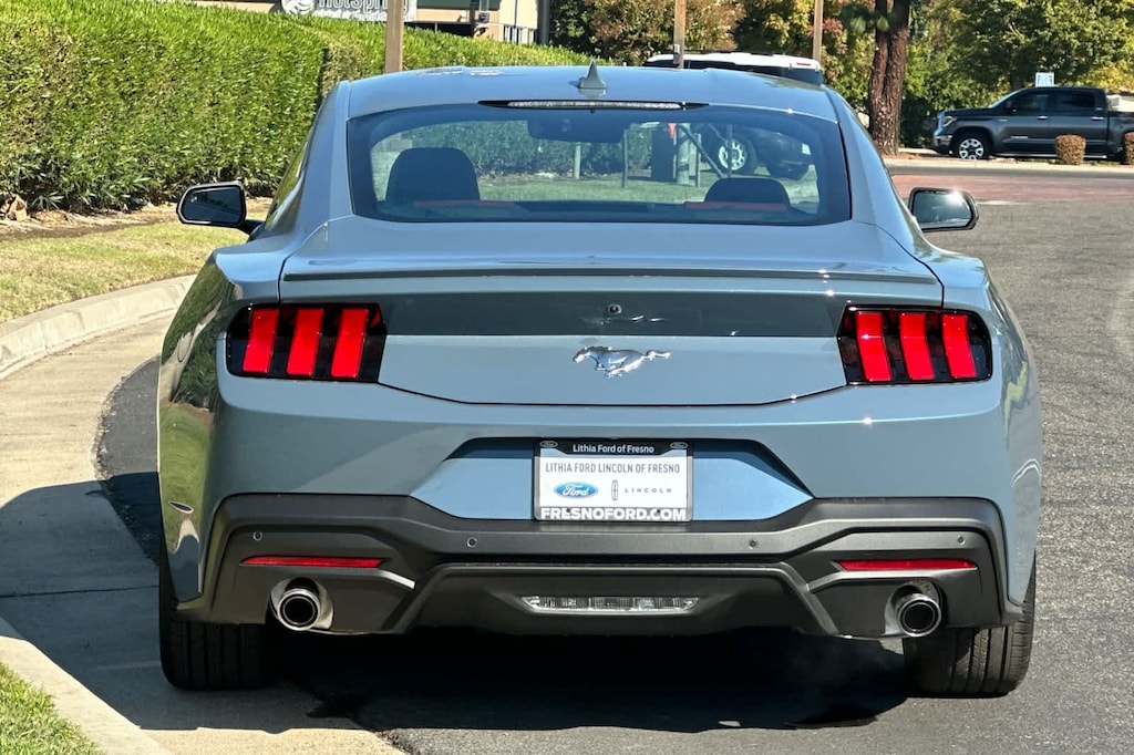 Lithia Ford and Lincoln of Fresno is pleased to offer this Vapor Blue Metallic 2025 Ford Mustang EcoBoost Premium for purchase, this vehicle is well equipped with many features including: 4-Wheel Disc Brakes, ABS brakes, Air Conditioning, Alloy wheels, AM/FM Stereo, Auto High-beam Headlights, Automatic temperature control, Brake assist, Bumpers: body-color, Compass, Delay-off headlights, Driver door bin, Driver vanity mirror, Dual front impact airbags, Dual front side impact airbags, Electronic Stability Control, Emergency communication system: 911 Assist, Exterior Parking Camera Rear, Four wheel independent suspension, Front anti-roll bar, Front Bucket Seats, Front Center Armrest, Front dual zone A/C, Front reading lights, Fully automatic headlights, Illuminated entry, Knee airbag, Leather Shift Knob, Low tire pressure warning, Occupant sensing airbag, Outside temperature display, Overhead airbag, Overhead console, Panic alarm, Passenger door bin, Passenger vanity mirror, Power door mirrors, Power steering, Power windows, Radio data system, Rain sensing wipers, Rear anti-roll bar, Rear Parking Sensors, Rear window defroster, Remote keyless entry, Speed control, Speed-sensing steering, Speed-Sensitive Wipers, Split folding rear seat, Sport steering wheel, Steering wheel mounted audio controls, SYNC 4, Tachometer, Telescoping steering wheel, Tilt steering wheel, Traction control, Trip computer, Variably intermittent wipers, Voltmeter, and Wheels: 18 x 8 Machined-Face Aluminum. RWD 10-Speed Automatic EcoBoost 2.3L I4 GTDi DOHC Turbocharged VCT EcoBoost Premium