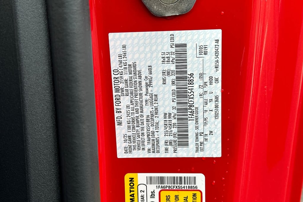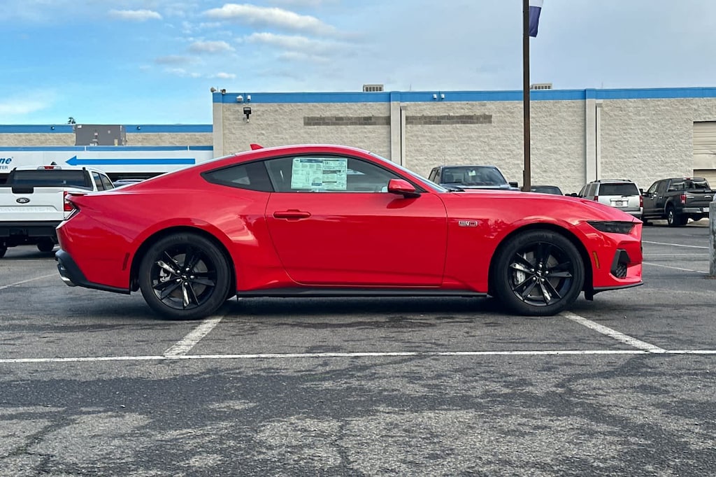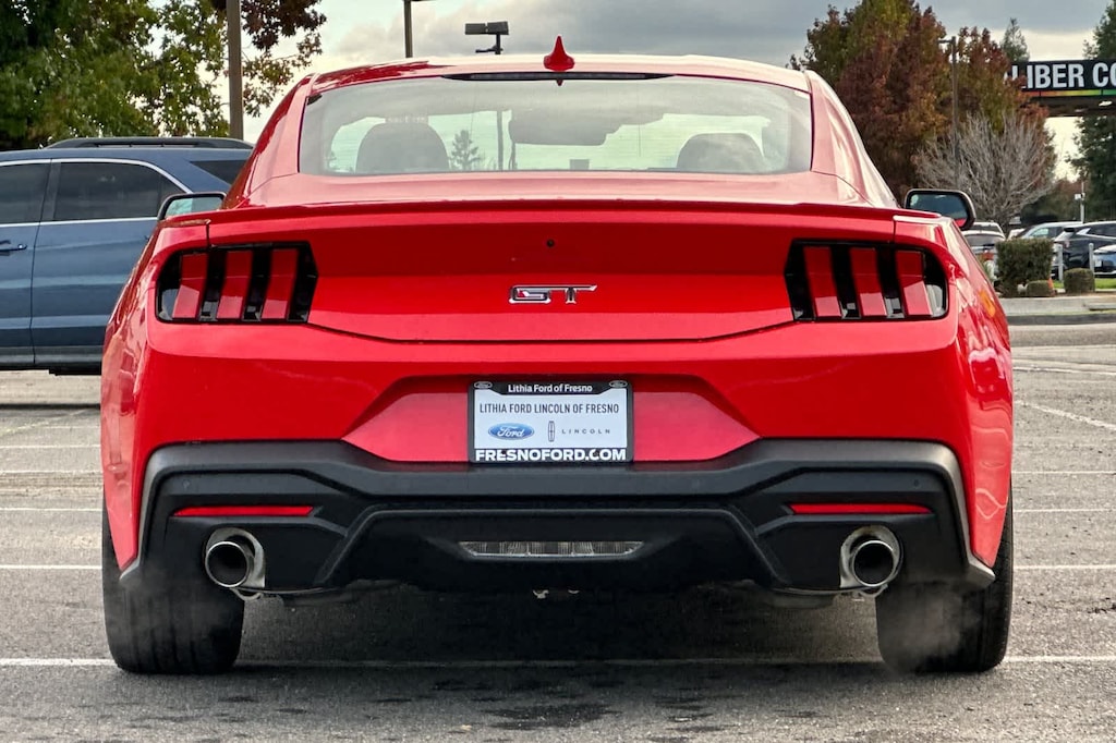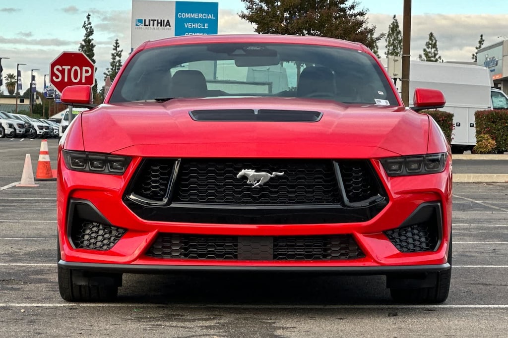 Lithia Ford and Lincoln of Fresno is pleased to offer this Race Red 2025 Ford Mustang GT for purchase, this vehicle is well equipped with many features including: 4-Wheel Disc Brakes, ABS brakes, Air Conditioning, Alloy wheels, AM/FM Stereo, Auto High-beam Headlights, Automatic temperature control, Brake assist, Bumpers: body-color, Compass, Delay-off headlights, Driver door bin, Driver vanity mirror, Dual front impact airbags, Dual front side impact airbags, Electronic Stability Control, Emergency communication system: 911 Assist, Exterior Parking Camera Rear, Four wheel independent suspension, Front anti-roll bar, Front Bucket Seats, Front Center Armrest, Front dual zone A/C, Front reading lights, Fully automatic headlights, Illuminated entry, Knee airbag, Leather Shift Knob, Leather steering wheel, Low tire pressure warning, Occupant sensing airbag, Outside temperature display, Overhead airbag, Overhead console, Panic alarm, Passenger door bin, Passenger vanity mirror, Power door mirrors, Power steering, Power windows, Radio data system, Rain sensing wipers, Rear anti-roll bar, Rear Parking Sensors, Rear window defroster, Remote keyless entry, Speed control, Speed-sensing steering, Speed-Sensitive Wipers, Split folding rear seat, Spoiler, Sport steering wheel, Steering wheel mounted audio controls, SYNC 4, Tachometer, Telescoping steering wheel, Tilt steering wheel, Traction control, Trip computer, Variably intermittent wipers, and Voltmeter. RWD 10-Speed Automatic 5.0L V8 Ti-VCT GT