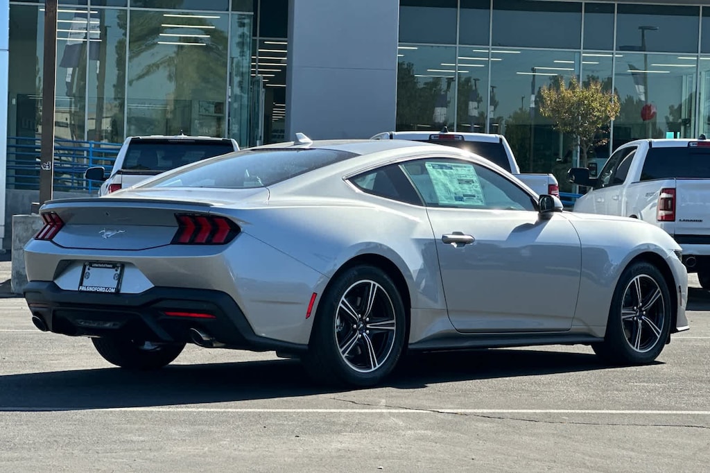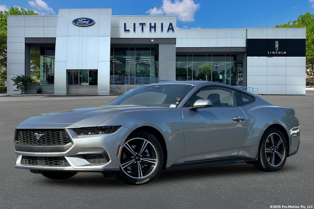 Lithia Ford and Lincoln of Fresno is pleased to offer this Iconic Silver Metallic 2025 Ford Mustang EcoBoost for purchase, this vehicle is well equipped with many features including: 4-Wheel Disc Brakes, ABS brakes, Air Conditioning, Alloy wheels, AM/FM Stereo, Auto High-beam Headlights, Automatic temperature control, Brake assist, Bumpers: body-color, Compass, Delay-off headlights, Driver door bin, Driver vanity mirror, Dual front impact airbags, Dual front side impact airbags, Electronic Stability Control, Emergency communication system: 911 Assist, Exterior Parking Camera Rear, Four wheel independent suspension, Front anti-roll bar, Front Bucket Seats, Front Center Armrest, Front dual zone A/C, Front reading lights, Fully automatic headlights, Illuminated entry, Knee airbag, Leather Shift Knob, Low tire pressure warning, Occupant sensing airbag, Outside temperature display, Overhead airbag, Overhead console, Panic alarm, Passenger door bin, Passenger vanity mirror, Power door mirrors, Power steering, Power windows, Radio data system, Rain sensing wipers, Rear anti-roll bar, Rear Parking Sensors, Rear window defroster, Remote keyless entry, Speed control, Speed-sensing steering, Speed-Sensitive Wipers, Split folding rear seat, Sport steering wheel, Steering wheel mounted audio controls, SYNC 4, Tachometer, Telescoping steering wheel, Tilt steering wheel, Traction control, Trip computer, Variably intermittent wipers, Voltmeter, and Wheels: 18 x 8 Machined-Face Aluminum. RWD 10-Speed Automatic EcoBoost 2.3L I4 GTDi DOHC Turbocharged VCT EcoBoost