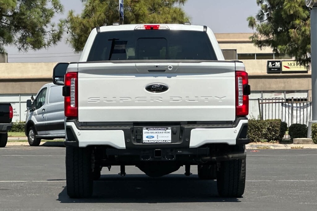 Lithia Ford and Lincoln of Fresno is pleased to offer this Star White Metallic Tri-Coat 2025 Ford F-250SD Lariat for purchase, this vehicle is well equipped with many features including: 5th Wheel/Gooseneck Hitch Prep Package, Black Appearance Package (6 Ebony Black Angular Running Boards, Black Painted Front Grille Surround, and Ebony Black Painted Mirror Caps), FX4 Off-Road Package (Hill Descent Control, Off-Road Specifically Tuned Shock Absorbers, and Unique FX4 Off-Road Box Decal), High Capacity 11.6 Axle Upgrade Package, Lariat Ultimate Package (4-Way Adjustable Headrests, Head-Up Display, Power-Deployable Running Boards, Privacy Glass, Pro Trailer Backup Assist, Pro Trailer Hitch Assist, and Radio: B&O Unleashed Sound System by Bang & Olufsen), Order Code 608A (Flow-Through Console and Front ActiveX Trimmed 40/Console/40 Seats), 4WD, 4-Wheel Disc Brakes, 8 Speakers, ABS brakes, Adjustable pedals, Air Conditioning, Alloy wheels, AM/FM radio: SiriusXM with 360L, Auto High-beam Headlights, Auto-dimming Rear-View mirror, Automatic High Beam, Automatic temperature control, Brake assist, Bumpers: chrome, Compass, Delay-off headlights, Driver door bin, Driver vanity mirror, Dual AGM 68 AH Battery, Dual front impact airbags, Dual front side impact airbags, Electronic Stability Control, Emergency communication system: SYNC 4 911 Assist, Engine Block Heater, Front anti-roll bar, Front Bucket Seats, Front Center Armrest, Front dual zone A/C, Front fog lights, Front License Plate Bracket, Front reading lights, Fully automatic headlights, Garage door transmitter, Heated door mirrors, Heated front seats, Heated rear seats, Heated steering wheel, Illuminated entry, Lane-Keeping System, Low tire pressure warning, Memory seat, Navigation System, Outside temperature display, Overhead airbag, Overhead console, Panic alarm, Passenger door bin, Passenger vanity mirror, Pedal memory, Post-Collision Braking, Power door mirrors, Power driver seat, Power passenger seat, Power steering, Power windows, Pre-Collision Assist, Pro Power Onboard - 2kW, Rain sensing wipers, Rear Parking Sensors, Rear reading lights, Rear seat center armrest, Rear step bumper, Rear window defroster, Remote keyless entry, Security system, Speed control, Split folding rear seat, Steering wheel mounted audio controls, Tachometer, Telescoping steering wheel, Tilt steering wheel, Traction control, Trip computer, Turn signal indicator mirrors, Twin Panel Power Moonroof, Upfitter Switches (6), Variably intermittent wipers, and Ventilated front seats. 4WD 10-Speed Automatic Power Stroke 6.7L V8 DI 32V OHV Turbodiesel Lariat 4WD.