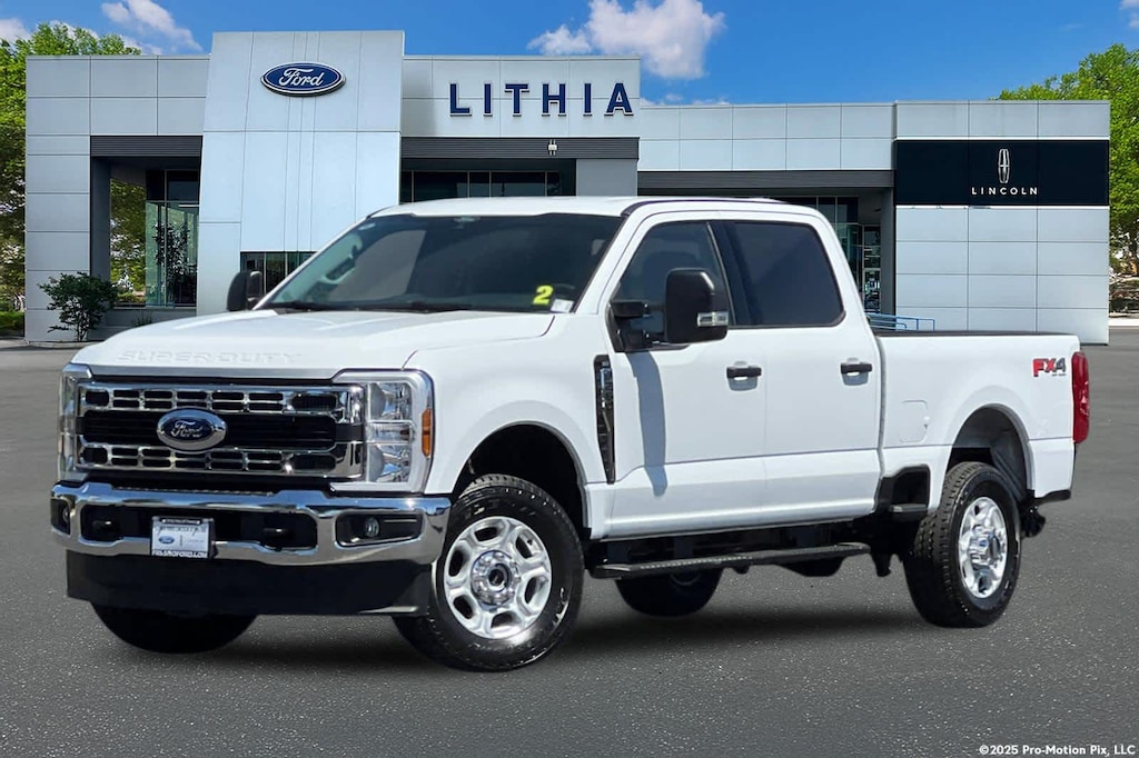 Lithia Ford and Lincoln of Fresno is pleased to offer this Oxford White 2025 Ford F-250SD XLT for purchase, this vehicle is well equipped with many features including: GVWR: 10,000 lb Payload Package, 4WD, ABS brakes, Alloy wheels, Compass, Electronic Stability Control, Heated door mirrors, Illuminated entry, Low tire pressure warning, Remote keyless entry, Traction control, 3.73 Axle Ratio, 4-Wheel Disc Brakes, 6 Speakers, Air Conditioning, AM/FM radio, AM/FM Stereo w/MP3 Player, Auto High-beam Headlights, Brake assist, Bumpers: chrome, Cloth 40/20/40 Split Bench Seat, Delay-off headlights, Driver door bin, Driver vanity mirror, Dual front impact airbags, Dual front side impact airbags, Emergency communication system: SYNC 4 911 Assist, Exterior Parking Camera Rear, Front anti-roll bar, Front Center Armrest w/Storage, Front fog lights, Front reading lights, Fully automatic headlights, Outside temperature display, Overhead airbag, Overhead console, Panic alarm, Passenger door bin, Passenger vanity mirror, Power door mirrors, Power driver seat, Power steering, Power windows, Privacy Glass, Rear reading lights, Rear step bumper, Security system, Speed control, Split folding rear seat, Steering wheel mounted audio controls, SYNC 4, Tachometer, Telescoping steering wheel, Tilt steering wheel, Trip computer, Turn signal indicator mirrors, Variably intermittent wipers, and Wheels: 18 Sparkle Silver Painted Cast Aluminum. 4WD 10-Speed Automatic 7.3L V8 PFI SOHC 16V Federal 405hp XLT 4WD, ABS brakes, Alloy wheels, Compass, Electronic Stability Control, Heated door mirrors, Illuminated entry, Low tire pressure warning, Remote keyless entry, Traction control.