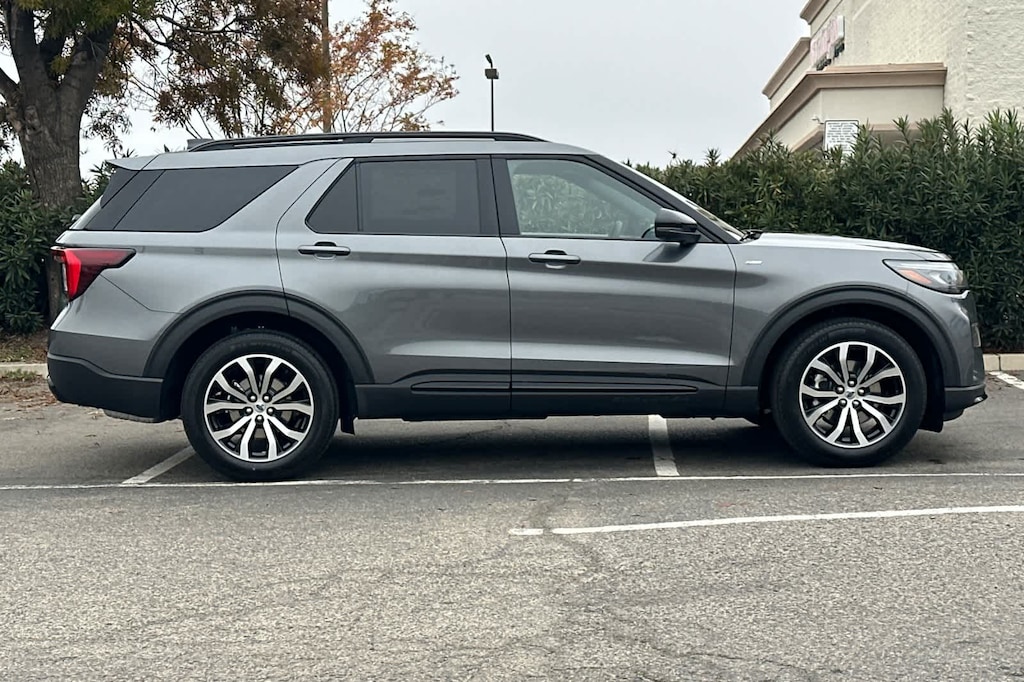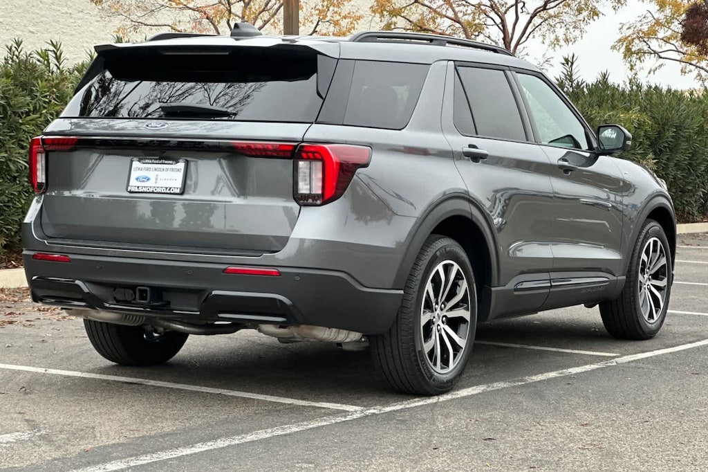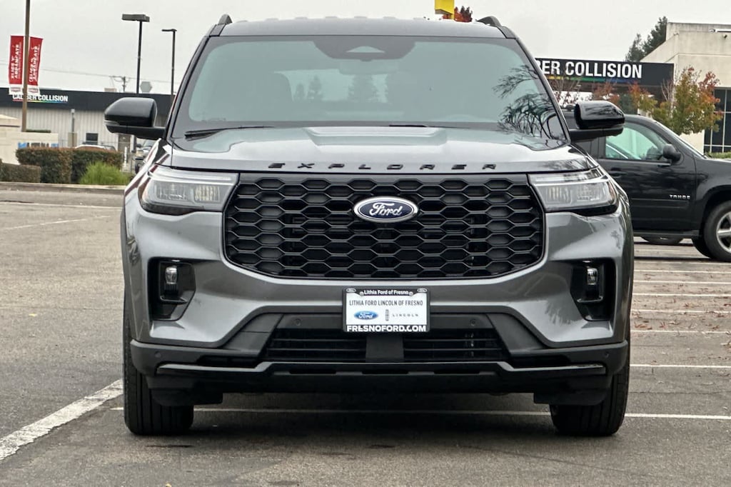 Lithia Ford and Lincoln of Fresno is pleased to offer this Carbonized Gray Metallic 2026 Ford Explorer ST-Line for purchase, this vehicle is well equipped with many features including: 10 Speakers, 3rd row seats: bench, 4-Wheel Disc Brakes, ABS brakes, Air Conditioning, Alloy wheels, AM/FM radio: SiriusXM with 360L, Apple CarPlay/Android Auto, Auto High-beam Headlights, Automatic temperature control, Brake assist, Bumpers: body-color, Compass, Delay-off headlights, Driver door bin, Driver vanity mirror, Dual front impact airbags, Dual front side impact airbags, Electronic Stability Control, Emergency communication system: 911 Assist, Exterior Parking Camera Rear, Four wheel independent suspension, Front anti-roll bar, Front Bucket Seats, Front Center Armrest, Front dual zone A/C, Front fog lights, Front reading lights, Fully automatic headlights, Garage door transmitter, Heated door mirrors, Heated front seats, Heated steering wheel, Heated Unique Cloth Captains Chairs, Illuminated entry, Knee airbag, Leather steering wheel, Low tire pressure warning, Navigation System, Occupant sensing airbag, Outside temperature display, Overhead airbag, Overhead console, Panic alarm, Passenger door bin, Passenger vanity mirror, Power door mirrors, Power driver seat, Power Liftgate, Power passenger seat, Power steering, Power windows, Rear air conditioning, Rear anti-roll bar, Rear reading lights, Rear window defroster, Rear window wiper, Remote keyless entry, Security system, Speed control, Speed-sensing steering, Speed-Sensitive Wipers, Split folding rear seat, Spoiler, Steering wheel mounted audio controls, Tachometer, Telescoping steering wheel, Tilt steering wheel, Traction control, Trip computer, Variably intermittent wipers, and Wheels: 20 Ebony-Painted Machined Aluminum. RWD 10-Speed Automatic 2.3L EcoBoost I-4 ST-Line