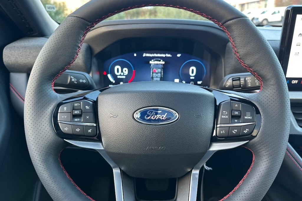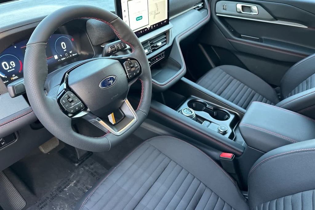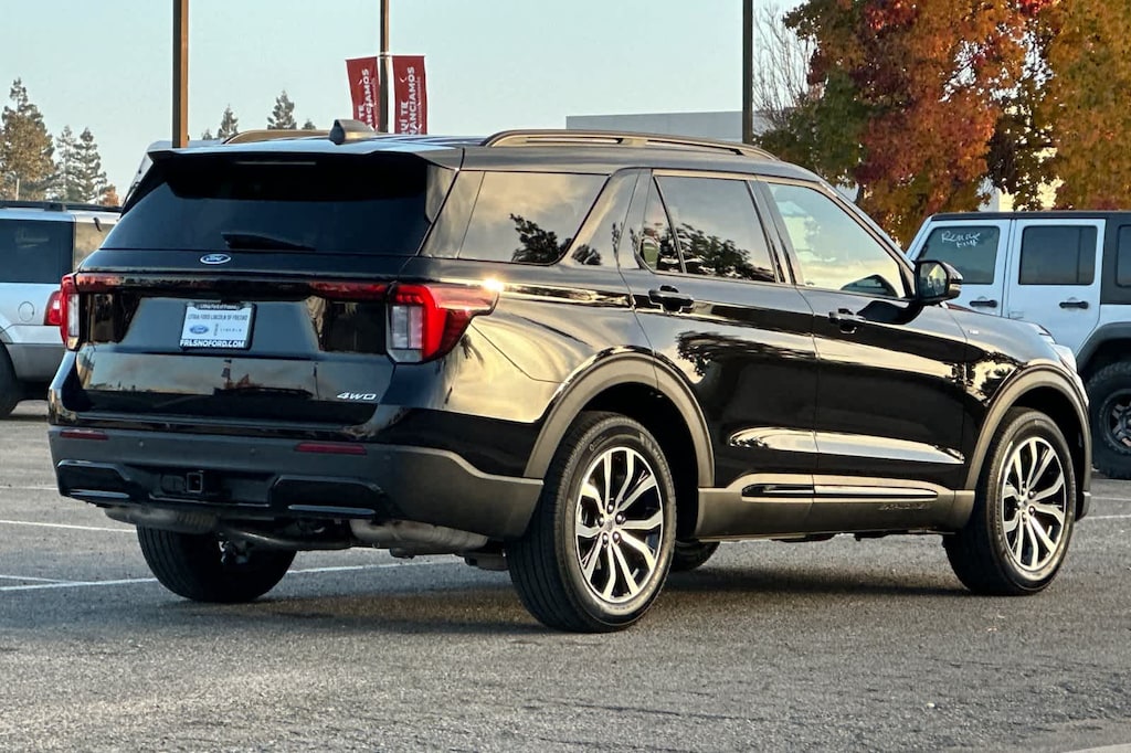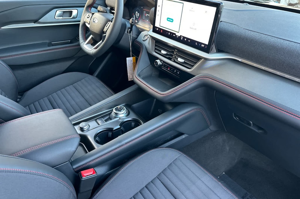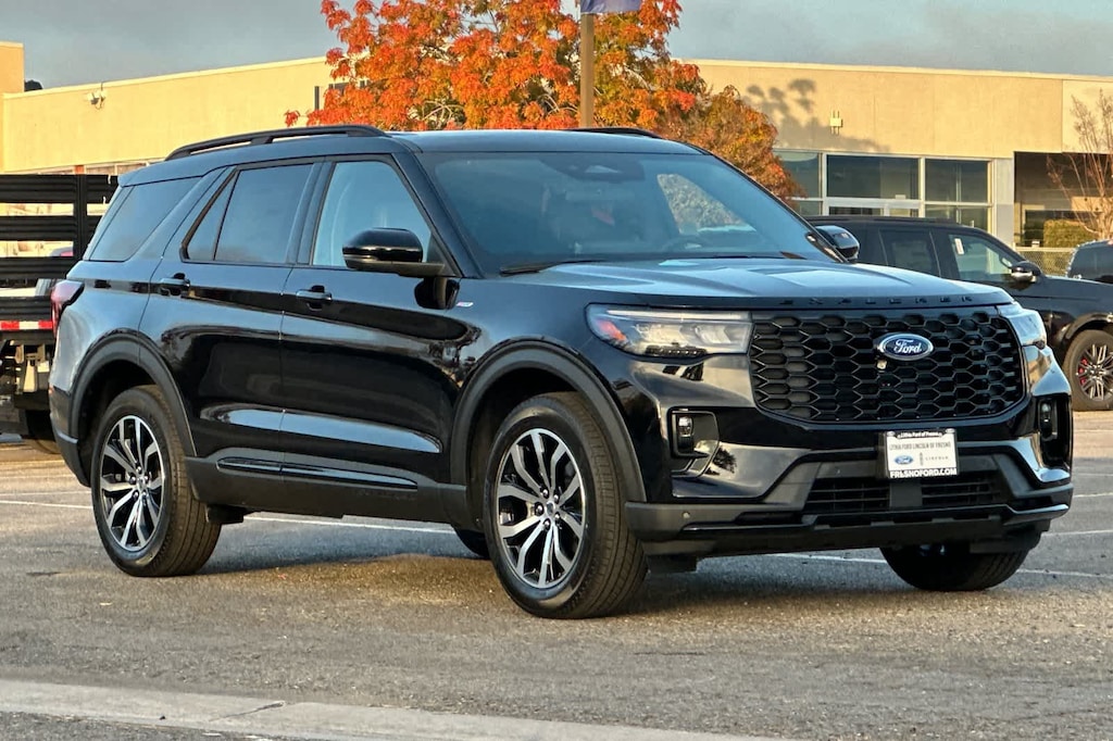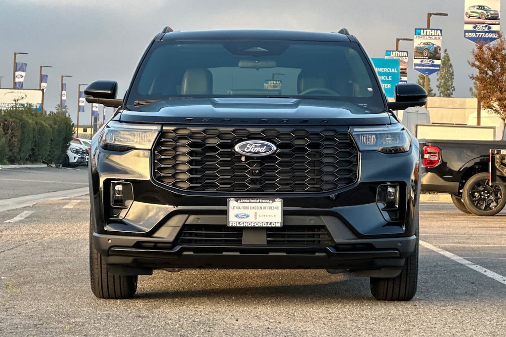Lithia Ford and Lincoln of Fresno is pleased to offer this Agate Black Metallic 2026 Ford Explorer ST-Line for purchase, this vehicle is well equipped with many features including: 4WD, 10 Speakers, 3rd row seats: bench, 4-Wheel Disc Brakes, ABS brakes, Air Conditioning, Alloy wheels, AM/FM radio: SiriusXM with 360L, Apple CarPlay/Android Auto, Auto High-beam Headlights, Automatic temperature control, Brake assist, Bumpers: body-color, Compass, Delay-off headlights, Driver door bin, Driver vanity mirror, Dual front impact airbags, Dual front side impact airbags, Electronic Stability Control, Emergency communication system: 911 Assist, Exterior Parking Camera Rear, Four wheel independent suspension, Front anti-roll bar, Front Bucket Seats, Front Center Armrest, Front dual zone A/C, Front fog lights, Front reading lights, Fully automatic headlights, Garage door transmitter, Heated door mirrors, Heated front seats, Heated steering wheel, Heated Unique Cloth Captains Chairs, Illuminated entry, Knee airbag, Leather steering wheel, Low tire pressure warning, Navigation System, Occupant sensing airbag, Outside temperature display, Overhead airbag, Overhead console, Panic alarm, Passenger door bin, Passenger vanity mirror, Power door mirrors, Power driver seat, Power Liftgate, Power passenger seat, Power steering, Power windows, Rear air conditioning, Rear anti-roll bar, Rear reading lights, Rear window defroster, Rear window wiper, Remote keyless entry, Security system, Speed control, Speed-sensing steering, Speed-Sensitive Wipers, Split folding rear seat, Spoiler, Steering wheel mounted audio controls, Tachometer, Telescoping steering wheel, Tilt steering wheel, Traction control, Trip computer, Variably intermittent wipers, and Wheels: 20 Ebony-Painted Machined Aluminum. 4WD 10-Speed Automatic 2.3L EcoBoost I-4 ST-Line 4WD.