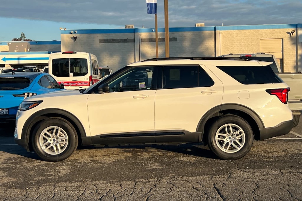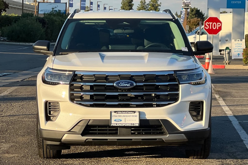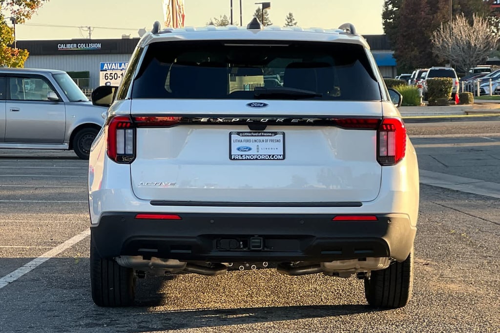 Lithia Ford and Lincoln of Fresno is pleased to offer this Star White Metallic Tri-Coat 2026 Ford Explorer Active for purchase, this vehicle is well equipped with many features including: 3rd row seats: bench, 4-Wheel Disc Brakes, 6 Speakers, ABS brakes, Air Conditioning, Alloy wheels, AM/FM radio: SiriusXM with 360L, AM/FM Stereo, Apple CarPlay/Android Auto, Auto High-beam Headlights, Automatic temperature control, Brake assist, Bumpers: body-color, Compass, Delay-off headlights, Driver door bin, Driver vanity mirror, Dual front impact airbags, Dual front side impact airbags, Electronic Stability Control, Emergency communication system: 911 Assist, Exterior Parking Camera Rear, Four wheel independent suspension, Front anti-roll bar, Front Bucket Seats, Front Center Armrest, Front dual zone A/C, Front reading lights, Fully automatic headlights, Heated door mirrors, Illuminated entry, Knee airbag, Low tire pressure warning, Navigation System, Occupant sensing airbag, Outside temperature display, Overhead airbag, Overhead console, Panic alarm, Passenger door bin, Passenger vanity mirror, Power driver seat, Power steering, Power windows, Rear air conditioning, Rear anti-roll bar, Rear reading lights, Rear window defroster, Rear window wiper, Remote keyless entry, Security system, Speed control, Speed-sensing steering, Speed-Sensitive Wipers, Split folding rear seat, Spoiler, Steering wheel mounted audio controls, Tachometer, Telescoping steering wheel, Tilt steering wheel, Traction control, Trip computer, Unique Cloth Captains Chairs, Variably intermittent wipers, and Wheels: 18 Sparkle Silver-Painted Aluminum. RWD 10-Speed Automatic 2.3L EcoBoost I-4 Active