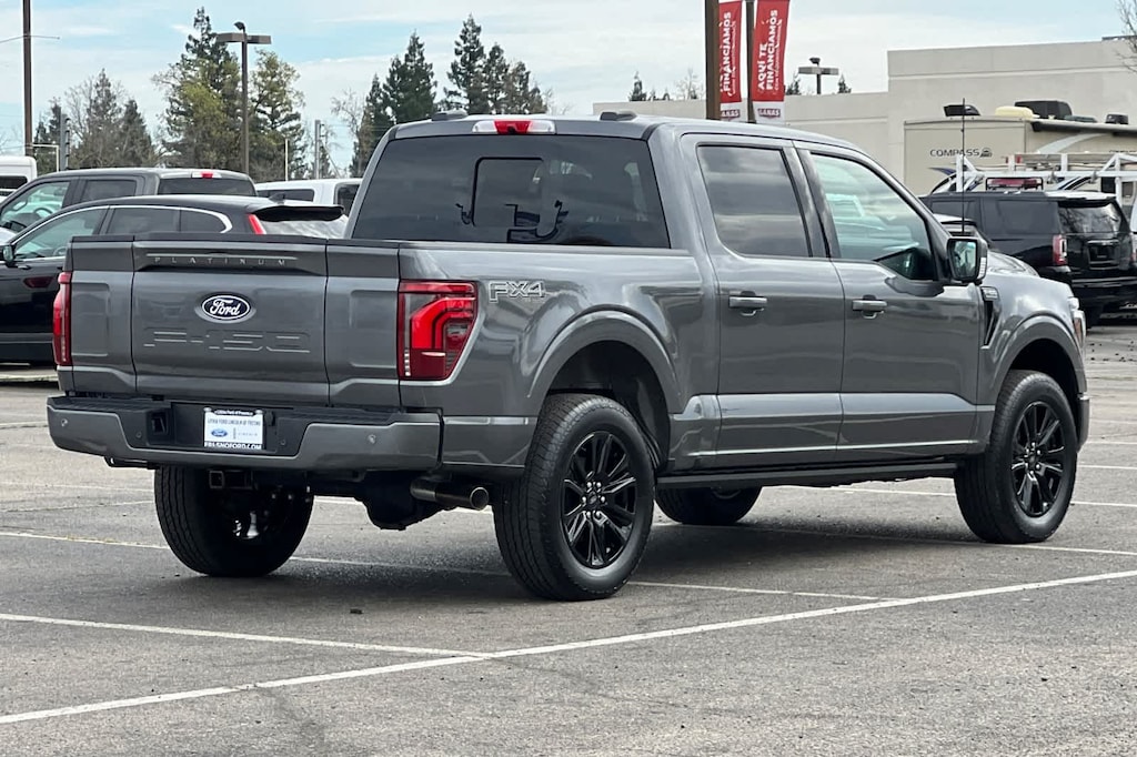 Lithia Ford and Lincoln of Fresno is pleased to offer this Carbonized Gray Metallic 2026 Ford F-150 Platinum for purchase, this vehicle is well equipped with many features including: Ford Connectivity Package (1-Year Included), Internet access capable: 5G Modem - Ford Connectivity Package, 4WD, 4-Wheel Disc Brakes, 8 Speakers, ABS brakes, Adjustable pedals, Air Conditioning, Alloy wheels, AM/FM radio: SiriusXM with 360L, Auto High-beam Headlights, Auto tilt-away steering wheel, Auto-dimming door mirrors, Auto-dimming Rear-View mirror, Automatic temperature control, Brake assist, Bumpers: body-color, Compass, Delay-off headlights, Driver door bin, Driver vanity mirror, Dual front impact airbags, Dual front side impact airbags, Electronic Locking with 3.55 Axle Ratio, Electronic Stability Control, Emergency communication system: SYNC 4 911 Assist, Front anti-roll bar, Front Bucket Seats, Front Center Armrest, Front dual zone A/C, Front fog lights, Front reading lights, Front wheel independent suspension, Fully automatic headlights, Garage door transmitter, Heated door mirrors, Heated front seats, Heated rear seats, Heated steering wheel, Illuminated entry, Leather steering wheel, Low tire pressure warning, Memory seat, Navigation system: Connected Navigation, Occupant sensing airbag, Outside temperature display, Overhead airbag, Overhead console, Panic alarm, Passenger door bin, Passenger vanity mirror, Pedal memory, Power door mirrors, Power driver seat, Power passenger seat, Power steering, Power windows, Radio data system, Radio: B&O Sound System by Bang and Olufsen, Rain sensing wipers, Rear reading lights, Rear seat center armrest, Rear step bumper, Rear window defroster, Remote keyless entry, Security system, Speed control, Split folding rear seat, Steering wheel memory, Steering wheel mounted audio controls, SYNC 4 with Enhanced Voice Recognition, Tachometer, Telescoping steering wheel, Tilt steering wheel, Traction control, Trip computer, Turn signal indicator mirrors, Unique Multi-Contour Leather Bucket Seats, Variably intermittent wipers, Ventilated front seats, and Wheels: 20 Painted Gloss Ebony Black. 4WD 10-Speed Automatic 3.5L V6 EcoBoost Platinum 4WD.