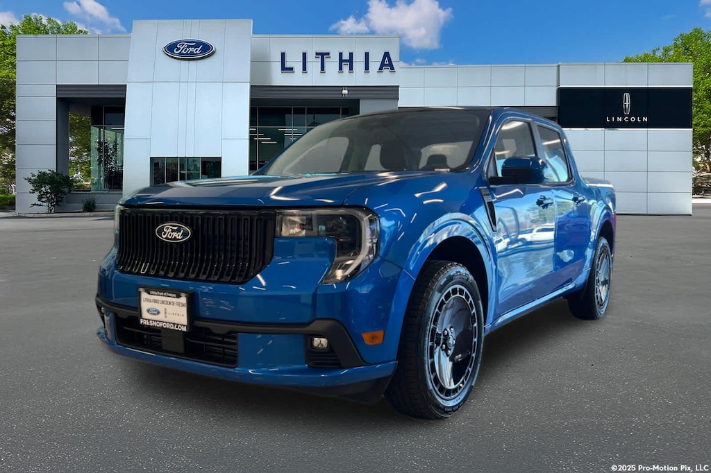 Lithia Ford and Lincoln of Fresno is pleased to offer this Velocity Blue 2026 Ford Maverick Lobo Standard for purchase, this vehicle is well equipped with many features including: Ford Connectivity Package (1-Year Included), Internet access capable: 5G Modem - Ford Connectivity Package, 3.63 Axle Ratio, 4-Wheel Disc Brakes, 6 Speakers, ABS brakes, ActiveX Trimmed Front Bucket Seats, Air Conditioning, Alloy wheels, AM/FM radio: SiriusXM with 360L, Apple CarPlay/Android Auto, Auto High-beam Headlights, Automatic temperature control, Brake assist, Bumpers: body-color, Compass, Delay-off headlights, Driver door bin, Driver vanity mirror, Dual front impact airbags, Dual front side impact airbags, Electronic Stability Control, Emergency communication system: SYNC 4 911 Assist, Exterior Parking Camera Rear, Four wheel independent suspension, Front anti-roll bar, Front Bucket Seats, Front Center Armrest, Front fog lights, Front reading lights, Fully automatic headlights, Illuminated entry, Knee airbag, Low tire pressure warning, Occupant sensing airbag, Outside temperature display, Overhead airbag, Overhead console, Panic alarm, Passenger door bin, Passenger vanity mirror, Power door mirrors, Power driver seat, Power steering, Power windows, Radio data system, Radio: AM/FM Stereo with 6 Speakers, Rear anti-roll bar, Rear Parking Sensors, Rear seat center armrest, Rear step bumper, Remote keyless entry, Security system, SiriusXM with 360L, Speed control, Speed-sensing steering, Steering wheel mounted audio controls, SYNC 4 with Enhanced Voice Recognition, Tachometer, Telescoping steering wheel, Tilt steering wheel, Traction control, Trip computer, and Wheels: 19 Turbofan-Stuled Black Painted Aluminum. AWD 7-Speed Automatic EcoBoost 2.0L I4 GTDi DOHC Turbocharged VCT Lobo Standard