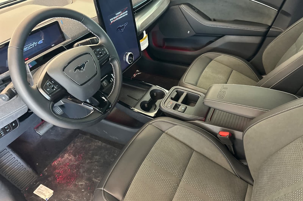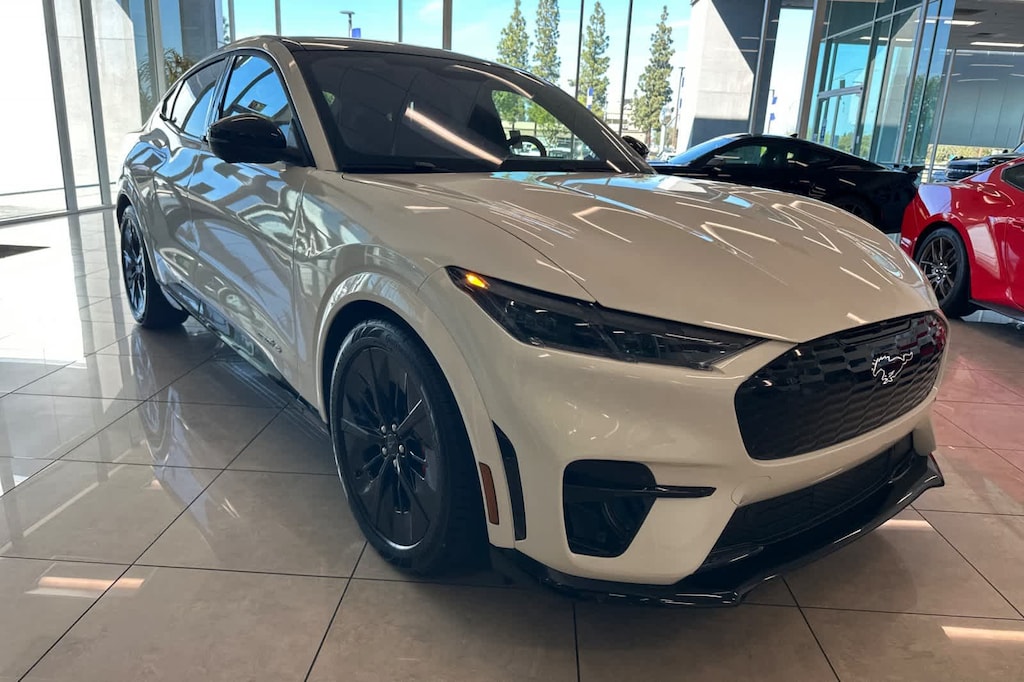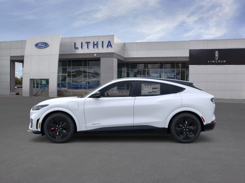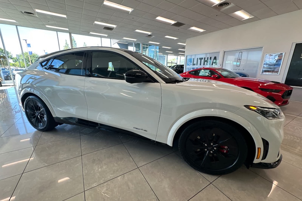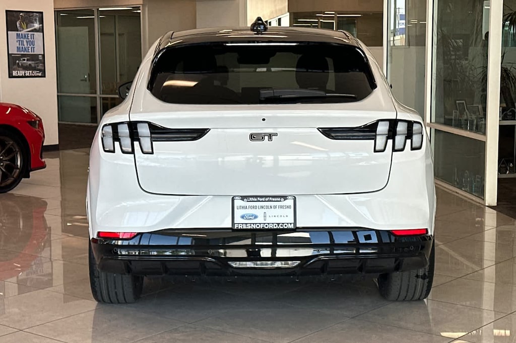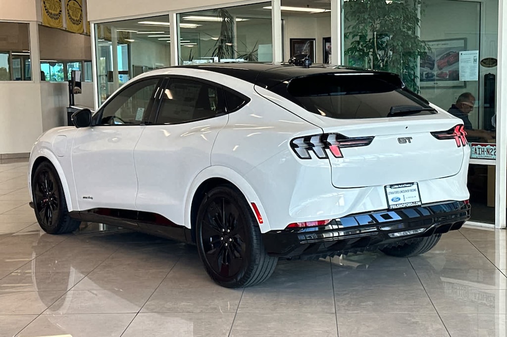 Lithia Ford and Lincoln of Fresno is pleased to offer this Star White Metallic Tri-Coat 2026 Ford Mustang Mach-E GT for purchase, this vehicle is well equipped with many features including: 10 Speakers, 4-Wheel Disc Brakes, ABS brakes, Air Conditioning, Alloy wheels, AM/FM radio: SiriusXM with 360L, Apple CarPlay/Android Auto, Auto High-beam Headlights, Auto-dimming Rear-View mirror, Automatic temperature control, Brake assist, Bumpers: body-color, Compass, Delay-off headlights, Driver door bin, Driver vanity mirror, Dual front impact airbags, Dual front side impact airbags, Electronic Stability Control, Emergency communication system: 911 Assist, Exterior Parking Camera Rear, Four wheel independent suspension, Front anti-roll bar, Front Bucket Seats, Front Center Armrest, Front dual zone A/C, Front reading lights, Fully automatic headlights, Garage door transmitter, Heated door mirrors, Heated front seats, Heated Perforated ActiveX Performance Seats, Heated steering wheel, Illuminated entry, Knee airbag, Low tire pressure warning, Memory seat, Navigation system: Connected Navigation, Occupant sensing airbag, Outside temperature display, Overhead airbag, Overhead console, Panic alarm, Passenger door bin, Passenger vanity mirror, Power door mirrors, Power driver seat, Power Liftgate, Power passenger seat, Power steering, Power windows, Radio data system, Radio: B&O Sound System by Bang and Olufsen, Rain sensing wipers, Rear anti-roll bar, Rear seat center armrest, Rear side impact airbag, Rear window defroster, Rear window wiper, Remote keyless entry, Security system, SiriusXM with 360L, Speed control, Speed-sensing steering, Speed-Sensitive Wipers, Split folding rear seat, Spoiler, Steering wheel mounted audio controls, SYNC 4A with Enhanced Voice Recognition, Telescoping steering wheel, Tilt steering wheel, Traction control, Trip computer, Turn signal indicator mirrors, Variably intermittent wipers, and Wheels: 20 Monochromatic High Gloss Black-Painted. AWD Single-Speed Automatic Electric Motor GT
