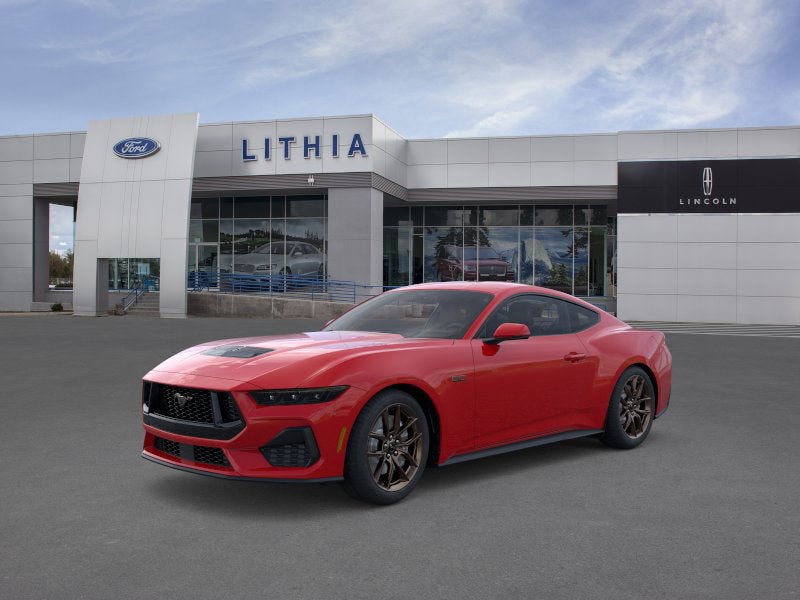 Lithia Ford and Lincoln of Fresno is pleased to offer this Race Red 2026 Ford Mustang GT Premium for purchase, this vehicle is well equipped with many features including: 4-Wheel Disc Brakes, ABS brakes, Air Conditioning, Alloy wheels, AM/FM Stereo, Auto High-beam Headlights, Automatic temperature control, Brake assist, Bumpers: body-color, Compass, Delay-off headlights, Driver door bin, Driver vanity mirror, Dual front impact airbags, Dual front side impact airbags, Electronic Stability Control, Emergency communication system: 911 Assist, Exterior Parking Camera Rear, Four wheel independent suspension, Front anti-roll bar, Front Bucket Seats, Front Center Armrest, Front dual zone A/C, Front reading lights, Fully automatic headlights, Illuminated entry, Knee airbag, Leather Shift Knob, Leather steering wheel, Low tire pressure warning, Occupant sensing airbag, Outside temperature display, Overhead airbag, Overhead console, Panic alarm, Passenger door bin, Passenger vanity mirror, Power door mirrors, Power steering, Power windows, Radio data system, Rain sensing wipers, Rear anti-roll bar, Rear Parking Sensors, Rear window defroster, Remote keyless entry, Speed control, Speed-sensing steering, Speed-Sensitive Wipers, Split folding rear seat, Sport steering wheel, Steering wheel mounted audio controls, SYNC 4, Tachometer, Telescoping steering wheel, Tilt steering wheel, Traction control, Trip computer, Variably intermittent wipers, and Voltmeter. RWD 10-Speed Automatic 5.0L V8 Ti-VCT GT Premium