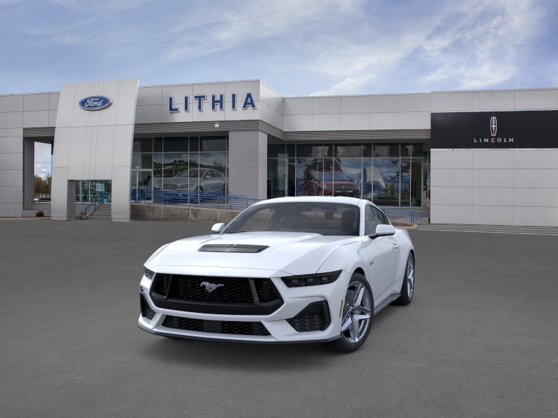 Lithia Ford and Lincoln of Fresno is pleased to offer this Oxford White 2026 Ford Mustang GT Premium for purchase, this vehicle is well equipped with many features including: Equipment Group 400A Standard Package (AM/FM Stereo, SYNC 4, and Wheels: 19 x 8.5 Shadow Silver-Painted Aluminum), 1st Row Carpeted Black Floor Mats, 4-Wheel Disc Brakes, ABS brakes, Active Valve Performance Exhaust, Air Conditioning, Alloy wheels, Auto High-beam Headlights, Automatic temperature control, Brake assist, Bumpers: body-color, Compass, Delay-off headlights, Driver door bin, Driver vanity mirror, Dual front impact airbags, Dual front side impact airbags, Electronic Stability Control, Emergency communication system: 911 Assist, Exterior Parking Camera Rear, Four wheel independent suspension, Front anti-roll bar, Front Bucket Seats, Front Center Armrest, Front dual zone A/C, Front reading lights, Fully automatic headlights, Illuminated entry, Knee airbag, Leather Shift Knob, Leather steering wheel, Low tire pressure warning, Occupant sensing airbag, Outside temperature display, Overhead airbag, Overhead console, Panic alarm, Passenger door bin, Passenger vanity mirror, Power door mirrors, Power steering, Power windows, Radio data system, Rain sensing wipers, Rear anti-roll bar, Rear Parking Sensors, Rear window defroster, Remote keyless entry, Speed control, Speed-sensing steering, Speed-Sensitive Wipers, Split folding rear seat, Sport steering wheel, Steering wheel mounted audio controls, Tachometer, Telescoping steering wheel, Tilt steering wheel, Traction control, Trip computer, Variably intermittent wipers, Voltmeter, and Wheels: 19 x 8.5 Premier Polished Aluminum. RWD 10-Speed Automatic 5.0L V8 Ti-VCT GT Premium