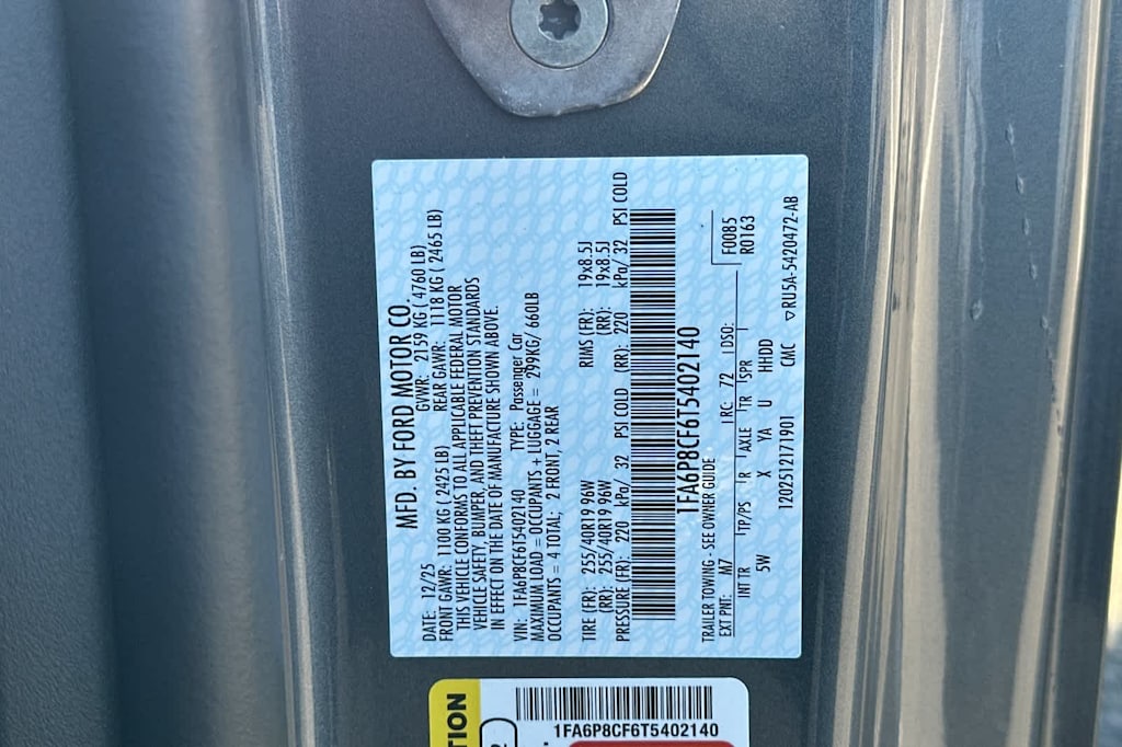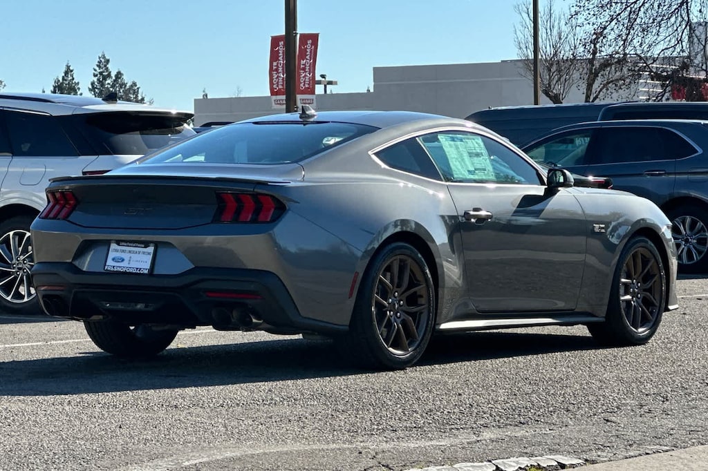 Lithia Ford and Lincoln of Fresno is pleased to offer this Carbonized Gray Metallic 2026 Ford Mustang GT for purchase, this vehicle is well equipped with many features including: 4-Wheel Disc Brakes, ABS brakes, Air Conditioning, Alloy wheels, AM/FM Stereo, Auto High-beam Headlights, Automatic temperature control, Brake assist, Bumpers: body-color, Compass, Delay-off headlights, Driver door bin, Driver vanity mirror, Dual front impact airbags, Dual front side impact airbags, Electronic Stability Control, Emergency communication system: 911 Assist, Exterior Parking Camera Rear, Four wheel independent suspension, Front anti-roll bar, Front Bucket Seats, Front Center Armrest, Front dual zone A/C, Front reading lights, Fully automatic headlights, Illuminated entry, Internet access capable: FordPass Connect, Knee airbag, Leather Shift Knob, Leather steering wheel, Low tire pressure warning, Occupant sensing airbag, Outside temperature display, Overhead airbag, Overhead console, Panic alarm, Passenger door bin, Passenger vanity mirror, Power door mirrors, Power steering, Power windows, Radio data system, Rain sensing wipers, Rear anti-roll bar, Rear Parking Sensors, Rear window defroster, Remote keyless entry, Speed control, Speed-sensing steering, Speed-Sensitive Wipers, Split folding rear seat, Sport steering wheel, Steering wheel mounted audio controls, SYNC 4, Tachometer, Telescoping steering wheel, Tilt steering wheel, Traction control, Trip computer, Variably intermittent wipers, and Voltmeter. RWD Automatic 5.0L V8 Ti-VCT GT