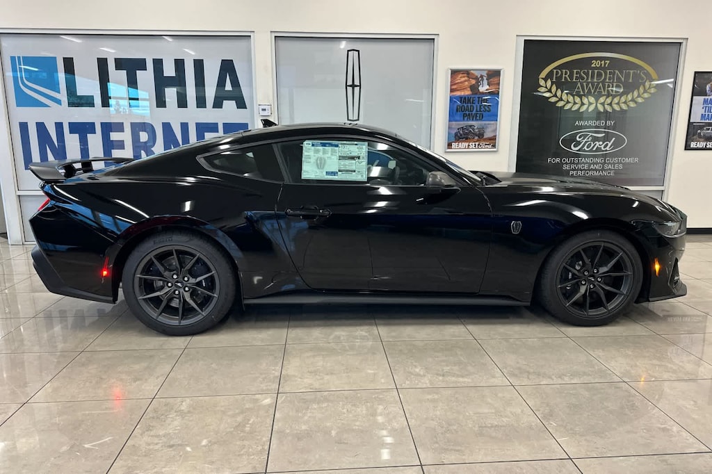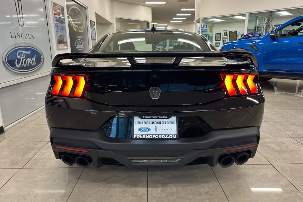 Lithia Ford and Lincoln of Fresno is pleased to offer this Shadow Black 2026 Ford Mustang Dark Horse for purchase, this vehicle is well equipped with many features including: 12 Speakers, 4-Wheel Disc Brakes, ABS brakes, Adaptive suspension, Air Conditioning, Alloy wheels, AM/FM radio: SiriusXM with 360L, AM/FM Stereo, Auto High-beam Headlights, Auto-dimming Rear-View mirror, Automatic temperature control, B&O Sound System by Bang & Olufsen, Brake assist, Bumpers: body-color, Cloth/Vinyl Heated Bucket Seats, Compass, Delay-off headlights, Driver door bin, Driver vanity mirror, Dual front impact airbags, Dual front side impact airbags, Electronic Stability Control, Emergency communication system: 911 Assist, Exterior Parking Camera Rear, Four wheel independent suspension, Front anti-roll bar, Front Bucket Seats, Front Center Armrest, Front dual zone A/C, Front reading lights, Fully automatic headlights, HD Radio, Heated front seats, Heated steering wheel, Illuminated entry, Internet access capable: FordPass Connect, Knee airbag, Low tire pressure warning, Navigation system: Connected Navigation, Occupant sensing airbag, Outside temperature display, Overhead airbag, Overhead console, Panic alarm, Passenger door bin, Passenger vanity mirror, Power door mirrors, Power driver seat, Power passenger seat, Power steering, Power windows, Radio data system, Rain sensing wipers, Rear anti-roll bar, Rear Parking Sensors, Rear window defroster, Remote keyless entry, SiriusXM w/360L, Speed control, Speed-sensing steering, Speed-Sensitive Wipers, Split folding rear seat, Spoiler, Sport steering wheel, Steering wheel mounted audio controls, SYNC 4, Tachometer, Telescoping steering wheel, Tilt steering wheel, Traction control, Trip computer, Variably intermittent wipers, Voltmeter, and Wheels: 19 x 9.5 Fr & 19 x 10 Rr Aluminum. RWD 10-Speed Automatic 5.0L V8 DOHC 32V Dark Horse