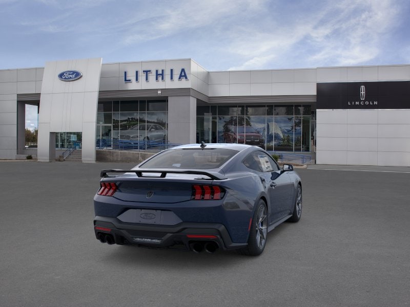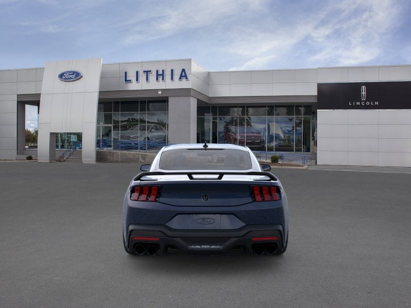 Lithia Ford and Lincoln of Fresno is pleased to offer this Blue Ember Metallic 2026 Ford Mustang Dark Horse for purchase, this vehicle is well equipped with many features including: 12 Speakers, 4-Wheel Disc Brakes, ABS brakes, Adaptive suspension, Air Conditioning, Alloy wheels, AM/FM radio: SiriusXM with 360L, AM/FM Stereo, Auto High-beam Headlights, Auto-dimming Rear-View mirror, Automatic temperature control, B&O Sound System by Bang & Olufsen, Brake assist, Bumpers: body-color, Cloth/Vinyl Heated Bucket Seats, Compass, Delay-off headlights, Driver door bin, Driver vanity mirror, Dual front impact airbags, Dual front side impact airbags, Electronic Stability Control, Emergency communication system: 911 Assist, Exterior Parking Camera Rear, Four wheel independent suspension, Front anti-roll bar, Front Bucket Seats, Front Center Armrest, Front dual zone A/C, Front reading lights, Fully automatic headlights, HD Radio, Heated front seats, Heated steering wheel, Illuminated entry, Knee airbag, Low tire pressure warning, Navigation system: Connected Navigation, Occupant sensing airbag, Outside temperature display, Overhead airbag, Overhead console, Panic alarm, Passenger door bin, Passenger vanity mirror, Power door mirrors, Power driver seat, Power passenger seat, Power steering, Power windows, Radio data system, Rain sensing wipers, Rear anti-roll bar, Rear Parking Sensors, Rear window defroster, Remote keyless entry, SiriusXM with 360L, Speed control, Speed-sensing steering, Speed-Sensitive Wipers, Split folding rear seat, Spoiler, Sport steering wheel, Steering wheel mounted audio controls, SYNC 4, Tachometer, Telescoping steering wheel, Tilt steering wheel, Traction control, Trip computer, Variably intermittent wipers, Voltmeter, and Wheels: 19 x 9.5 Front & 19 x 10 Rear Aluminum. RWD 10-Speed Automatic 5.0L V8 DOHC 32V Dark Horse