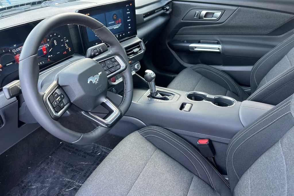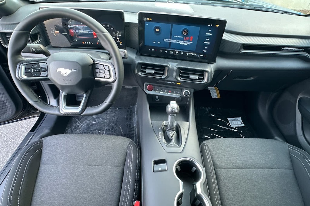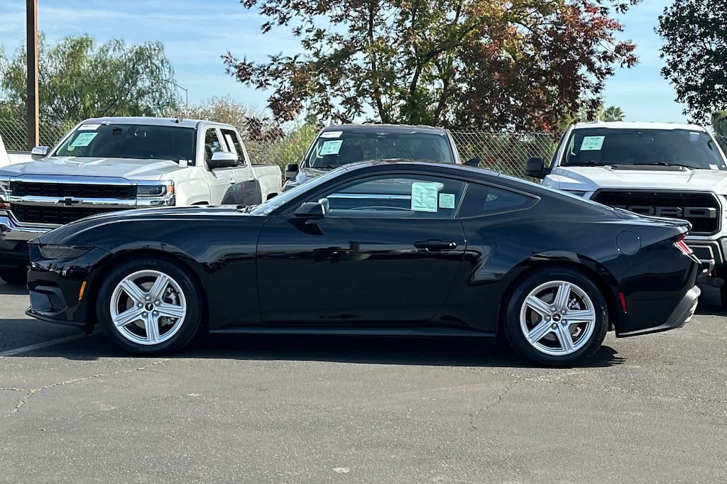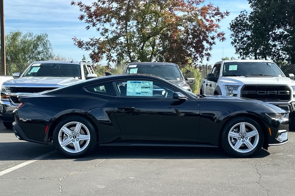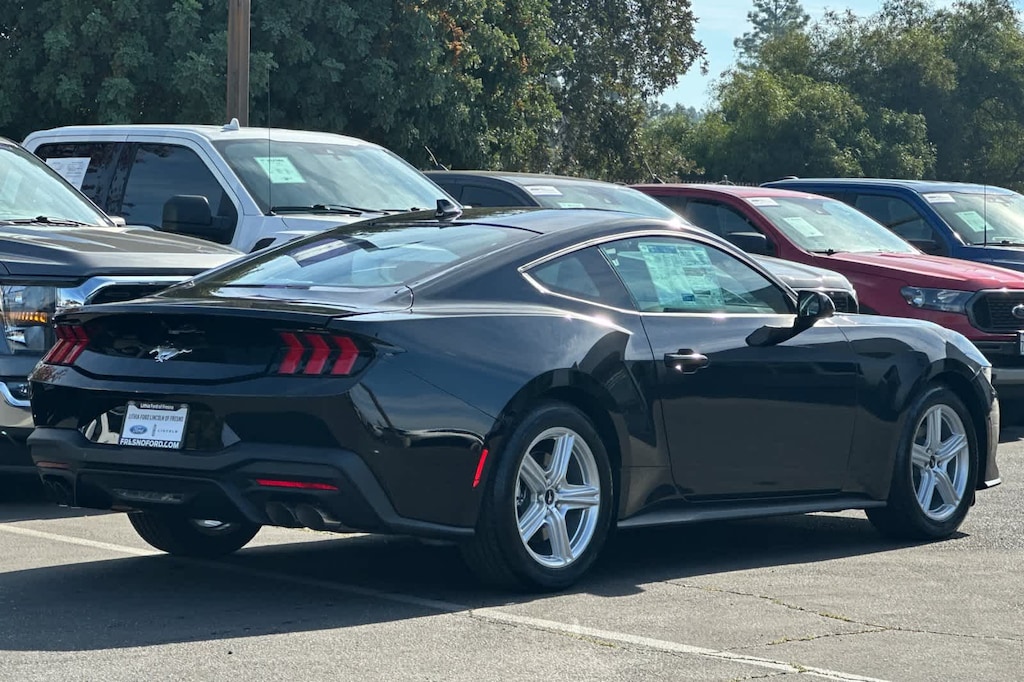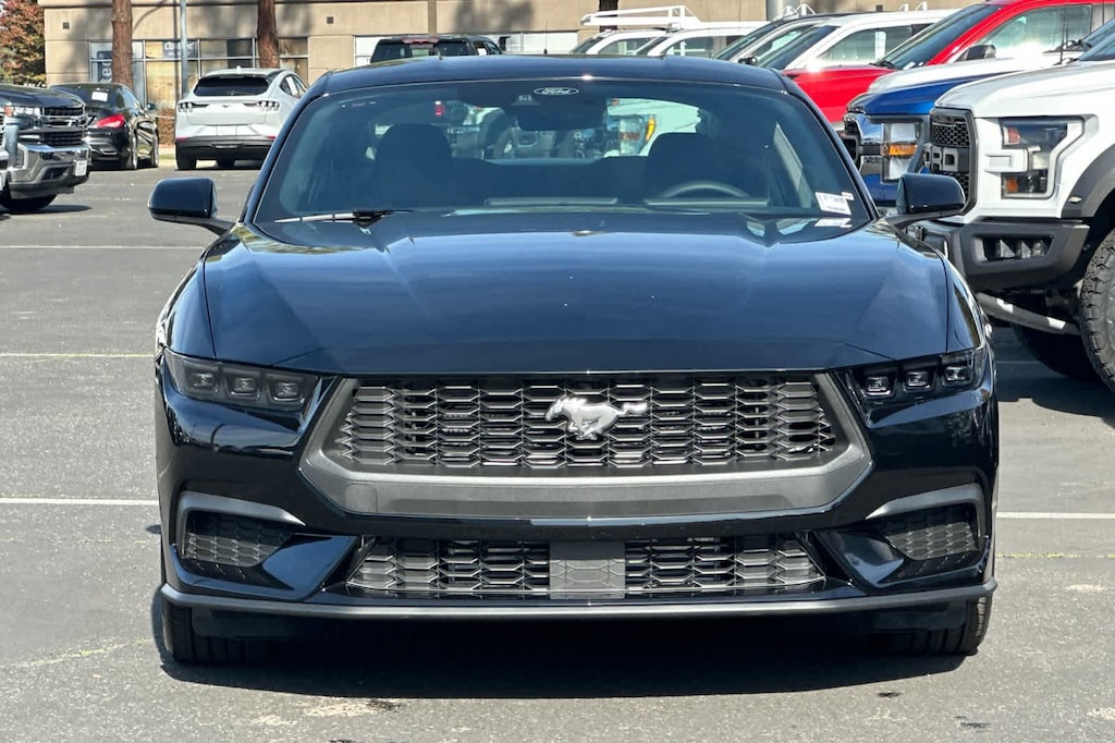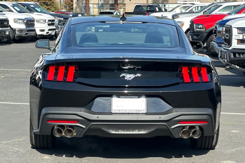 Lithia Ford and Lincoln of Fresno is pleased to offer this Shadow Black 2026 Ford Mustang EcoBoost for purchase, this vehicle is well equipped with many features including: 4-Wheel Disc Brakes, ABS brakes, Air Conditioning, Alloy wheels, AM/FM Stereo, Auto High-beam Headlights, Automatic temperature control, Brake assist, Bumpers: body-color, Compass, Delay-off headlights, Driver door bin, Driver vanity mirror, Dual front impact airbags, Dual front side impact airbags, Electronic Stability Control, Emergency communication system: 911 Assist, Exterior Parking Camera Rear, Four wheel independent suspension, Front anti-roll bar, Front Bucket Seats, Front Center Armrest, Front dual zone A/C, Front reading lights, Fully automatic headlights, Illuminated entry, Knee airbag, Leather Shift Knob, Low tire pressure warning, Occupant sensing airbag, Outside temperature display, Overhead airbag, Overhead console, Panic alarm, Passenger door bin, Passenger vanity mirror, Power door mirrors, Power steering, Power windows, Radio data system, Rain sensing wipers, Rear anti-roll bar, Rear Parking Sensors, Rear window defroster, Remote keyless entry, Speed control, Speed-sensing steering, Speed-Sensitive Wipers, Split folding rear seat, Sport steering wheel, Steering wheel mounted audio controls, SYNC 4, Tachometer, Telescoping steering wheel, Tilt steering wheel, Traction control, Trip computer, Variably intermittent wipers, Voltmeter, and Wheels: 18 x 8 Painted Shadow Silver Cast Alum. RWD 10-Speed Automatic EcoBoost 2.3L I4 GTDi DOHC Turbocharged VCT EcoBoost