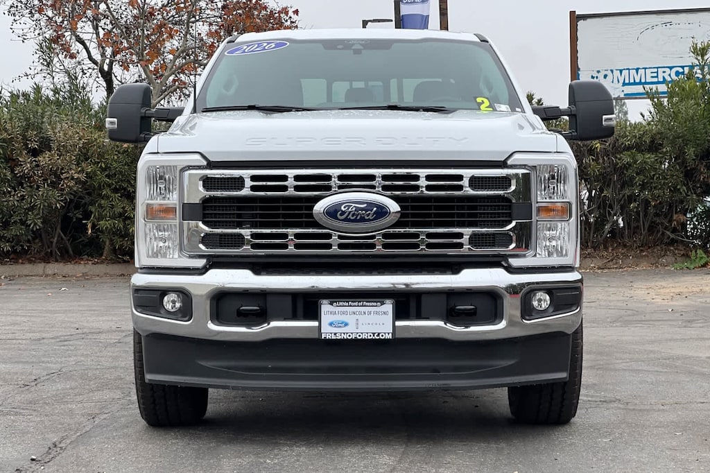 Lithia Ford and Lincoln of Fresno is pleased to offer this Oxford White 2026 Ford F-250SD XLT for purchase, this vehicle is well equipped with many features including: Internet access capable: 5G Modem - Ford Connectivity Package, 4WD, ABS brakes, Alloy wheels, Compass, Electronic Stability Control, Heated door mirrors, Illuminated entry, Low tire pressure warning, Remote keyless entry, Traction control, 3.73 Axle Ratio, 4-Wheel Disc Brakes, 6 Speakers, Air Conditioning, AM/FM radio, Auto High-beam Headlights, Brake assist, Bumpers: chrome, Cloth 40/20/40 Split Bench Seat, Delay-off headlights, Driver door bin, Driver vanity mirror, Dual front impact airbags, Dual front side impact airbags, Emergency communication system: SYNC 4 911 Assist, Exterior Parking Camera Rear, Front anti-roll bar, Front Center Armrest w/Storage, Front fog lights, Front reading lights, Fully automatic headlights, Outside temperature display, Overhead airbag, Overhead console, Panic alarm, Passenger door bin, Passenger vanity mirror, Power door mirrors, Power driver seat, Power steering, Power windows, Privacy Glass, Rear reading lights, Rear step bumper, Security system, Speed control, Split folding rear seat, Steering wheel mounted audio controls, SYNC 4, Tachometer, Telescoping steering wheel, Tilt steering wheel, Trip computer, Turn signal indicator mirrors, Variably intermittent wipers, and Wheels: 18 Sparkle Silver Painted Cast Aluminum. 4WD 10-Speed Automatic Power Stroke 6.7L V8 DI 32V OHV Turbodiesel XLT 4WD, ABS brakes, Alloy wheels, Compass, Electronic Stability Control, Heated door mirrors, Illuminated entry, Low tire pressure warning, Remote keyless entry, Traction control.