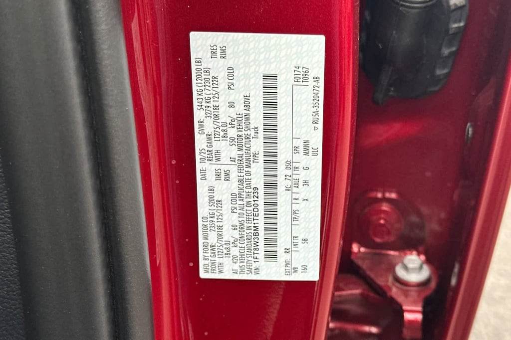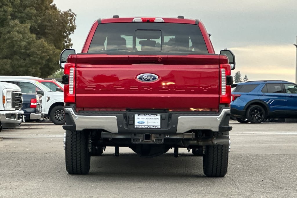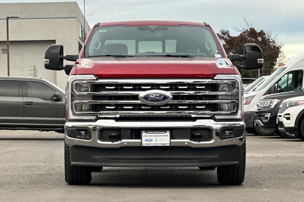 Lithia Ford and Lincoln of Fresno is pleased to offer this Ruby Red Metallic Tinted Clearcoat 2026 Ford F-350SD Lariat for purchase, this vehicle is well equipped with many features including: Ford Connectivity Package (1-Year Included), Internet access capable: 5G Modem - Ford Connectivity Package, 4WD, 190 Amp Alternator, 3.73 Axle Ratio, 4-Wheel Disc Brakes, 8 Speakers, ABS brakes, Adjustable pedals, Air Conditioning, Alloy wheels, AM/FM radio: SiriusXM with 360L, Auto High-beam Headlights, Auto-dimming Rear-View mirror, Automatic temperature control, BLIS w/Cross-Traffic Alert, Brake assist, Bumpers: chrome, Compass, Delay-off headlights, Driver door bin, Driver vanity mirror, Dual front impact airbags, Dual front side impact airbags, Electronic Stability Control, Emergency communication system: SYNC 4 911 Assist, Flow-Through Console, Front ActiveX Trimmed 40/Console/40 Seats, Front anti-roll bar, Front Bucket Seats, Front Center Armrest, Front dual zone A/C, Front fog lights, Front reading lights, Fully automatic headlights, Garage door transmitter, Heated door mirrors, Heated front seats, Heated rear seats, Heated steering wheel, Illuminated entry, Low tire pressure warning, Memory seat, Navigation system: Connected Navigation, Outside temperature display, Overhead airbag, Overhead console, Panic alarm, Passenger door bin, Passenger vanity mirror, Pedal memory, Power door mirrors, Power driver seat, Power passenger seat, Power steering, Power windows, Privacy Glass, Radio: B&O Sound System by Bang & Olufsen, Rain sensing wipers, Rear Parking Sensors, Rear reading lights, Rear seat center armrest, Rear step bumper, Rear window defroster, Remote keyless entry, Security system, SiriusXM w/360L, Speed control, Split folding rear seat, Steering wheel mounted audio controls, SYNC 4 w/Enhanced Voice Recognition, Tachometer, Telescoping steering wheel, Tilt steering wheel, Traction control, Trip computer, Turn signal indicator mirrors, Variably intermittent wipers, Ventilated front seats, and Wheels: 18 Bright Machined & Carbonized Gray Alum. 4WD 10-Speed Automatic 6.7L High Output Power Stroke V8 Diesel Lariat 4WD.