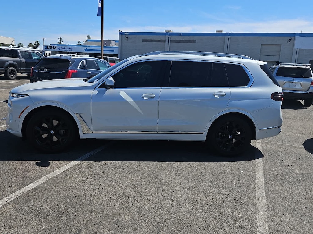 Lithia Ford and Lincoln of Fresno is pleased to offer this Mineral White Metallic 2023 BMW X7 xDrive40i for purchase, this vehicle is well equipped with many features including: Climate Comfort Package (5-Zone Automatic Climate Control, Front & Rear Heated Seats, and Front Ventilated Seats), Connected Package Pro, Parking Assistance Package (Drive Recorder, Parking Assistant Professional, and Surround View w/3D View), Premium Package (Gesture Control, harman/kardon Surround Sound System, Rear Electric Side Window Shades, and Soft-Close Automatic Doors), 10 Speakers, 2nd Row Captains Chairs, 3.64 Axle Ratio, 3rd row seats: split-bench, 4-Wheel Disc Brakes, ABS brakes, Adaptive suspension, Air Conditioning, Alloy wheels, AM/FM radio: SiriusXM, AM/FM Stereo, Apple CarPlay & Android Auto Compatibility, Apple CarPlay Compatibility, Auto High-beam Headlights, Auto tilt-away steering wheel, Auto-dimming door mirrors, Auto-dimming Rear-View mirror, Auto-leveling suspension, Automatic temperature control, BMW Assist eCall, BMW TeleServices, Brake assist, Bumpers: body-color, Compass, ConnectedDrive Services, Delay-off headlights, Driver door bin, Driver vanity mirror, Dual front impact airbags, Dual front side impact airbags, Electronic Stability Control, Emergency communication system: BMW Assist eCall, Exterior Parking Camera Rear, Four wheel independent suspension, Front anti-roll bar, Front Bucket Seats, Front Center Armrest, Front dual zone A/C, Front reading lights, Fully automatic headlights, Garage door transmitter, Genuine wood console insert, Genuine wood dashboard insert, Genuine wood door panel insert, Head restraints memory, Heads-Up Display, Heated door mirrors, Heated front seats, Heated Multi-Contour Seats, Heated steering wheel, Hi-Fi Sound System, Illuminated entry, Knee airbag, Live Cockpit Pro w/Navi, Low tire pressure warning, Memory seat, Navigation system: BMW Maps Navigation, Occupant sensing airbag, Outside temperature display, Overhead airbag, Panic alarm, Passenger door bin, Passenger vanity mirror, Personal eSIM 5G, Power adjustable front head restraints, Power door mirrors, Power driver seat, Power Front Seats, Power moonroof: Panorama, Power passenger seat, Power steering, Power windows, Radio data system, Rain sensing wipers, Rear air conditioning, Rear anti-roll bar, Rear dual zone A/C, Rear reading lights, Rear seat center armrest, Rear window defroster, Rear window wiper, Reclining 3rd row seat, Remote keyless entry, Security system, Sensafin Upholstery, SiriusXM Satellite Radio, Speed control, Speed-sensing steering, Speed-Sensitive Wipers, Split folding rear seat, Spoiler, Sport steering wheel, Steering wheel memory, Steering wheel mounted audio controls, Tachometer, Telescoping steering wheel, Tilt steering wheel, Traction control, Trip computer, Turn signal indicator mirrors, Variably intermittent wipers, Wheels: 21 x 9.5 Y-Spoke Bi-Color, Wheels: 21 x 9.5 Y-Spoke Black, and Wireless Charging Device. AWD 3.0L I6 DOHC 24V 8-Speed Automatic Sport xDrive40i