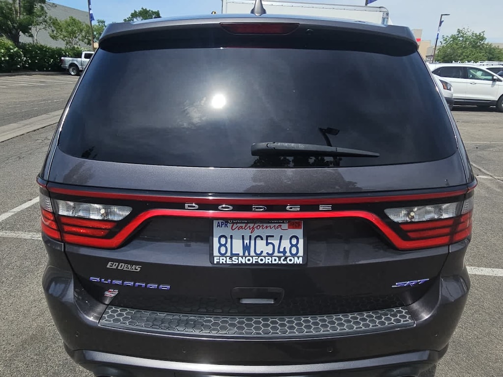 Lithia Ford and Lincoln of Fresno is pleased to offer this Granite Metallic Clearcoat 2018 Dodge Durango SRT for purchase, this vehicle is well equipped with many features including: Quick Order Package 27L (DISC), Technology Group (Adaptive Cruise Control w/Stop, Advanced Brake Assist, Blind Spot & Cross Path Detection, Full Speed Forward Collision Warning Plus, and Lane Departure Warning Plus), Trailer Tow Group IV (7 & 4 Pin Wiring Harness and Class IV Receiver Hitch), AWD, 10 Speakers, 3.70 Rear Axle Ratio, 3rd row seats: split-bench, 4-Wheel Disc Brakes, ABS brakes, Air Conditioning, Alloy wheels, AM/FM radio: SiriusXM, Anti-whiplash front head restraints, Apple CarPlay, Apple CarPlay/Android Auto, Audio memory, Auto High-beam Headlights, Auto-dimming door mirrors, Auto-dimming Rear-View mirror, Automatic temperature control, Brake assist, Bumpers: body-color, Compass, Delay-off headlights, Driver door bin, Driver vanity mirror, Dual front impact airbags, Dual front side impact airbags, Electronic Stability Control, Emergency communication system: Roadside Assistance/9-1-1 Call, Four wheel independent suspension, Front anti-roll bar, Front Bucket Seats, Front Center Armrest w/Storage, Front dual zone A/C, Front fog lights, Front reading lights, Fully automatic headlights, Garage door transmitter, Google Android Auto, Heated door mirrors, Heated front seats, Heated rear seats, Heated steering wheel, High-Intensity Discharge Headlights, Illuminated entry, Knee airbag, Leather Shift Knob, Leather Trimmed Bucket Seats, Low tire pressure warning, Manufacturers Statement of Origin, Memory seat, Navigation system: Garmin, Occupant sensing airbag, Outside temperature display, Overhead airbag, Overhead console, Panic alarm, ParkView Rear Back-Up Camera, Passenger door bin, Passenger vanity mirror, Power 8-Way Driver Memory 8-Way Passenger Seats, Power door mirrors, Power driver seat, Power Liftgate, Power passenger seat, Power steering, Power windows, Radio data system, Radio: Uconnect 4C Nav w/8.4 Display, Rain sensing wipers, Rear air conditioning, Rear anti-roll bar, Rear reading lights, Rear window defroster, Rear window wiper, Remote keyless entry, Security system, Speed control, Speed-Sensitive Wipers, Split folding rear seat, Spoiler, Steering wheel mounted audio controls, Tachometer, Telescoping steering wheel, Tilt steering wheel, Traction control, Trip computer, Turn signal indicator mirrors, Variably intermittent wipers, Ventilated front seats, Wheels: 20 x 10 Lo-Gloss Black Multispoke, and Wheels: 20 x 10 Low Gloss Black 5-Spoke. AWD SRT HEMI 6.4L V8 MDS 8-Speed Automatic SRT